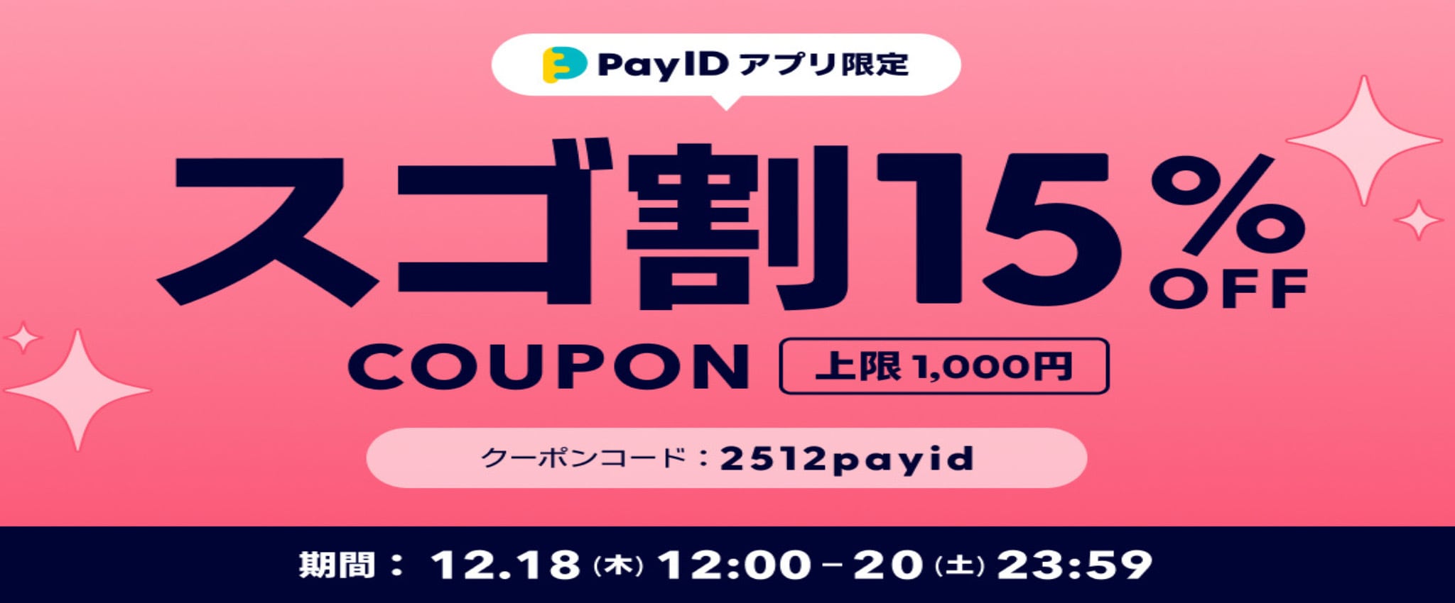 「Pay IDアプリ限定 スゴ割」15%OFFクーポンプレゼント!!