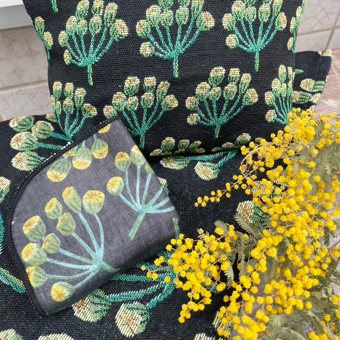 松尾ミユキさんの描くお花やフルーツが織り込まれたゴブラン素材のポーチ