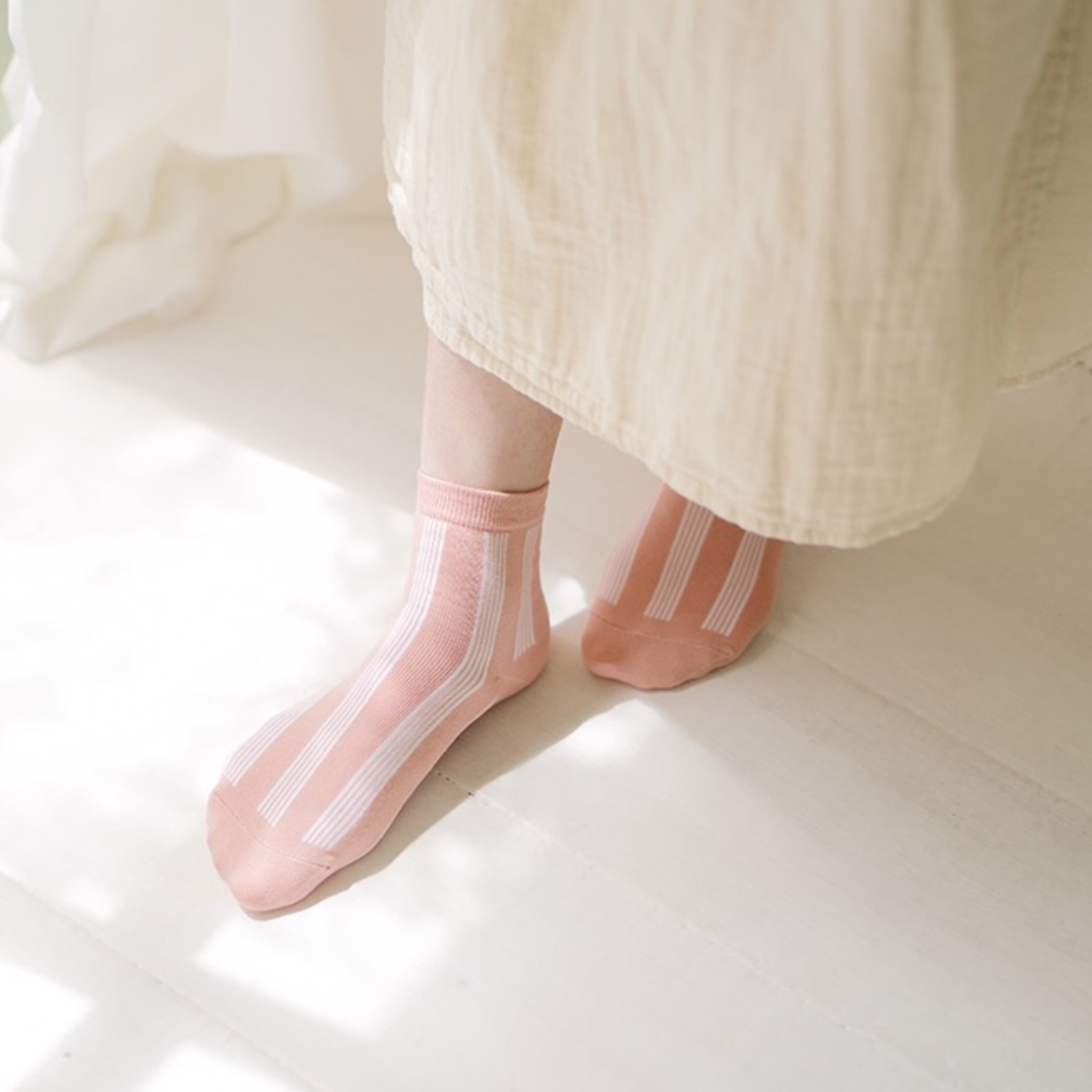 コットンなのにシャリシャリとした爽やかな履き心地とさらっとした足通しで、春夏の足元のアクセントになってくれます。