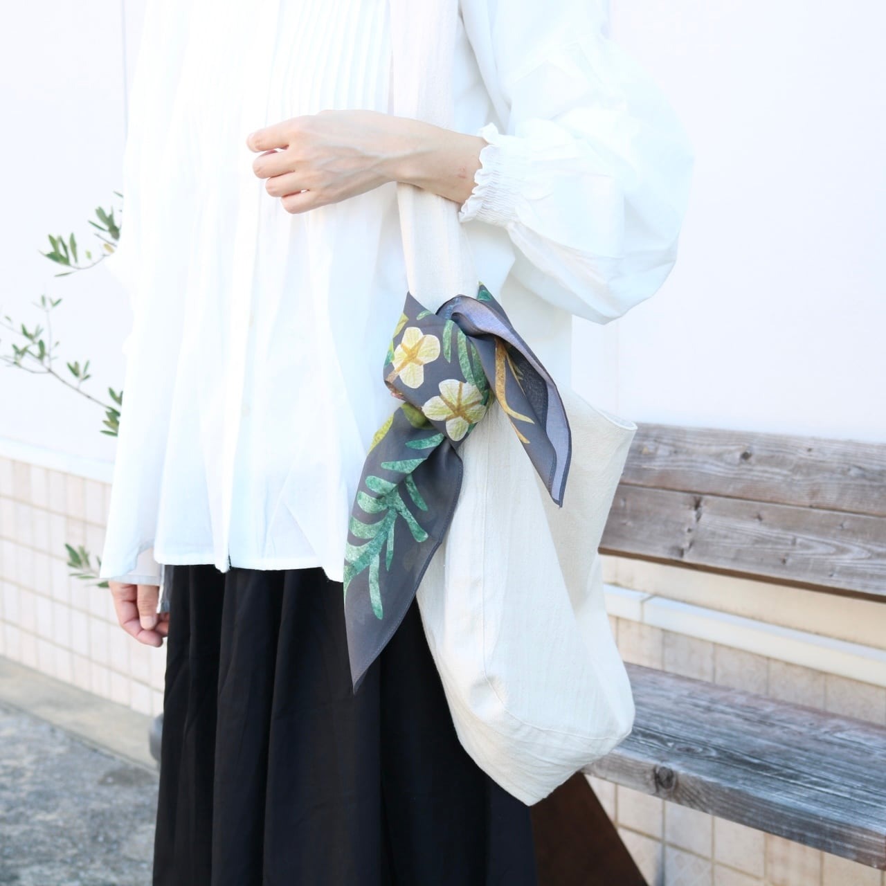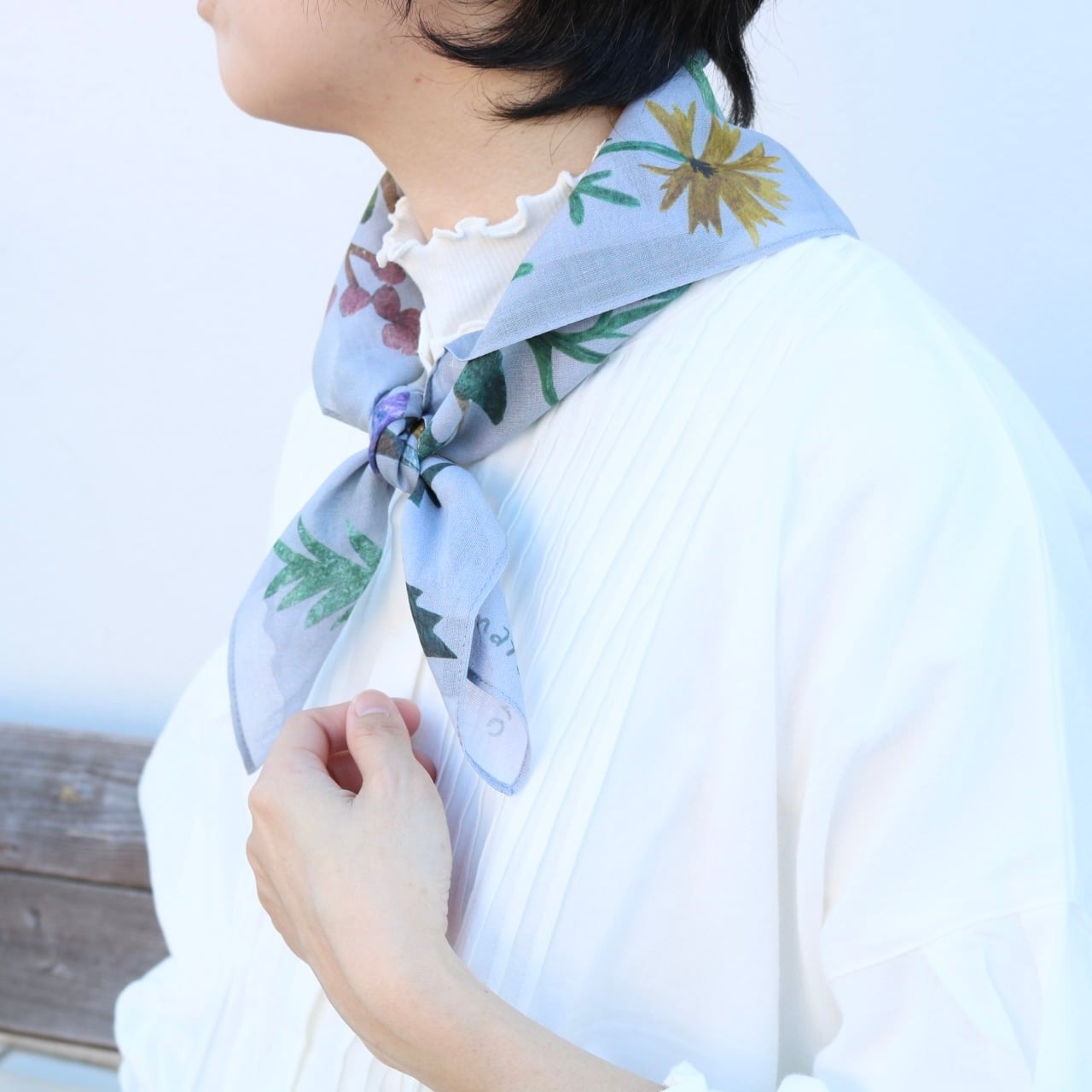 60×60cmのゆったりスカーフサイズですので、ハンカチとしてはもちろん、ミニスカーフ、お弁当包みやバッグの目隠しにしたり、ちょっとしたクロス代わりにも使えます。