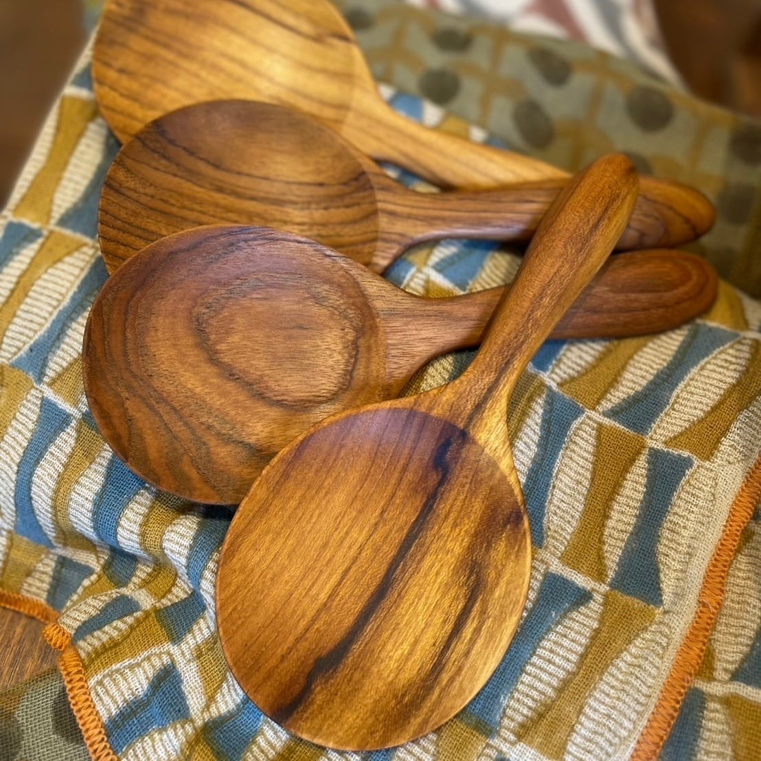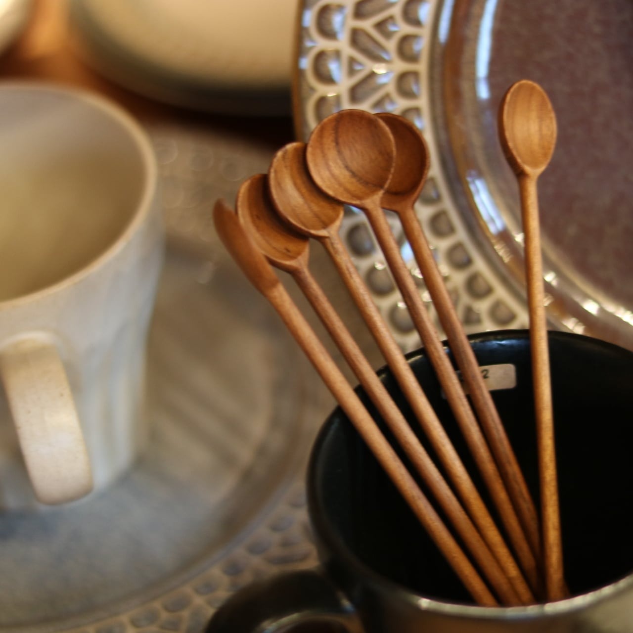 松尾ミユキさんイラストの雑貨、無垢チークのキッチンカトラリーやインテリア小物、