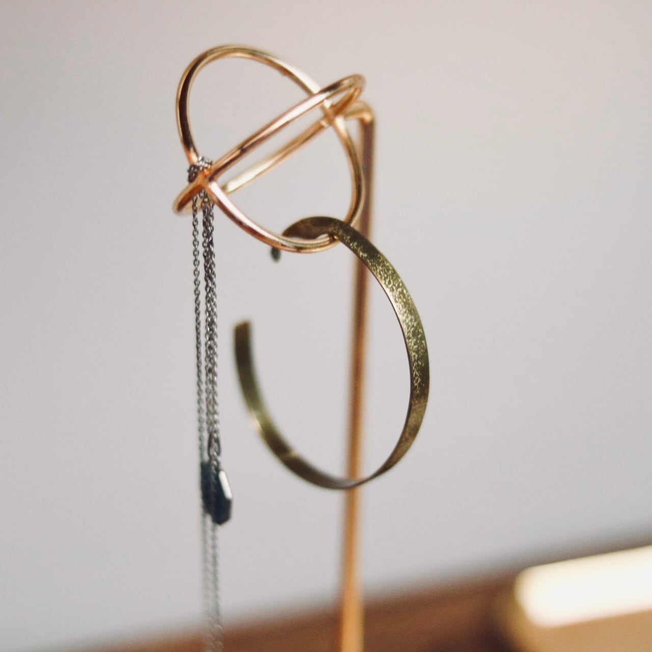 木目が美しいアカシアの台座とゴールド仕上げのアイアンがどこか懐かしいアンティークのような雰囲気を感じさせます。