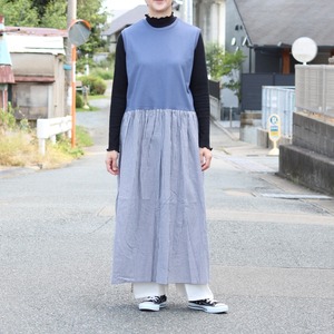 その日の気分で、インナーに半袖や長袖のカットソー、上からブラウスを羽織ったりスウェットを合わせたり、ボトムスはパンツスタイルと合わせても◎