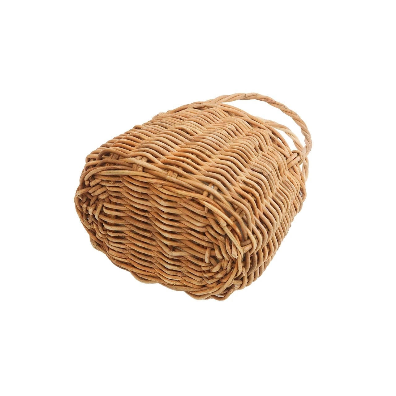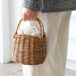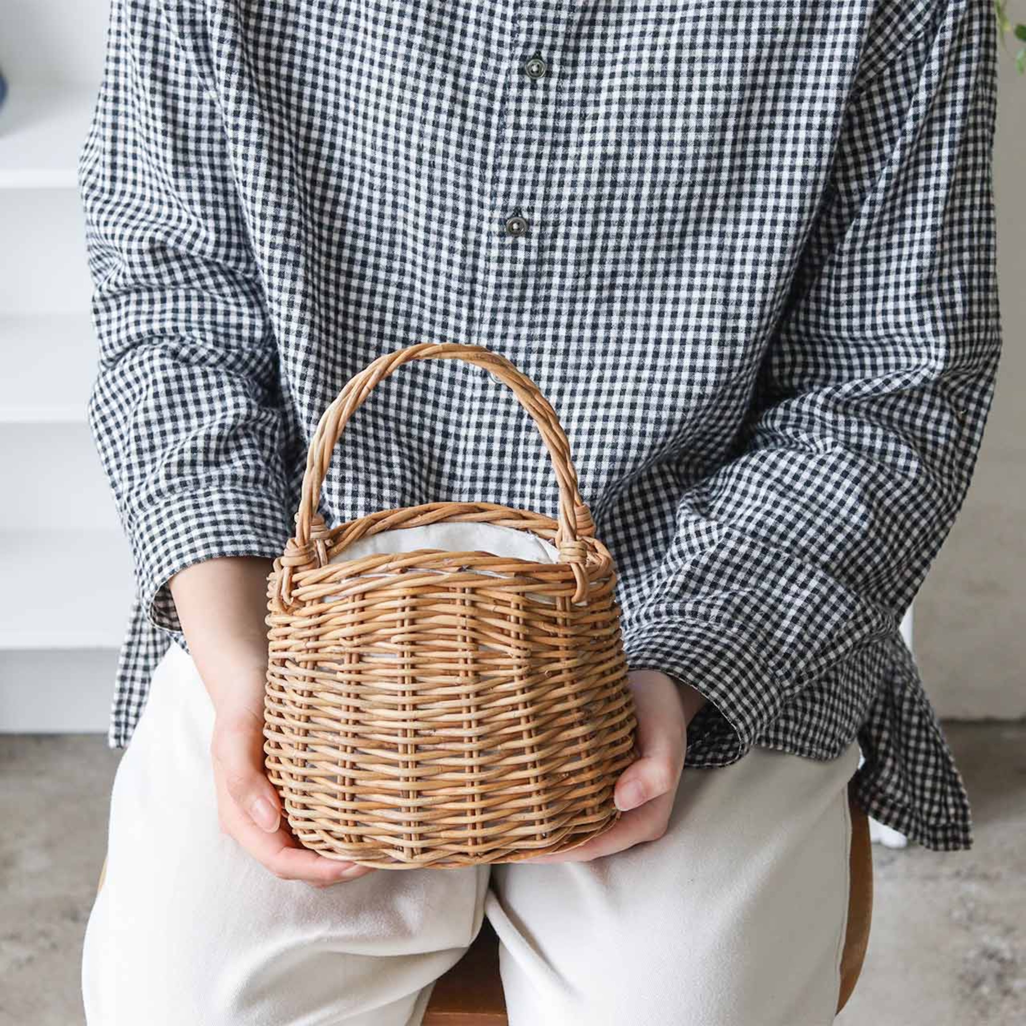 ヨーロッパのアンティークデザインを思わせる風合い豊かな皮付きラタンのミニバッグです。