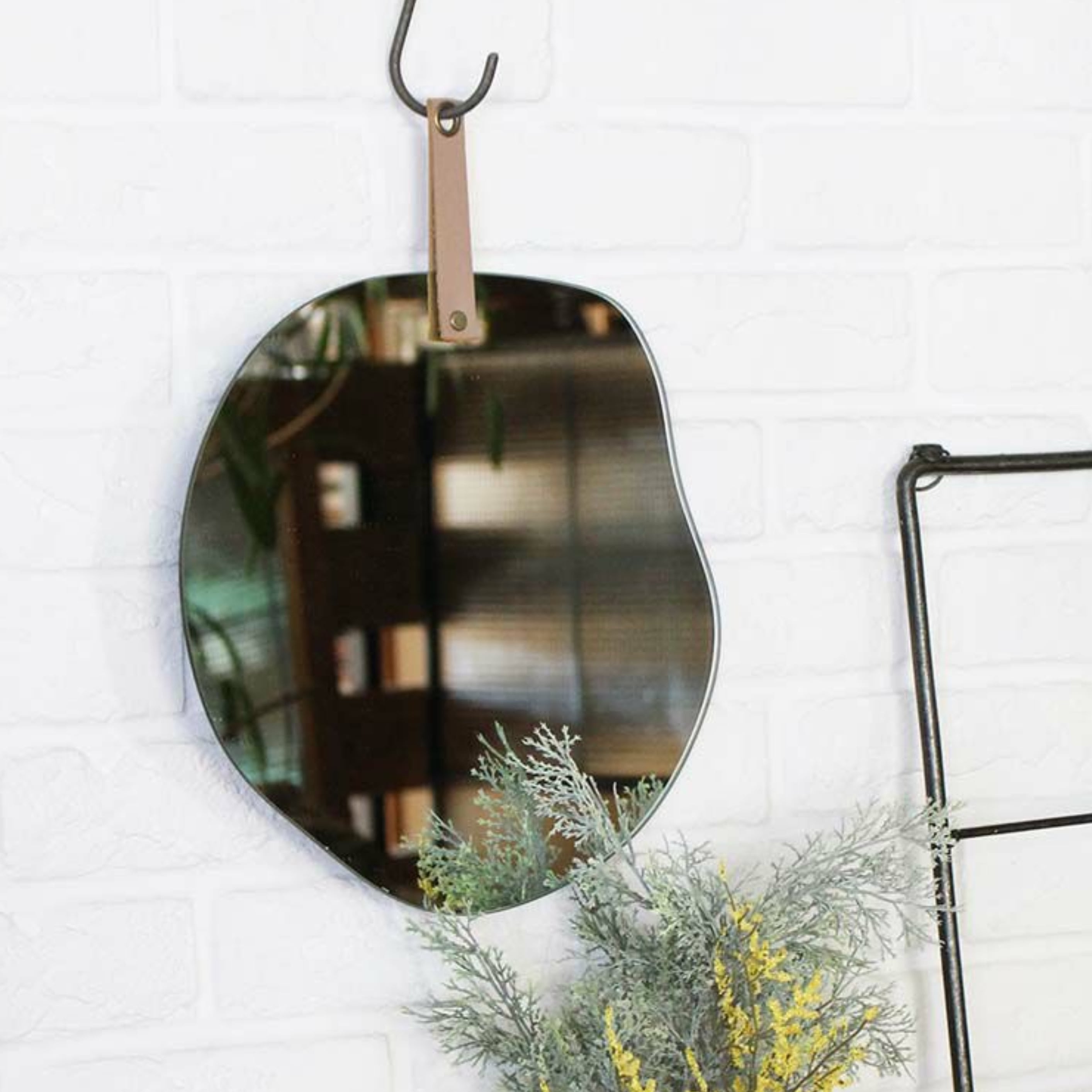 素材:本体アルミミラー(フロートガラス+裏面アルミコーティング)ループ:本革、真鍮