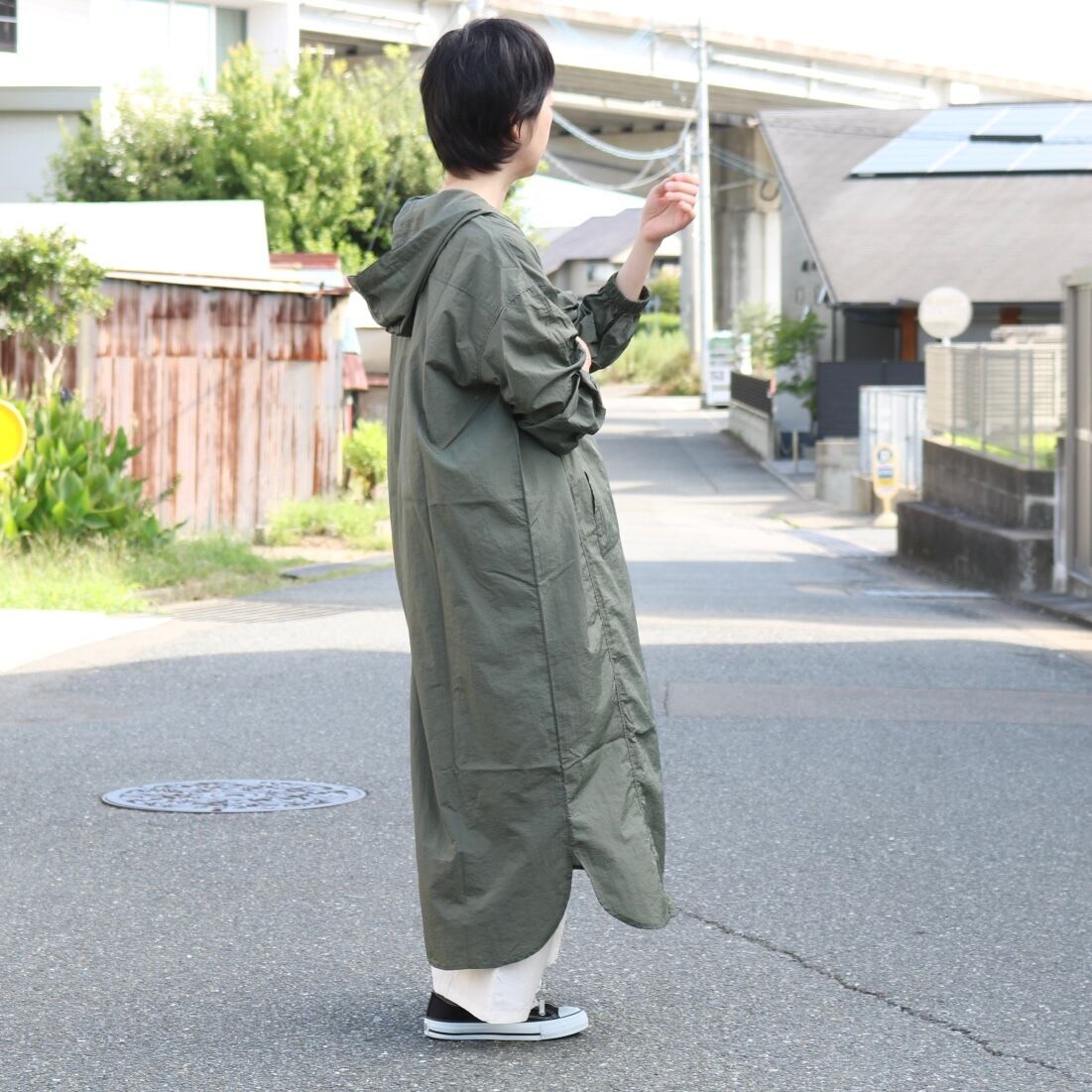 雨の日にも活躍するナイロンパーカーのワンピース