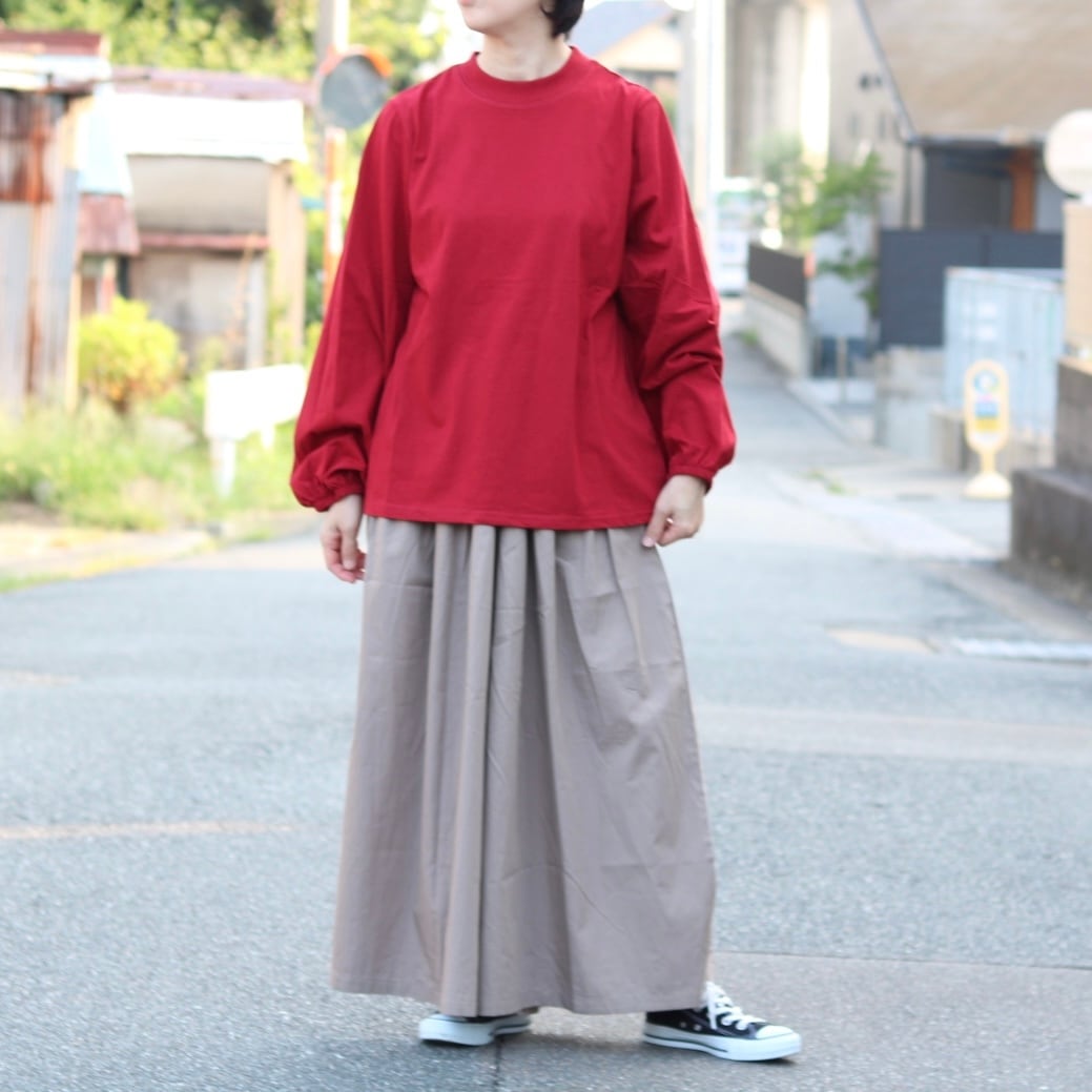 着丈が長めですので、スカートやボトムスにインすると 収まり良く、すっきりとした印象のコーディネートを楽しめます。