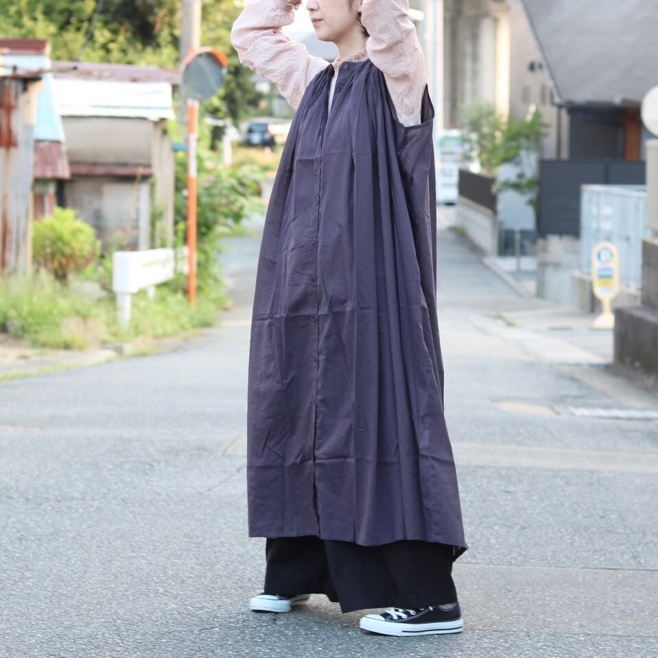 肩のヨーク切り替えからたっぷりのギャザーが裾に向かって伸びるボイルワンピースです。