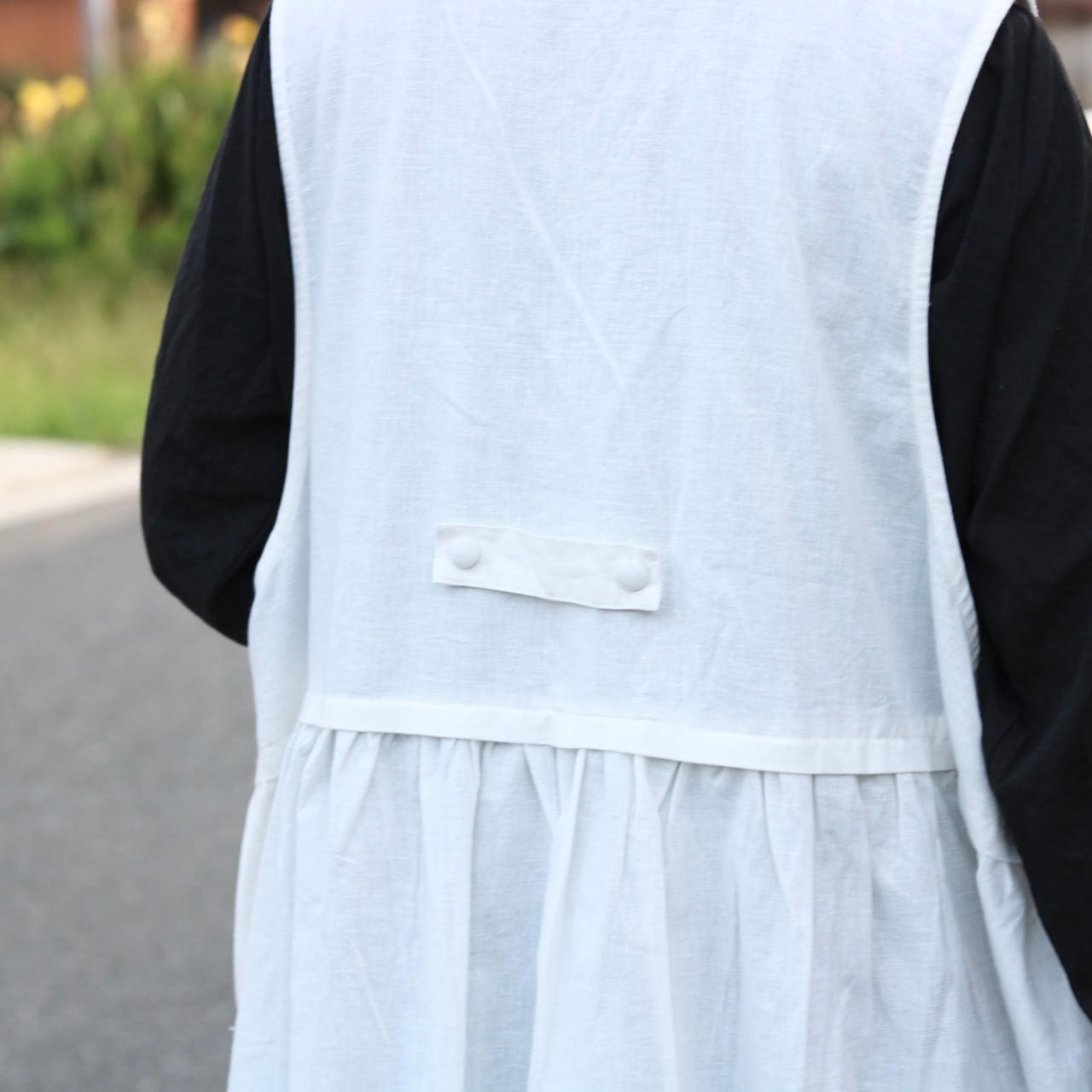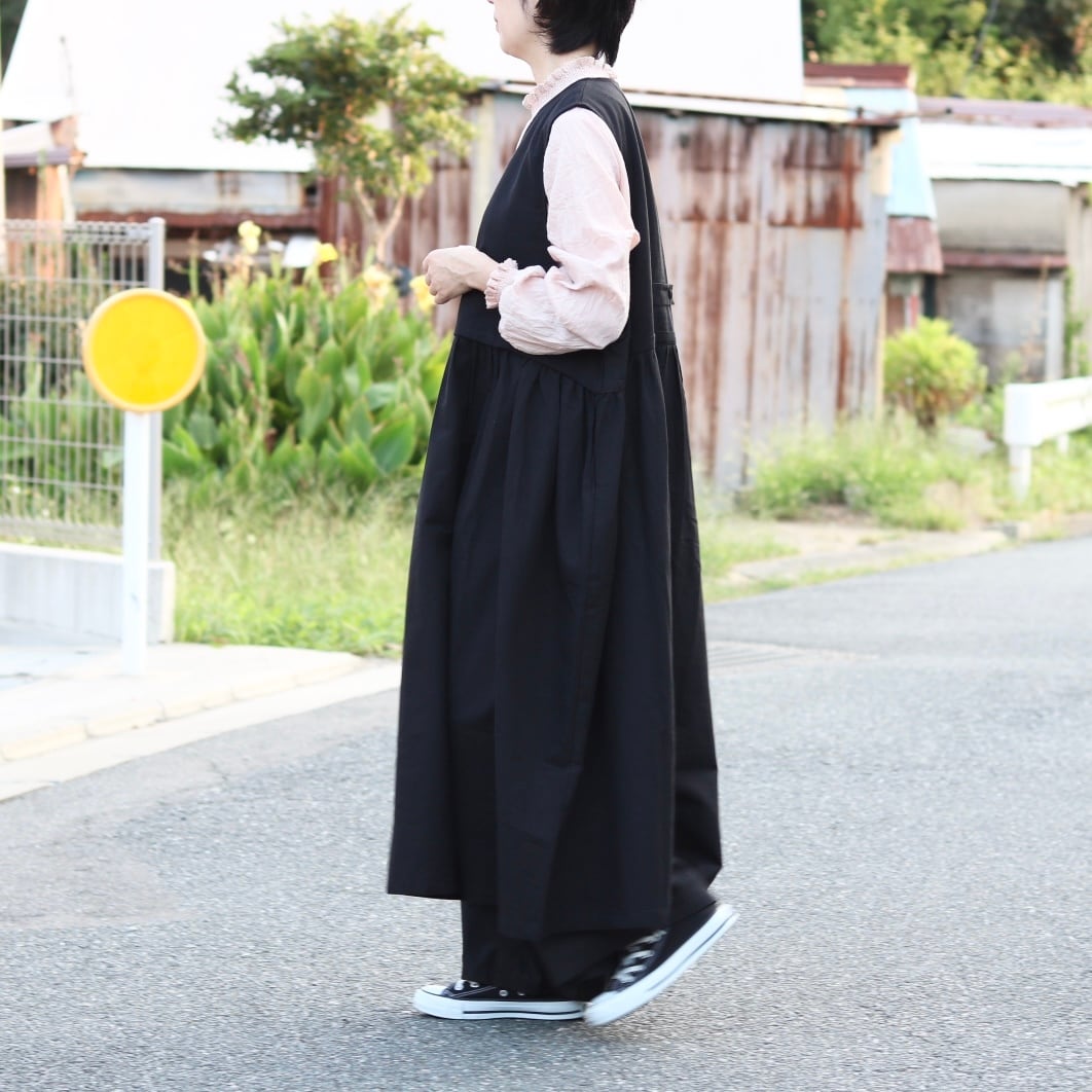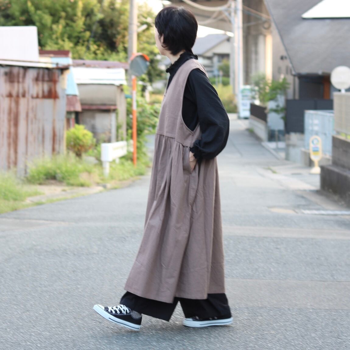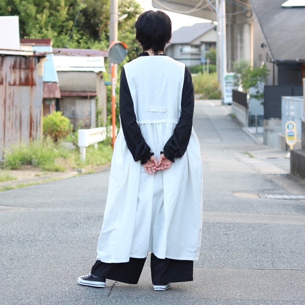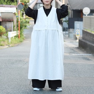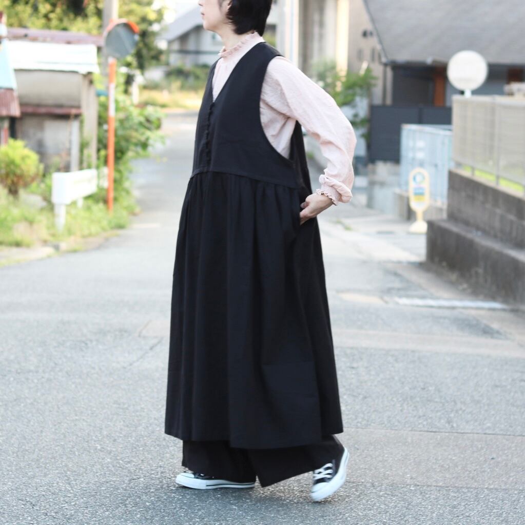 ウエストの切り替え位置が高いので自然とスタイルアップ効果もあるベスト風ワンピースです。