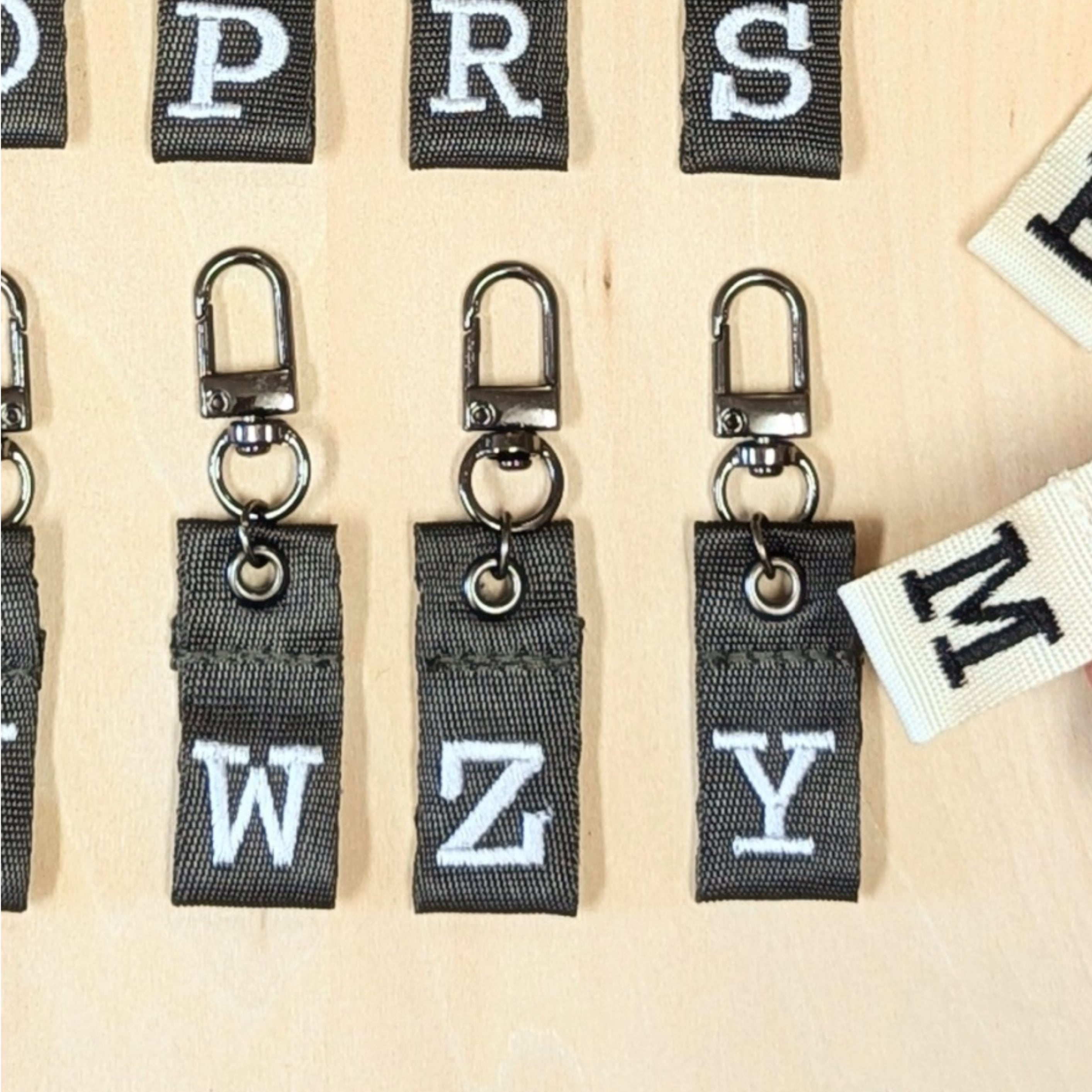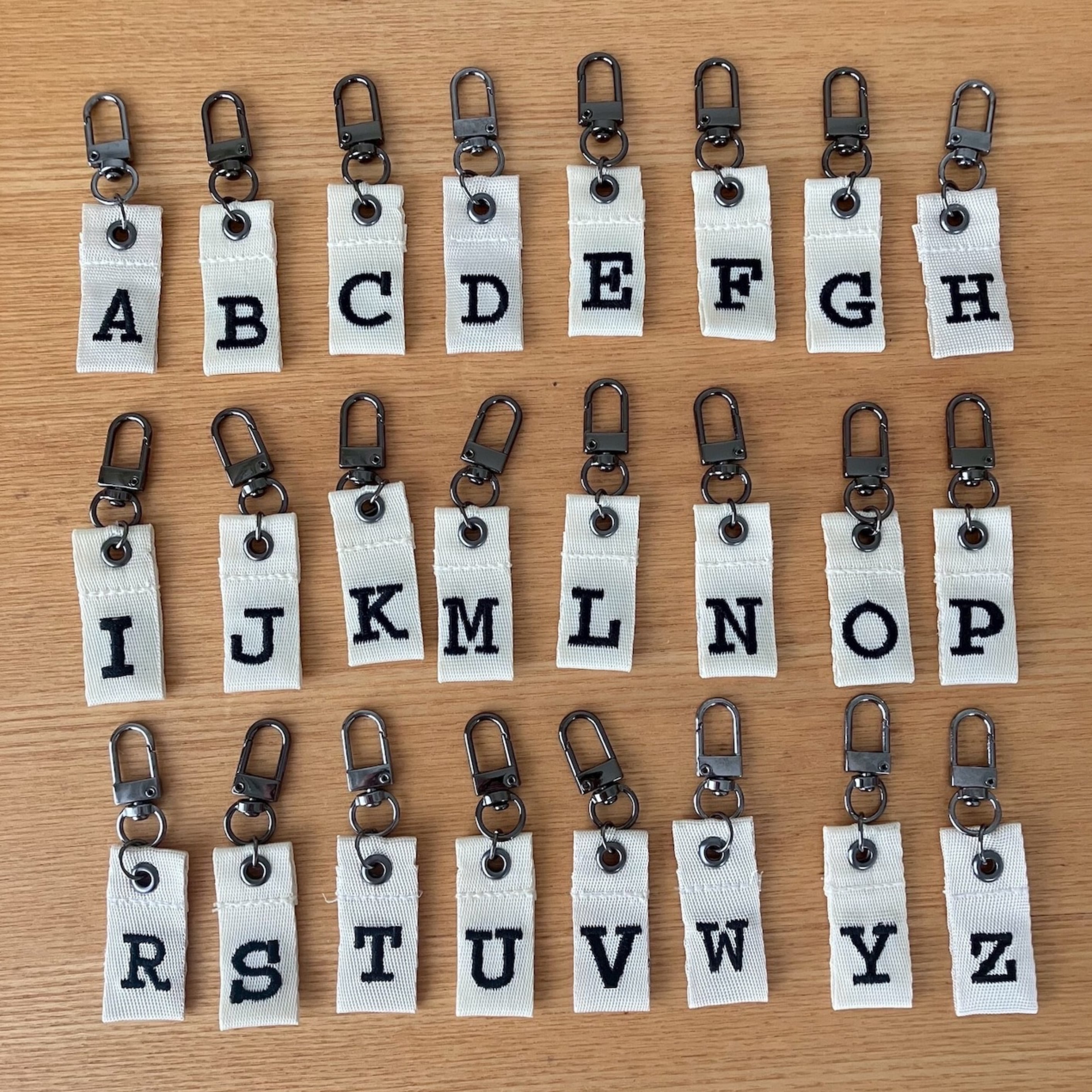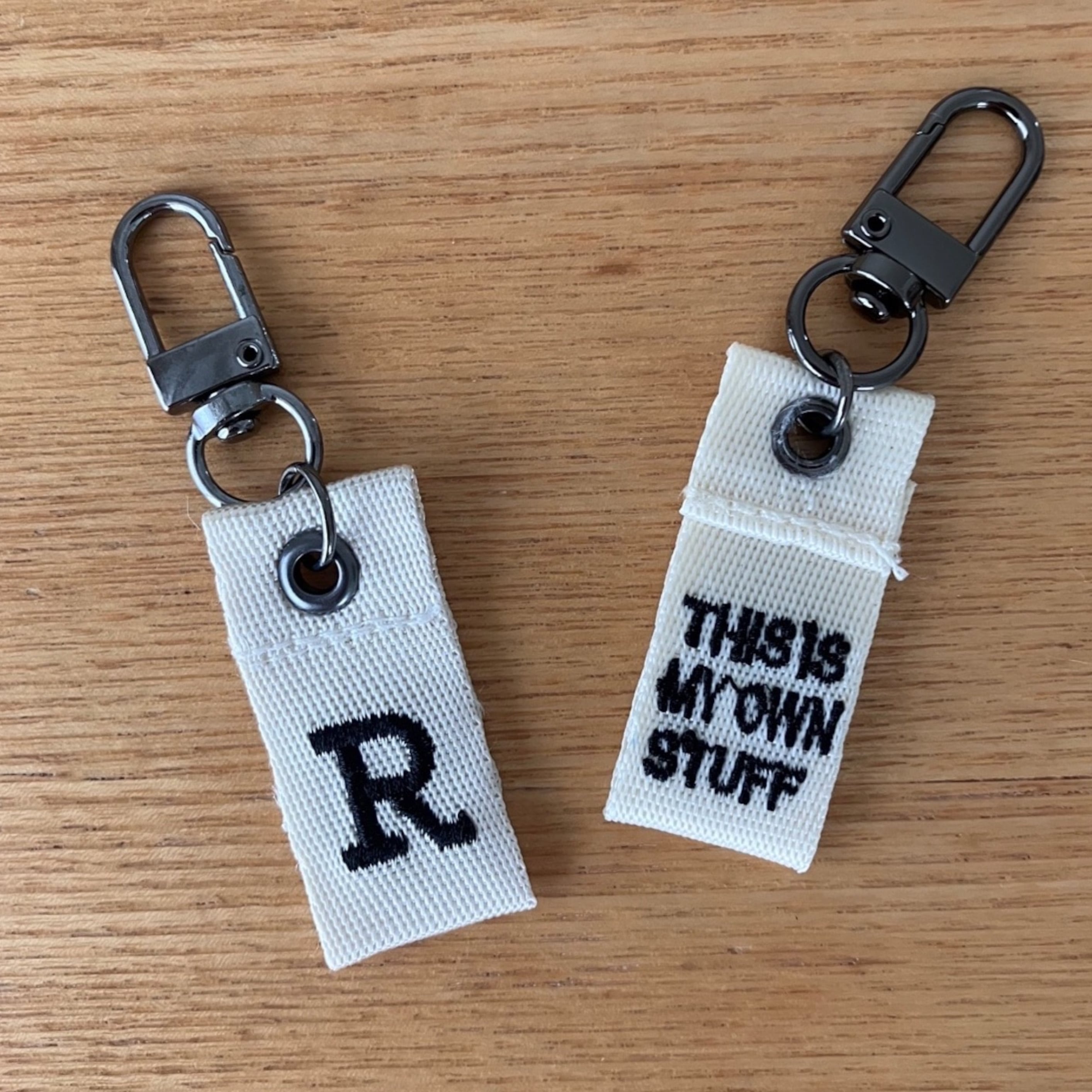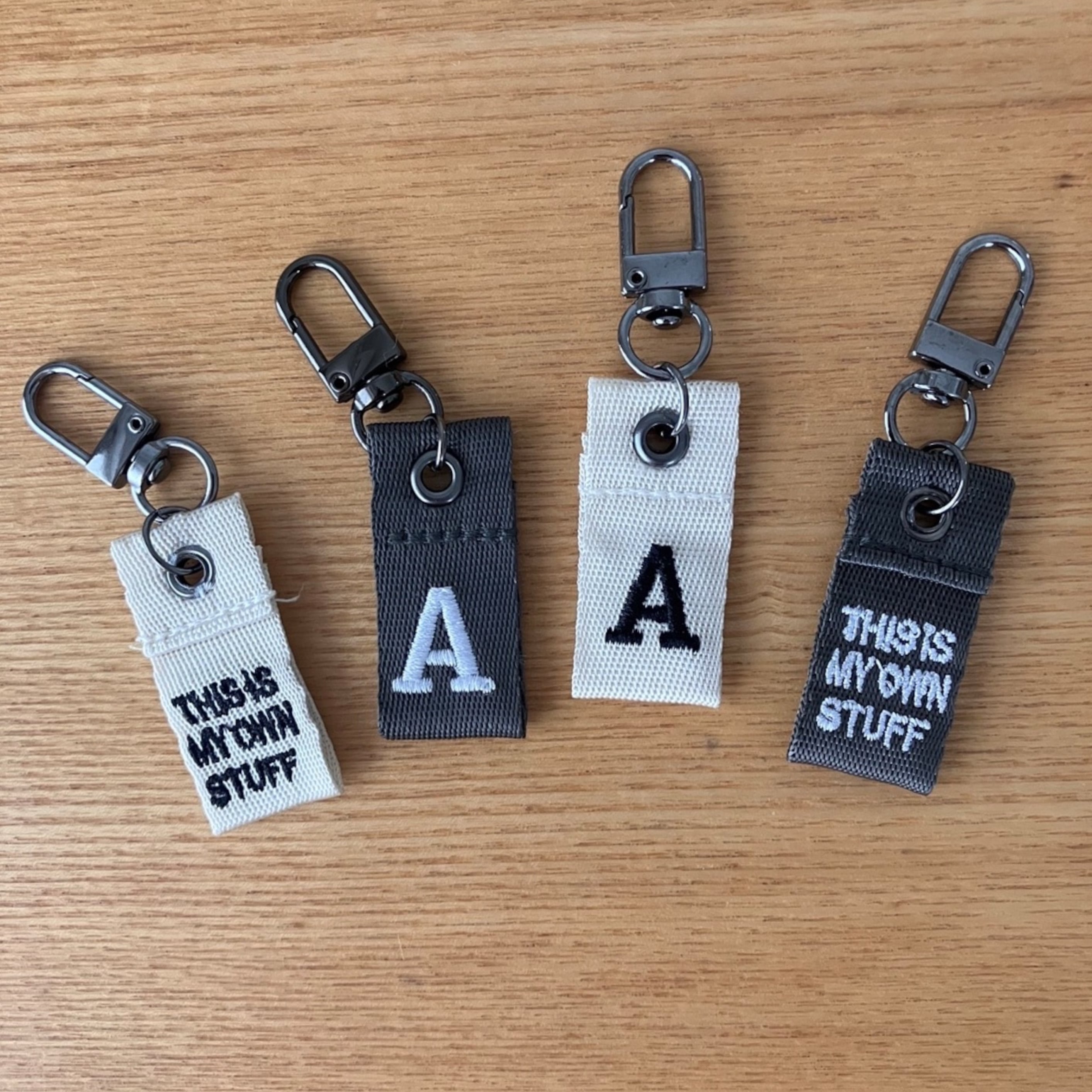 ナイロンテープを使用したアルファベットタグのキーホルダー