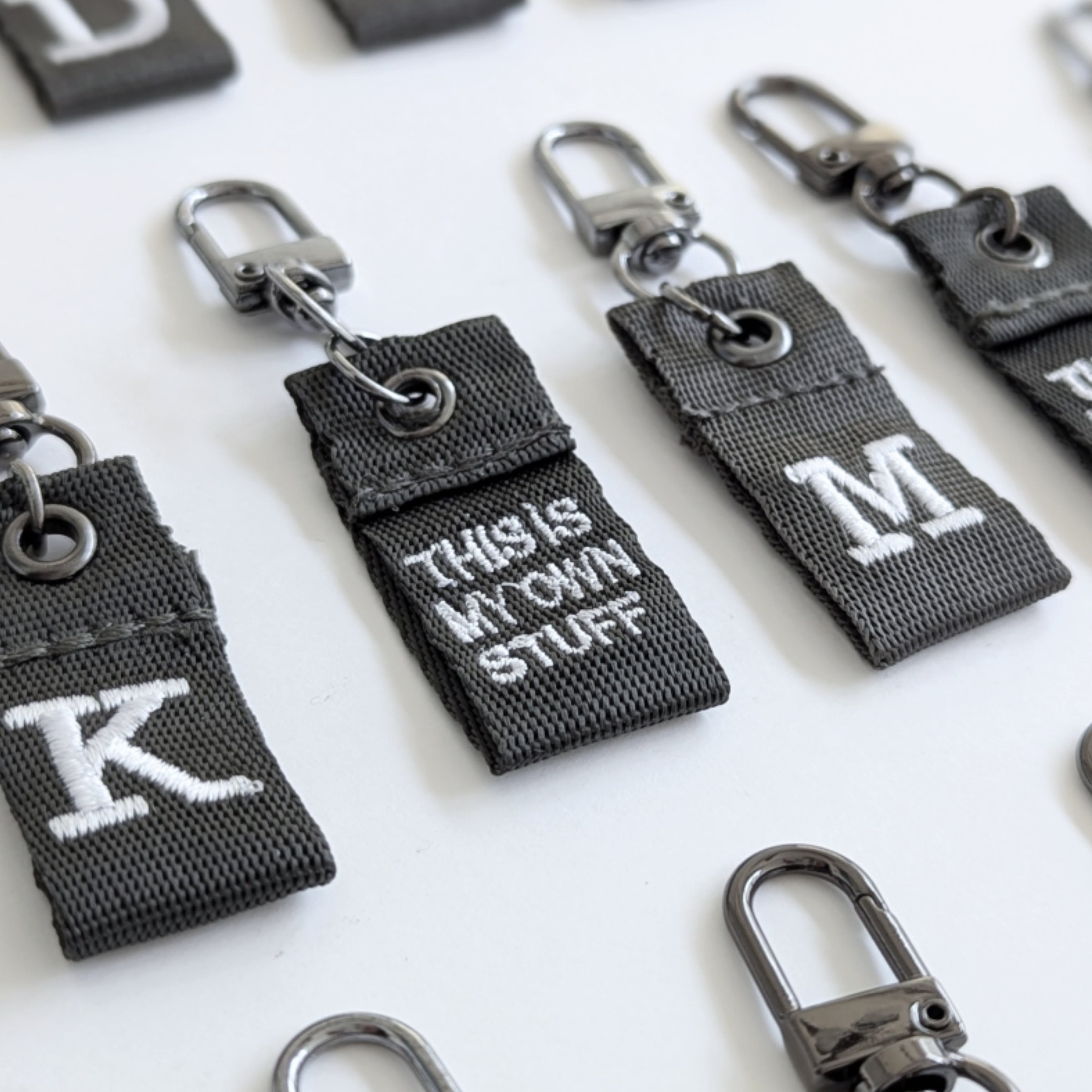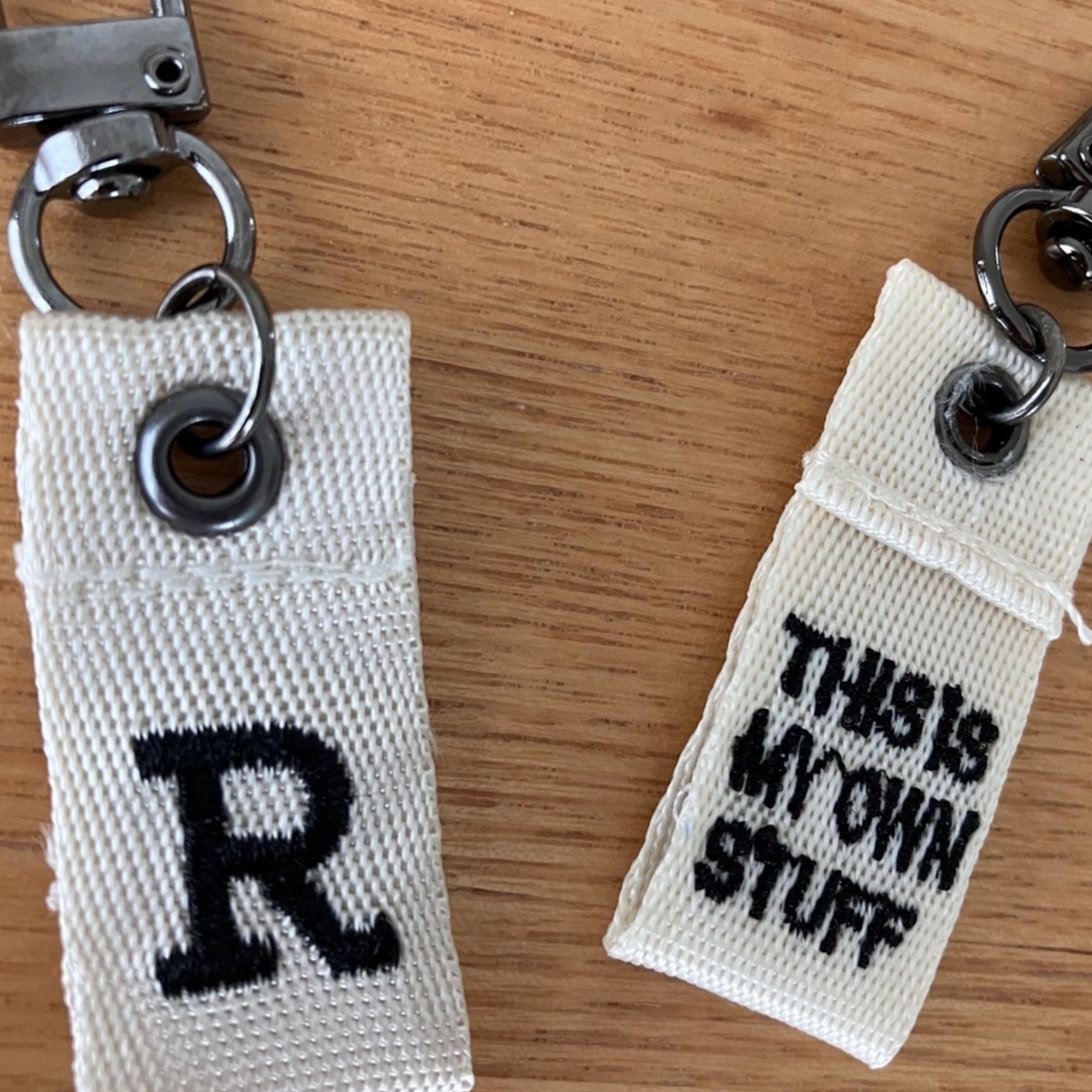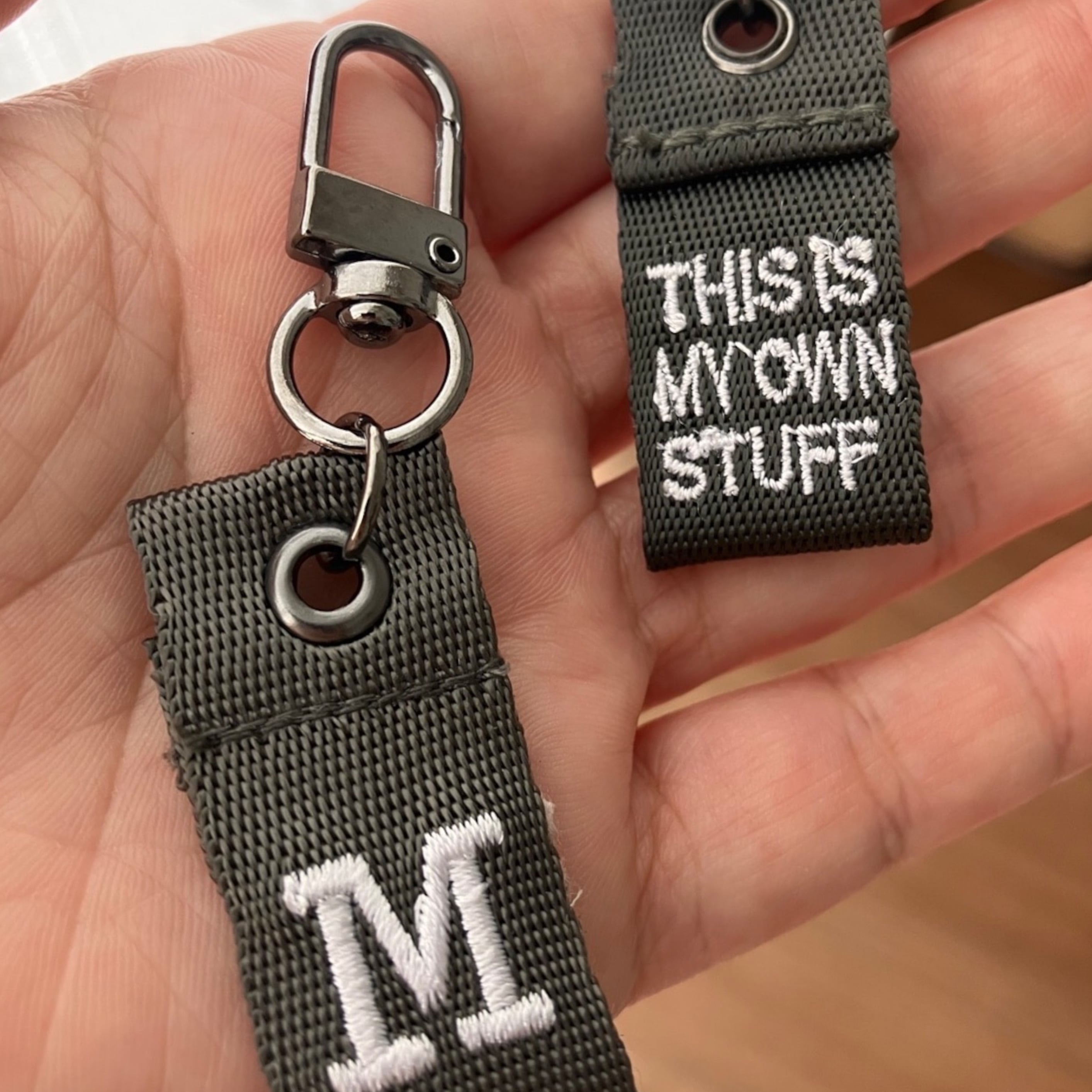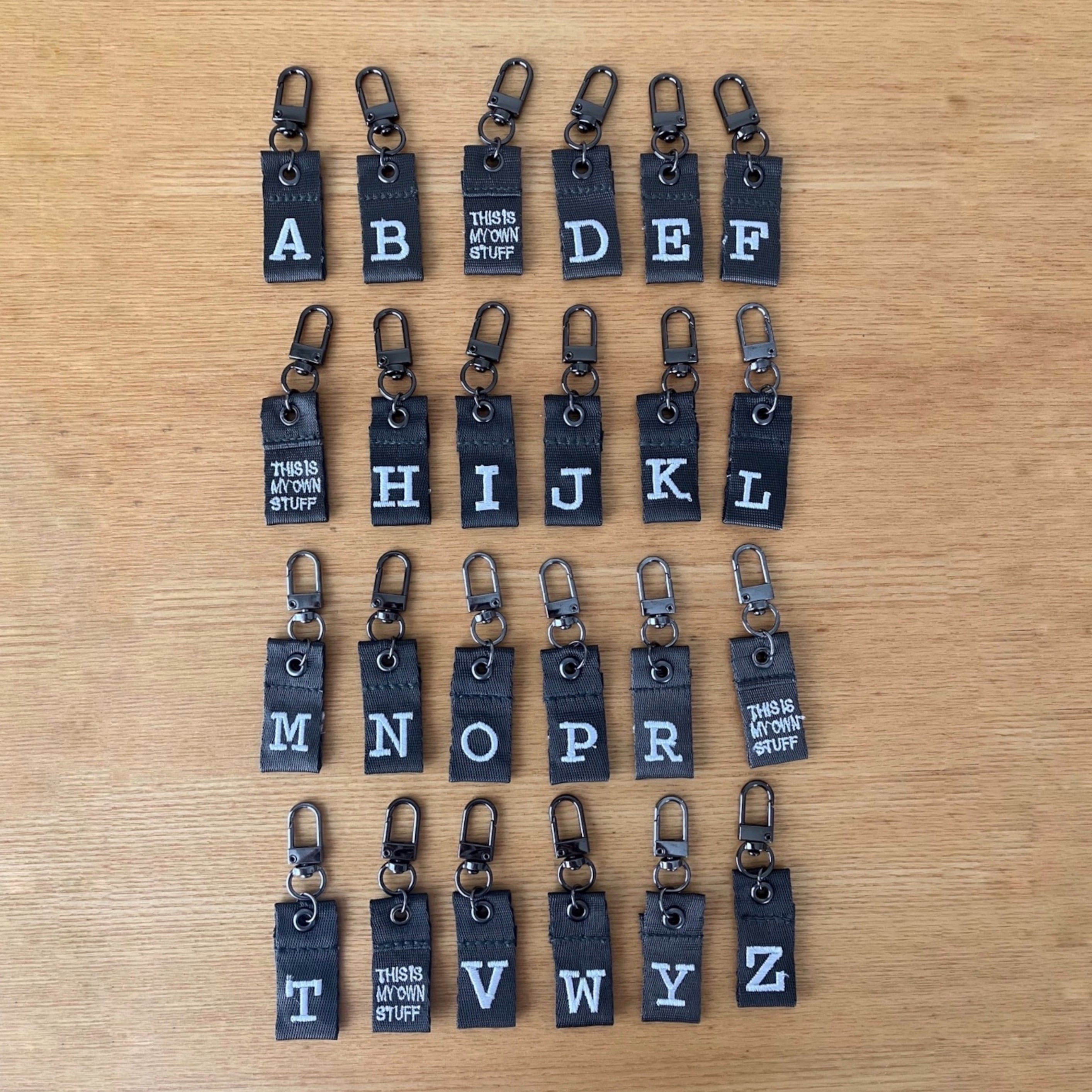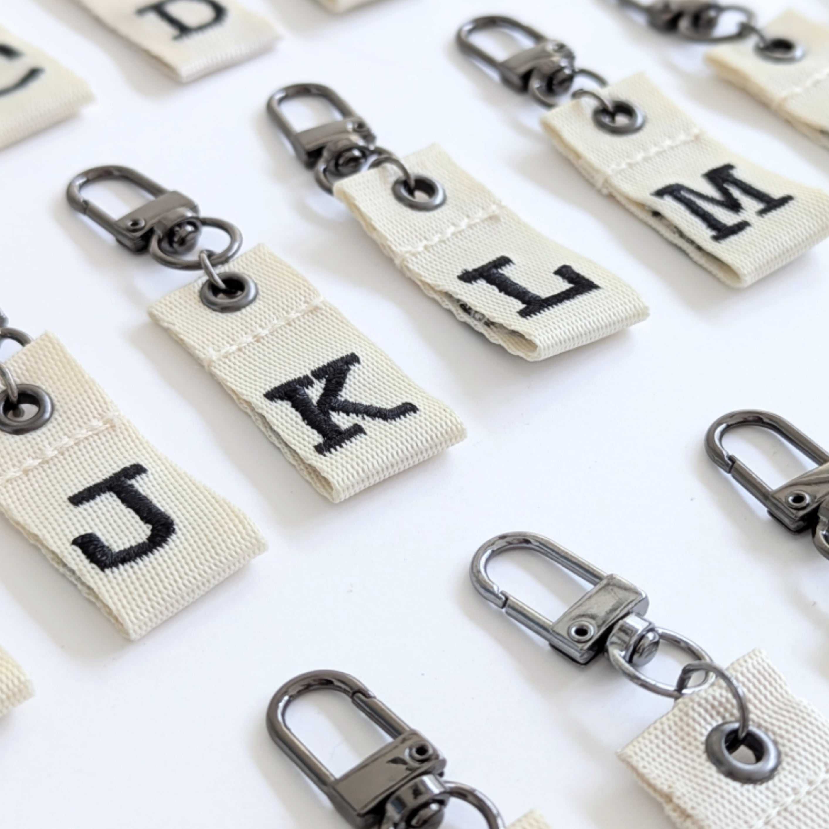 ナイロンテープを使用したアルファベットタグのキーホルダー
