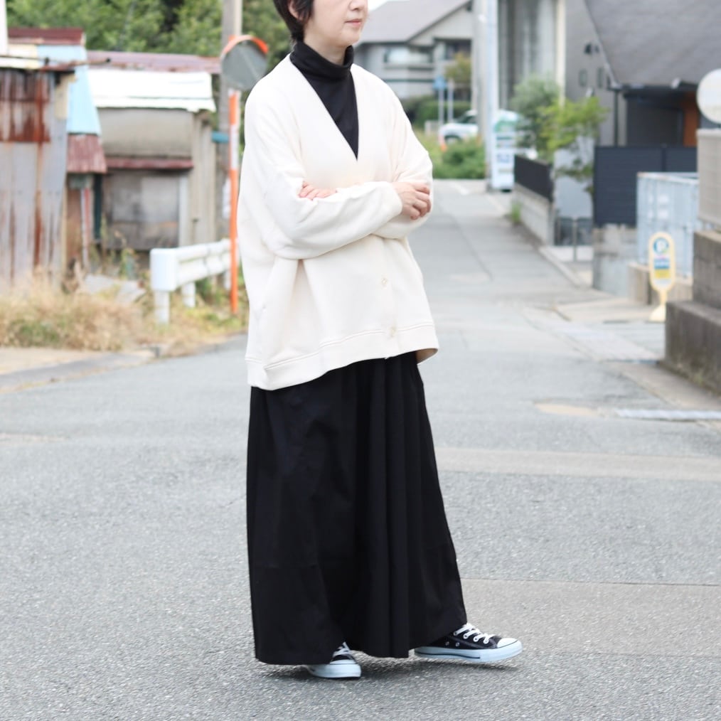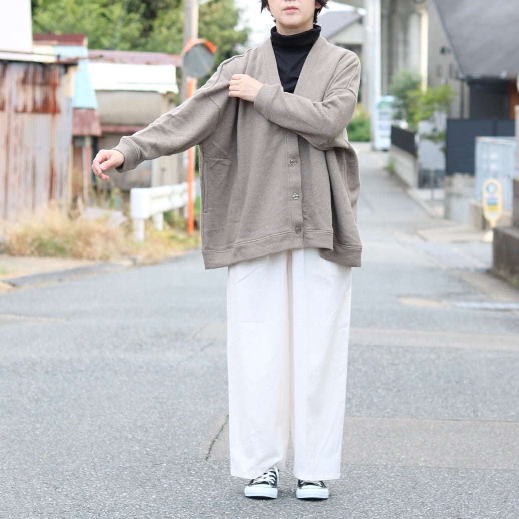 ゆったりとしたサイズ感でリラクシーな雰囲気のワイドカーディガンです。