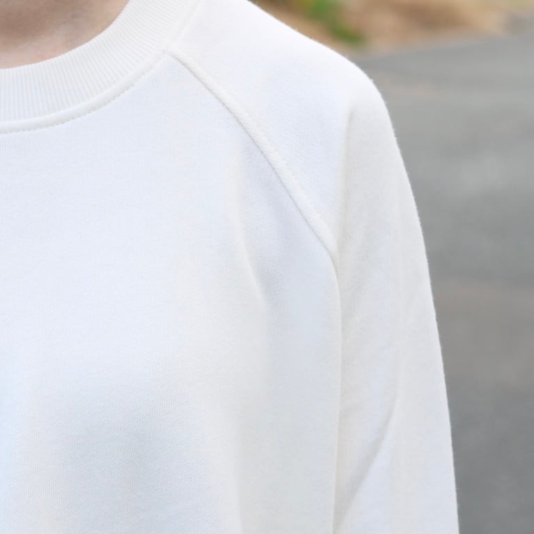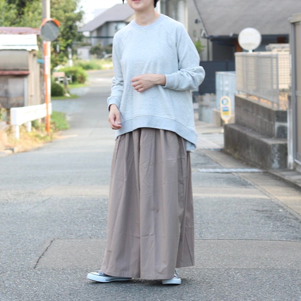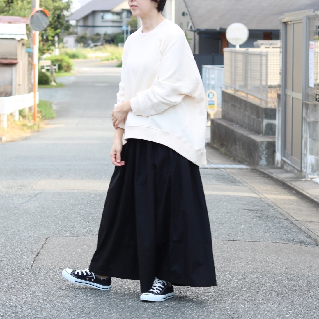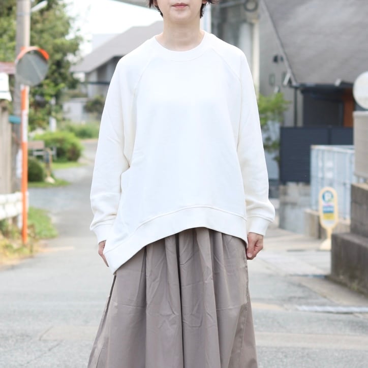 柔らかいコットンの特性を活かしたラグランスリーブで、ゆったりとしたリラックス感あるシルエットです。