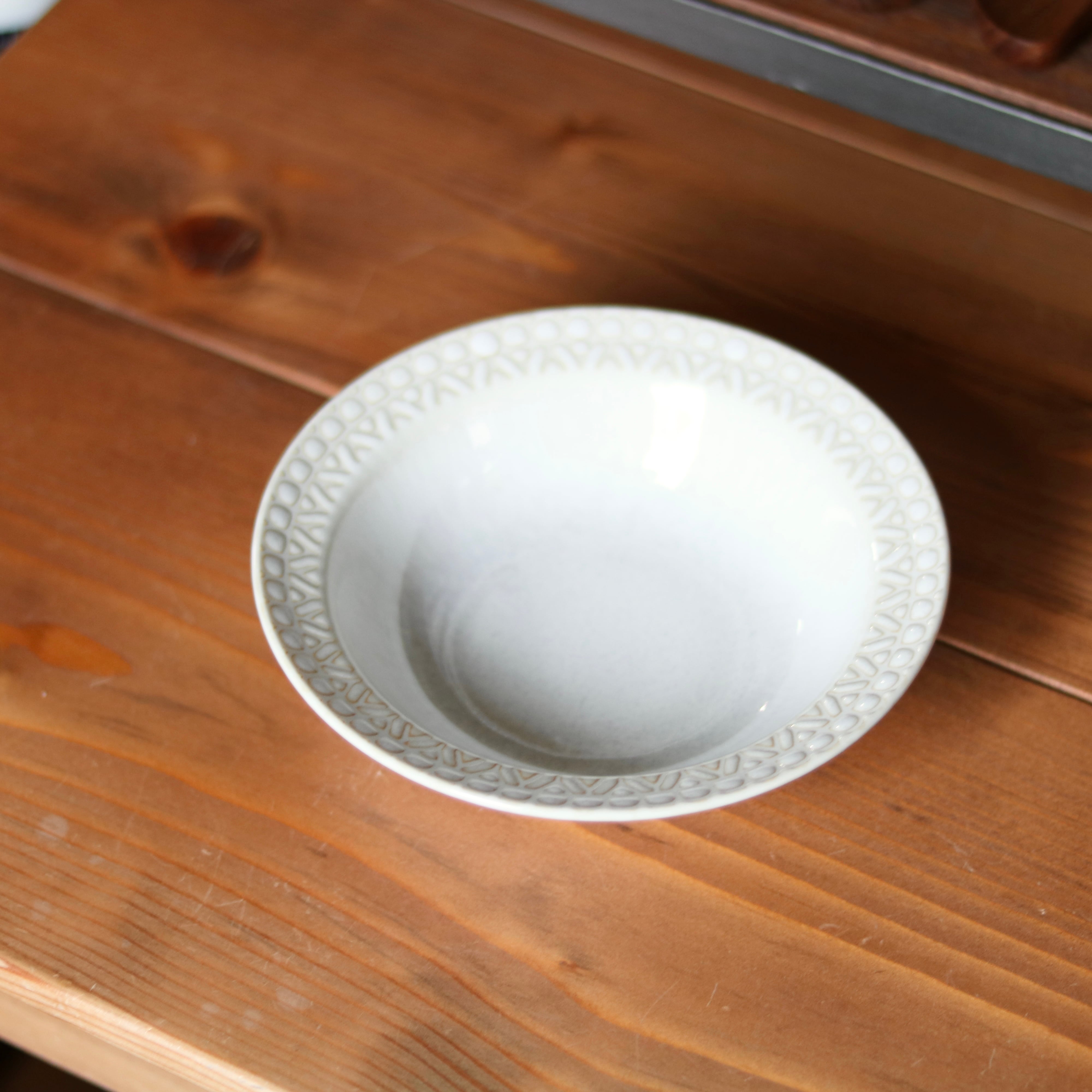 ポコポコとしたフチが可愛く上品な印象のボウルは、普段使いはもちろんパーティや記念日のテーブルにも映えます。