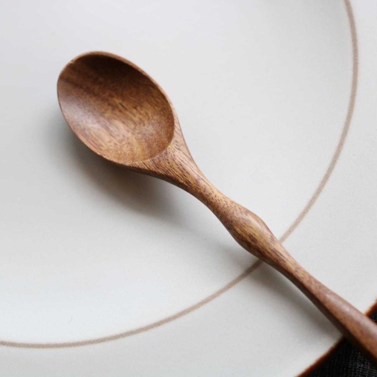 アカシアの木で作った クラシカルなフォルムのデザートスプーンは、アカシアウッドならではの、木目が持つ自然の美しさと、手に取った時の軽やかな質感が魅力のカトラリーです。