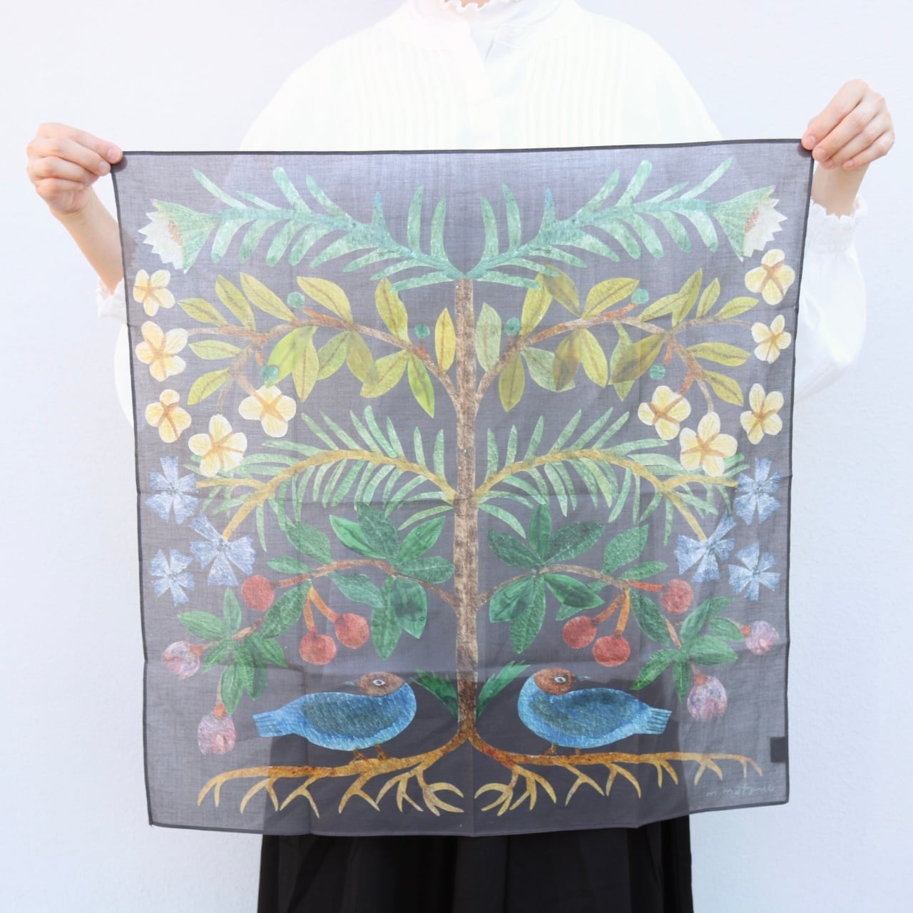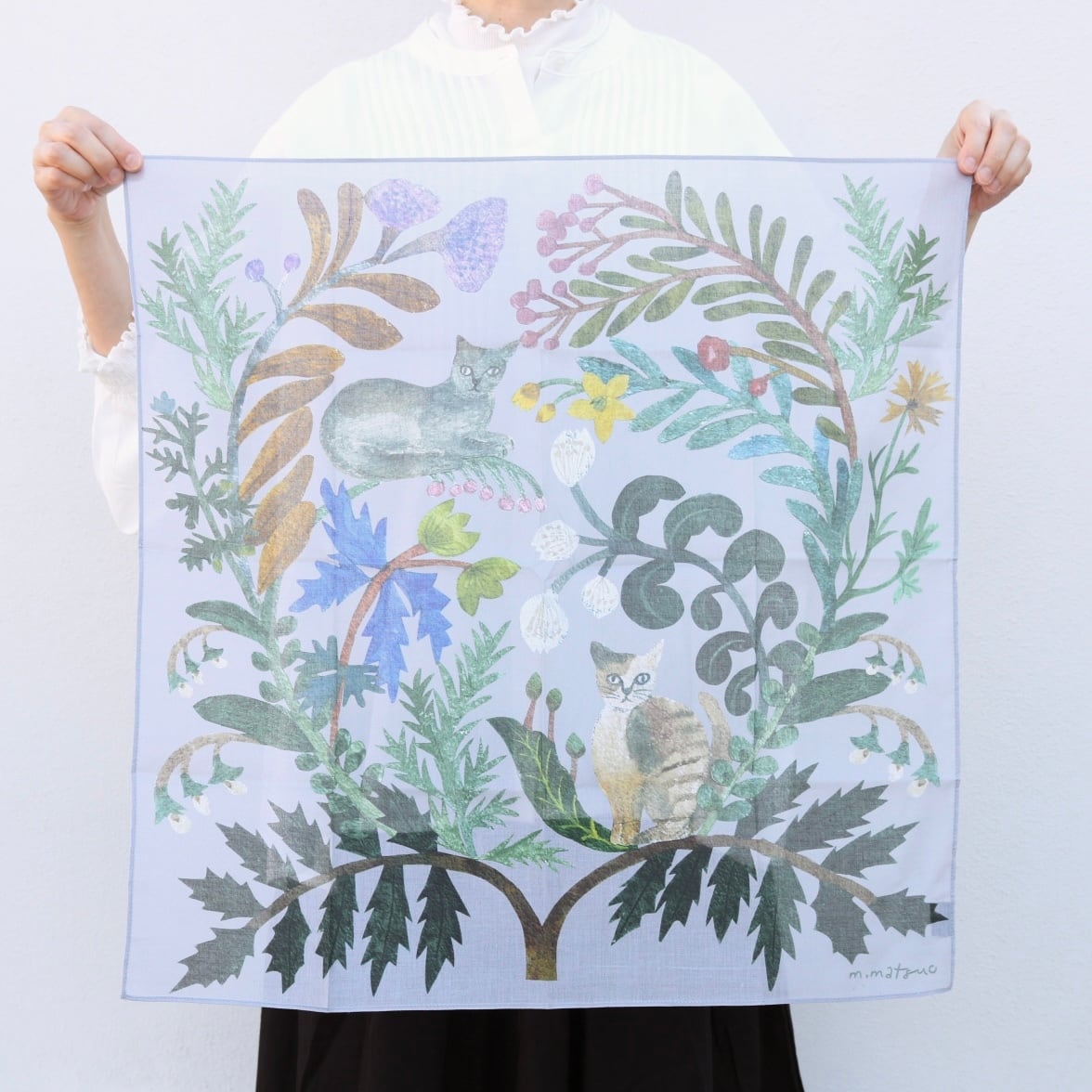 松尾ミユキさんのイラストの世界観を落とし込んだ大きなハンカチーフ