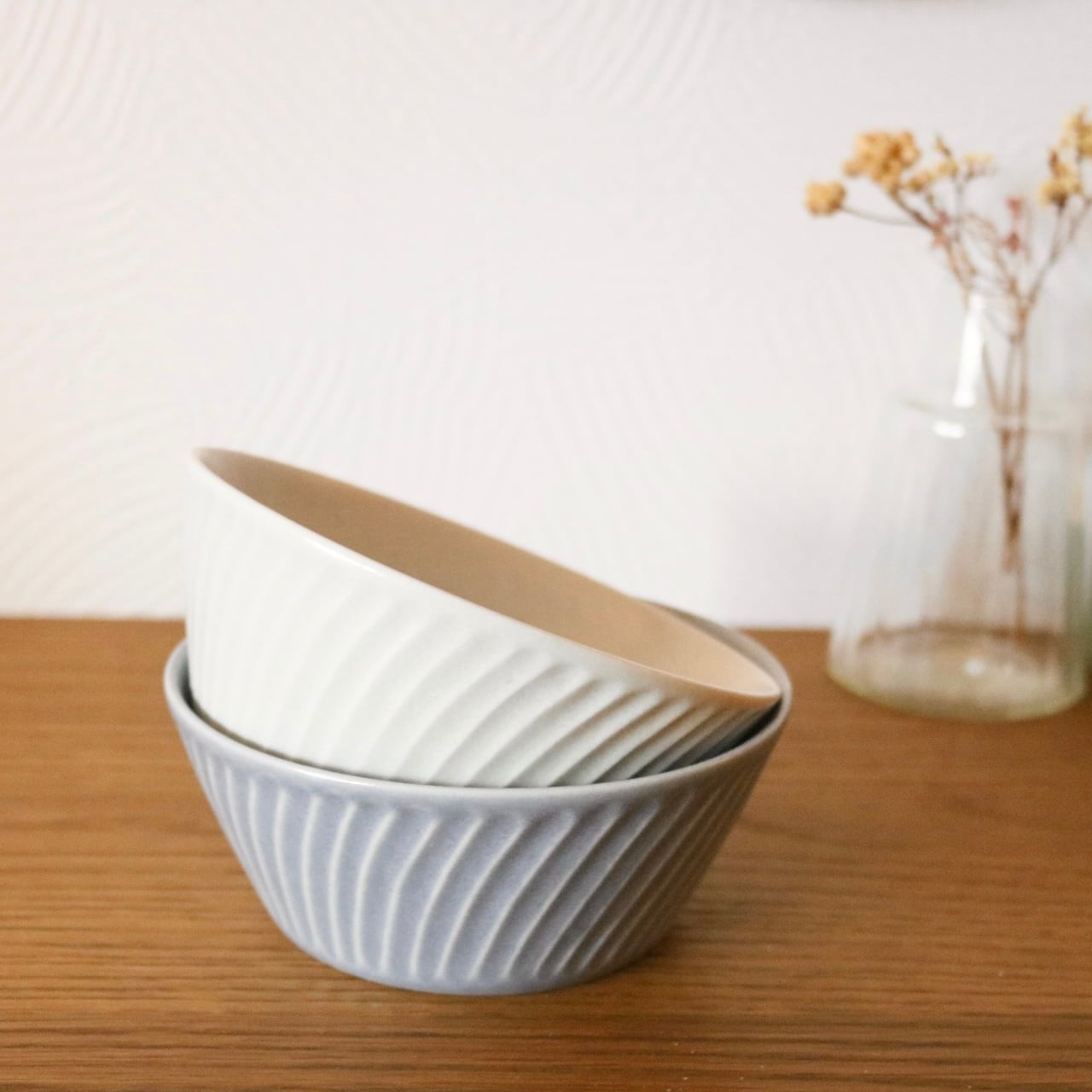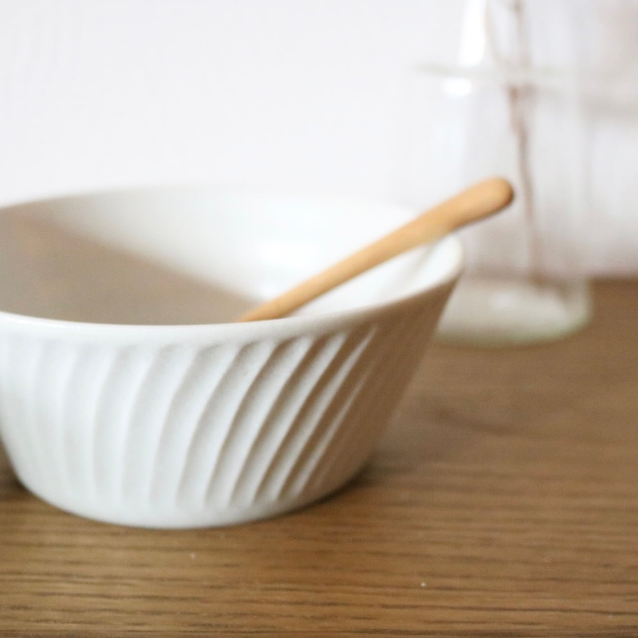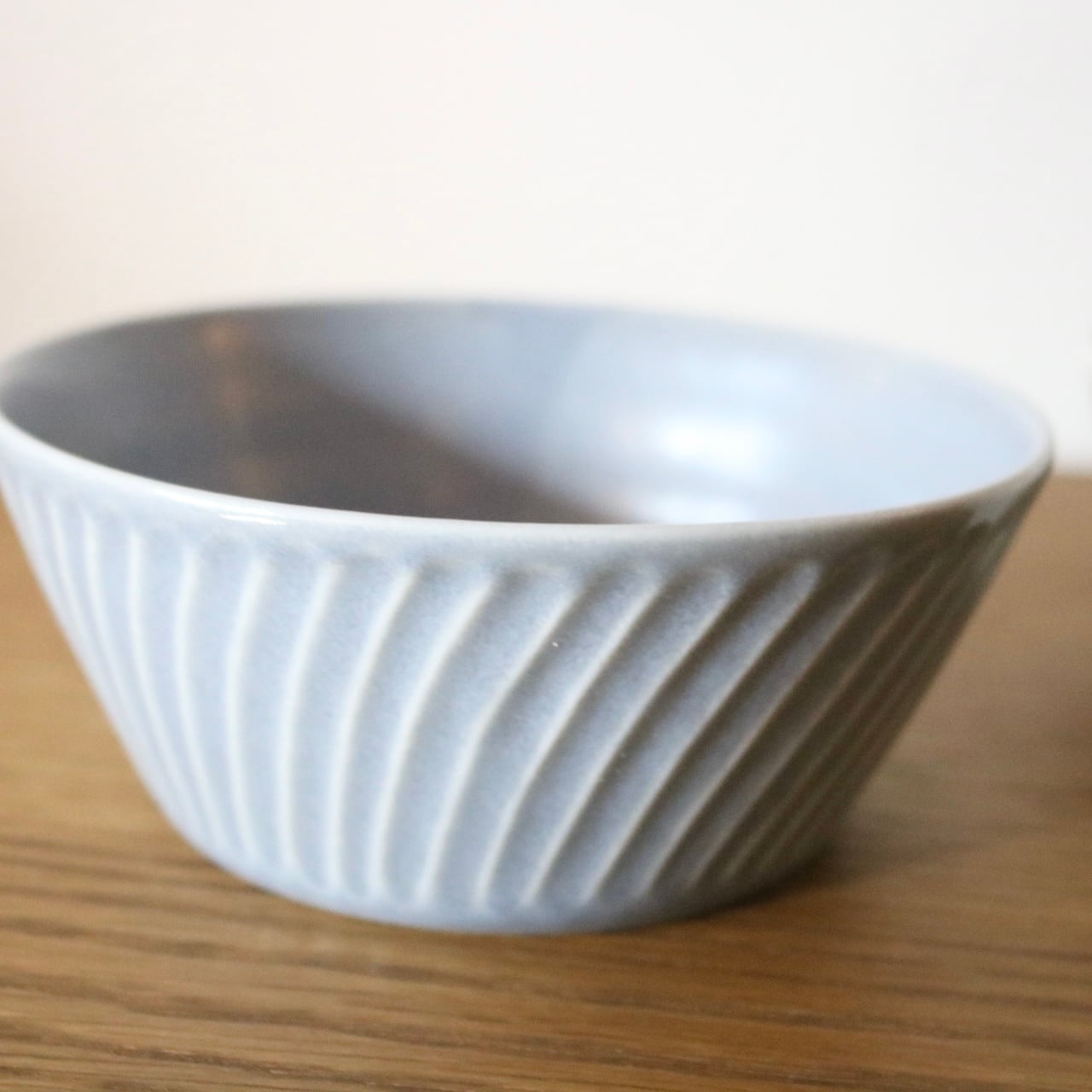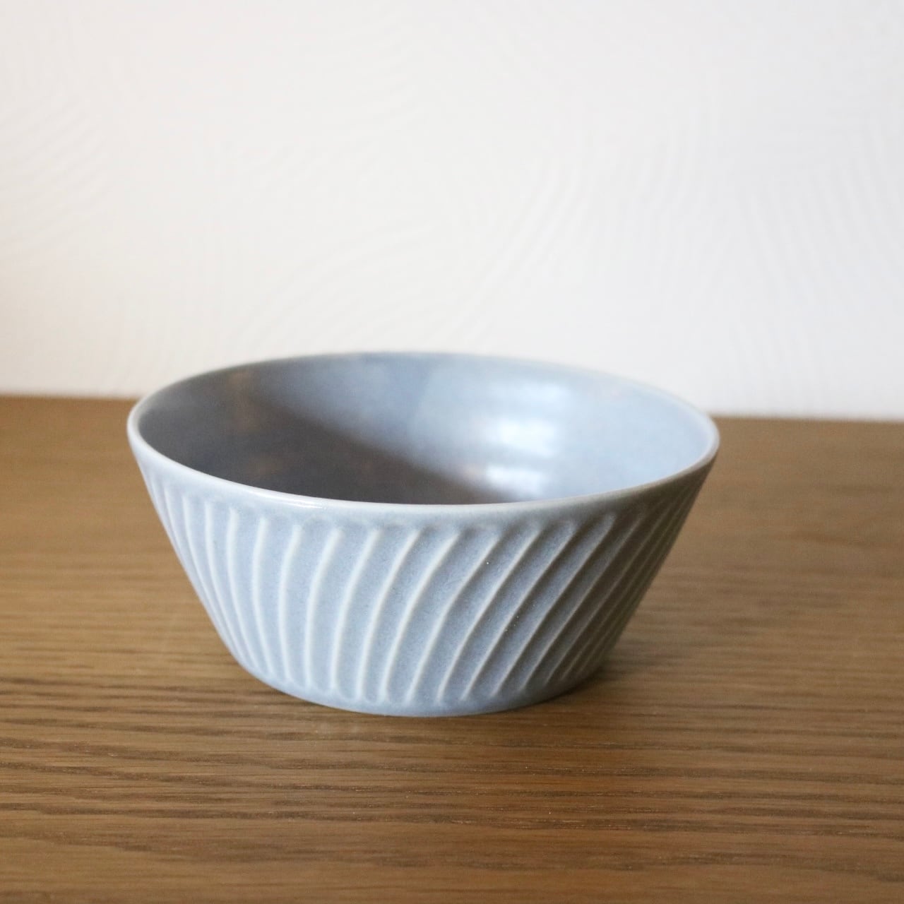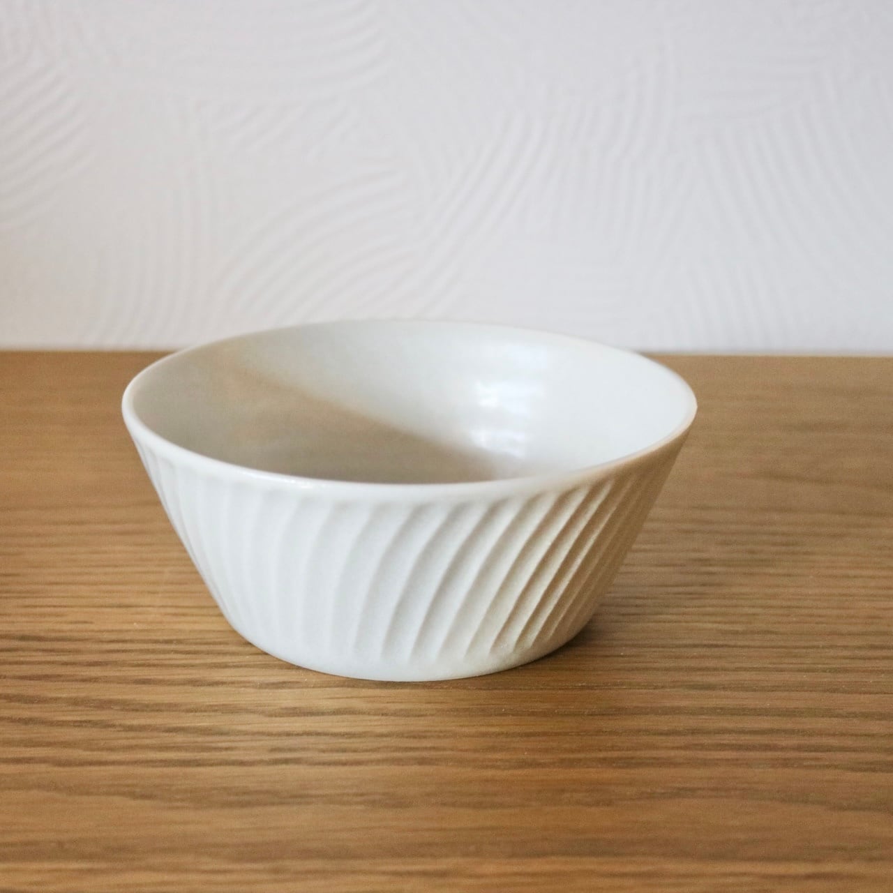 シノギ模様の流れるカーブの彫りが見られる中鉢 ”レイン フリーボウル″
