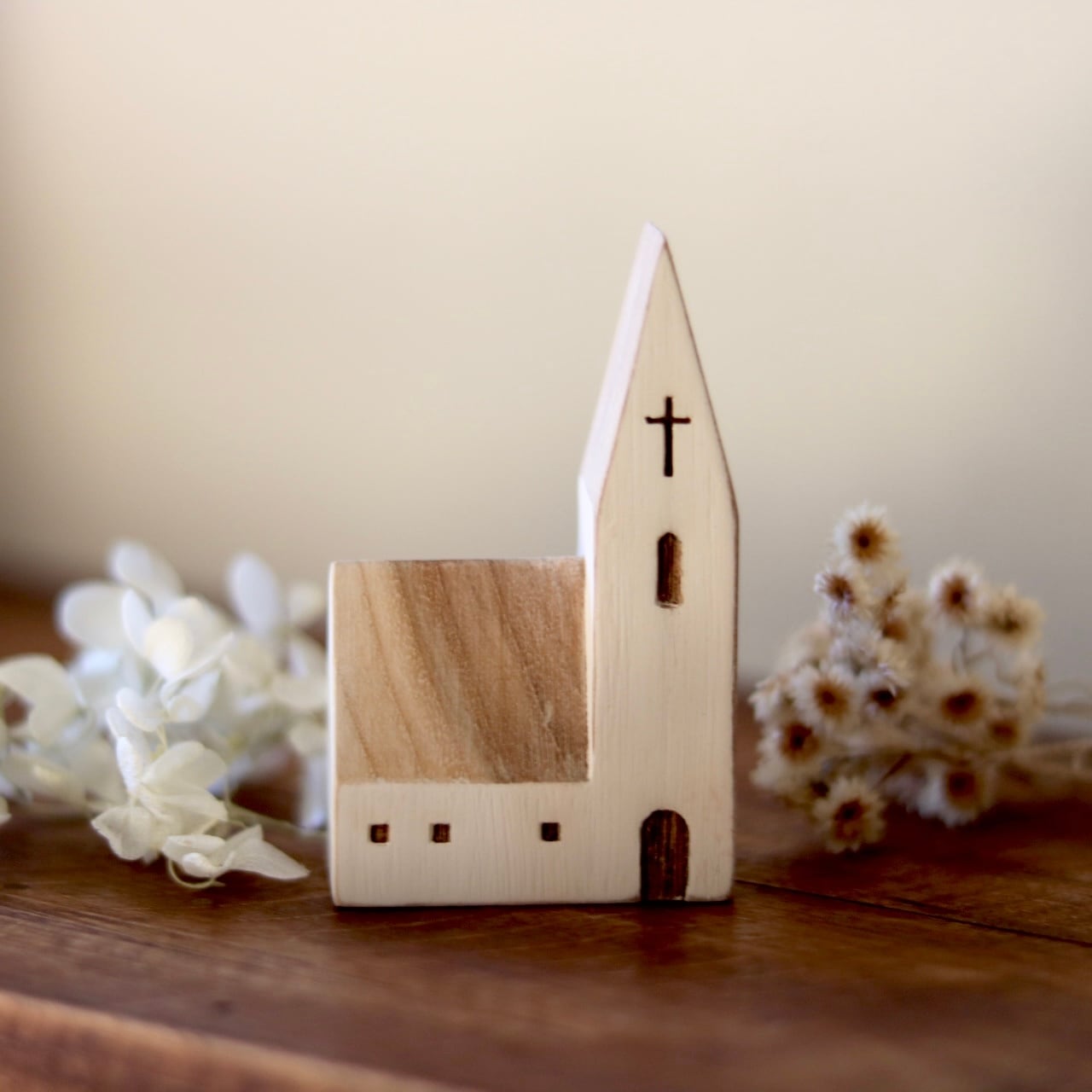 物語からでてきたような可愛らしいミニチュアチャペルは、小さくてもしっかり存在感があるオブジェ
