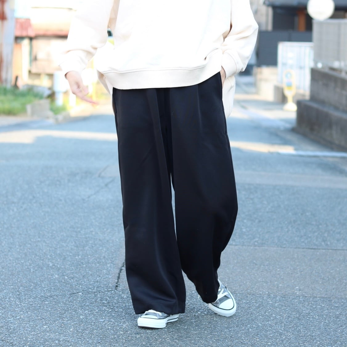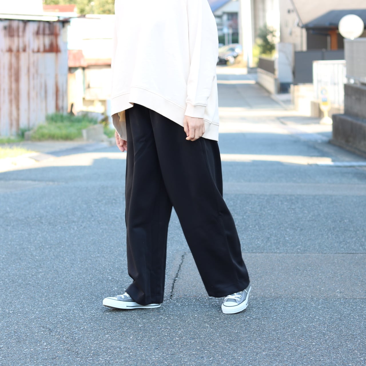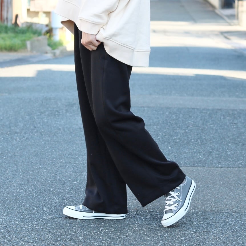 裾の内側の紐を絞ればシルエットが変化し、きれいめにもリラクシーにも着こなしを楽しめます。