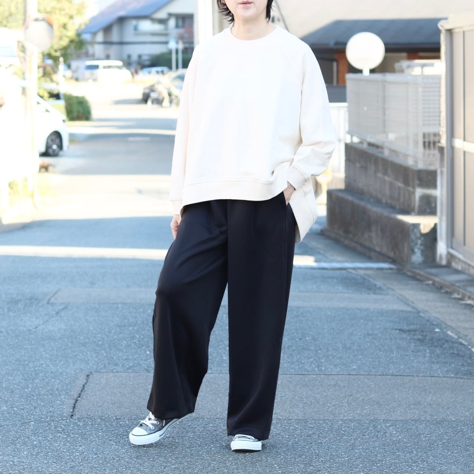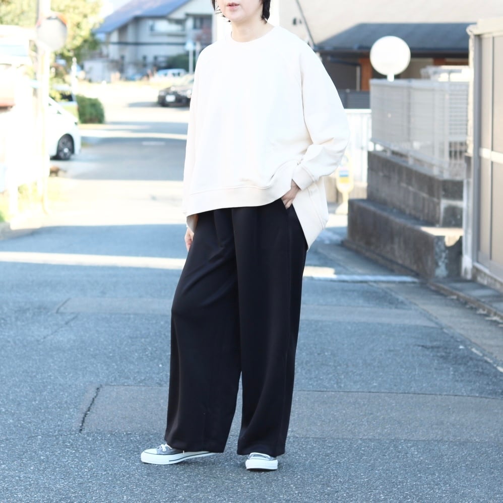 ポンチ生地はテロンとしたとろみのある生地です。落ち感があるため、着痩せ効果や女性らしいやわらかな印象を与えます。