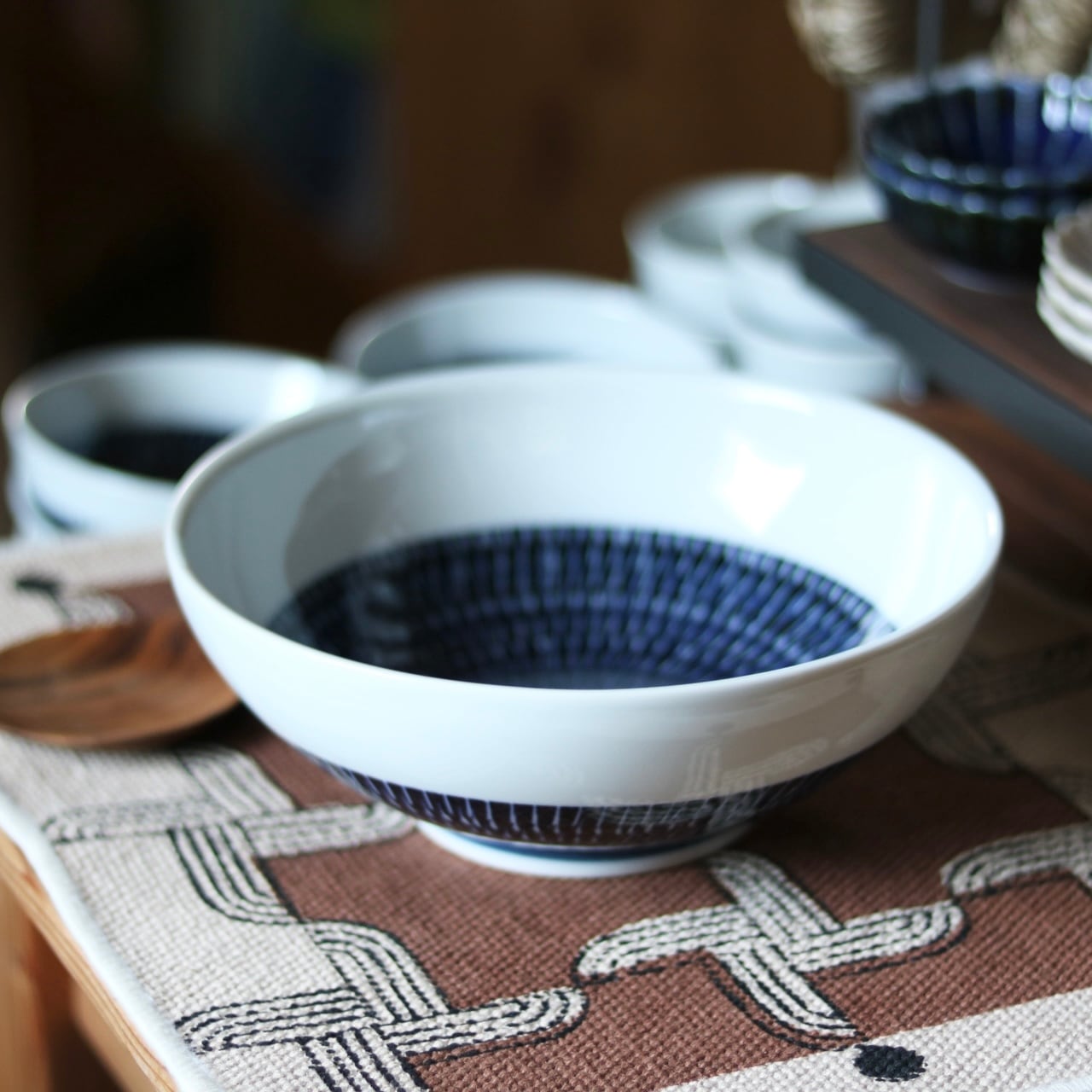 清潔感ある白色と、爽やかな藍色が素朴でありながらもモダンな雰囲気をつくり出し幅広いお料理に合います。