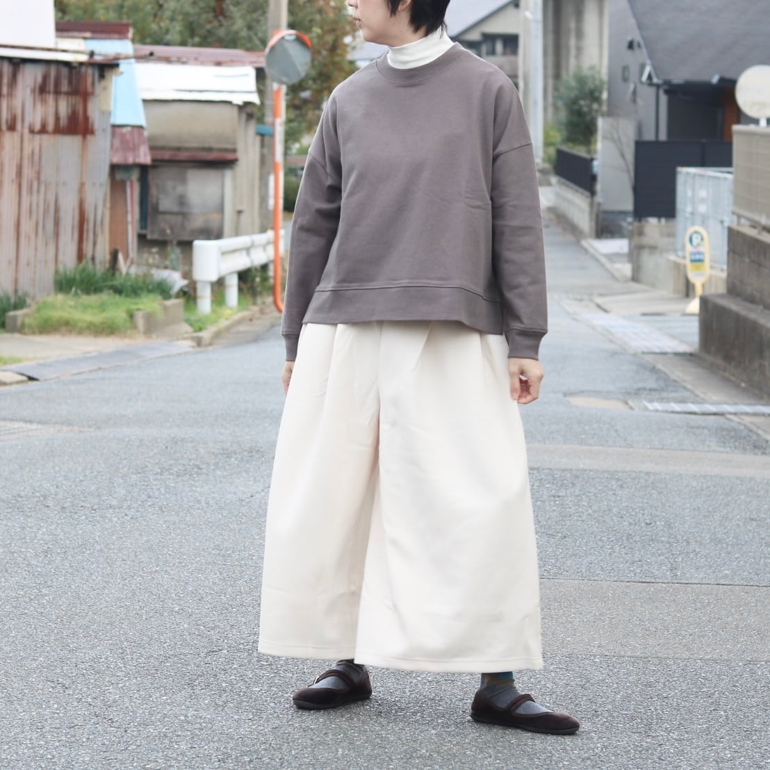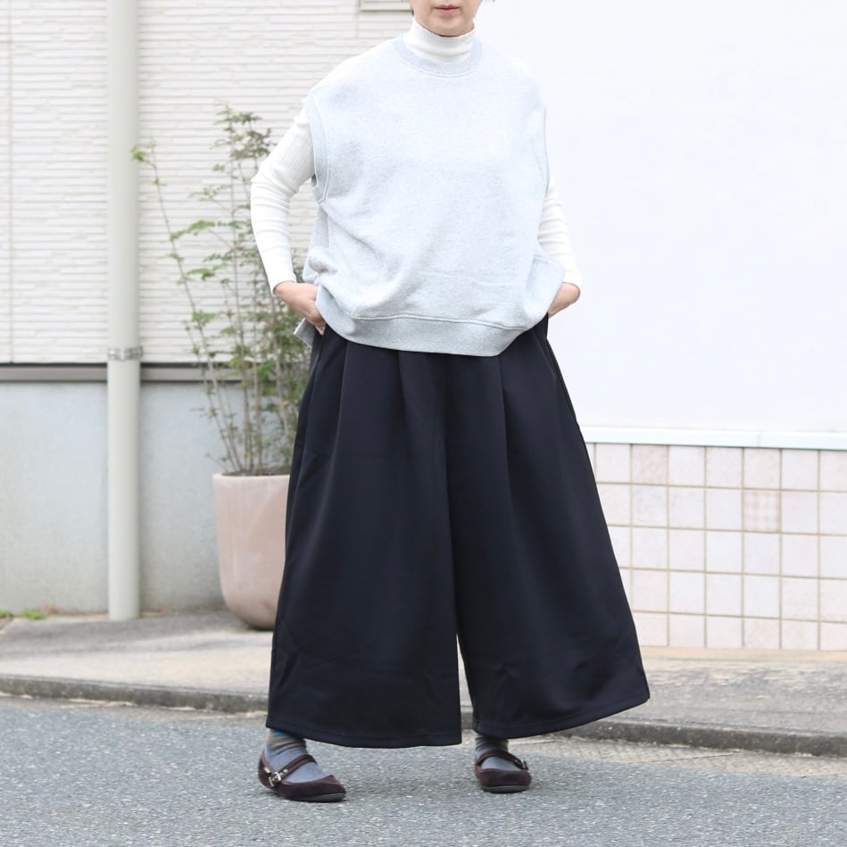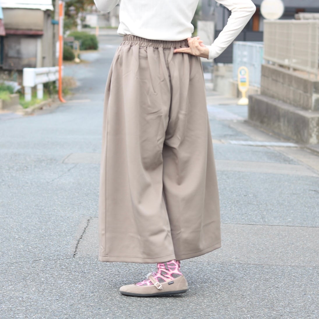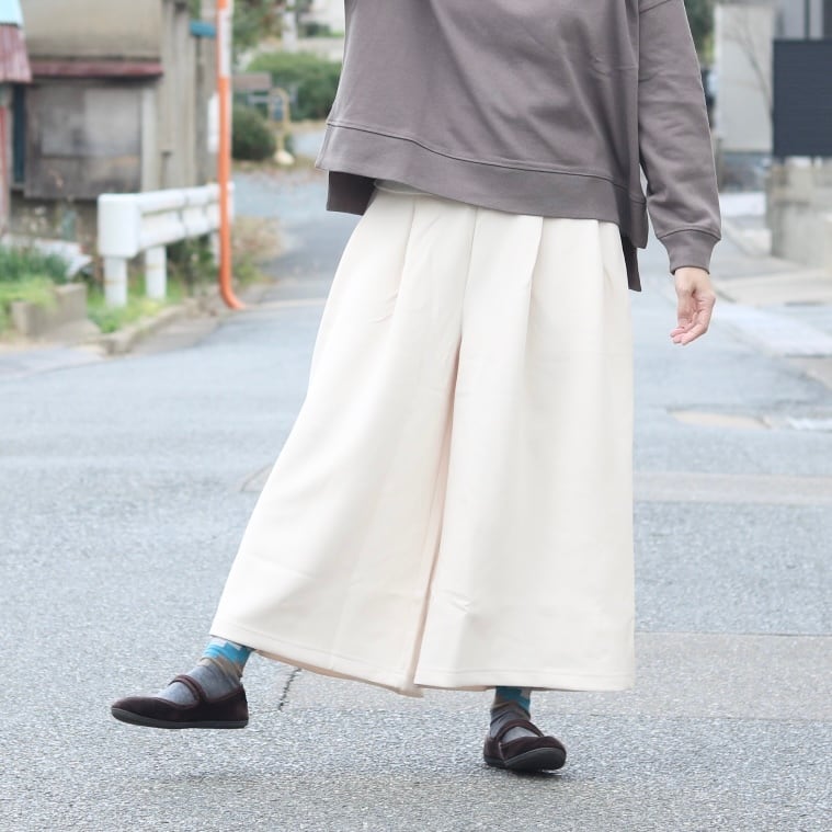 ガウチョパンツにも見えるポンチ素材のスカーチョ