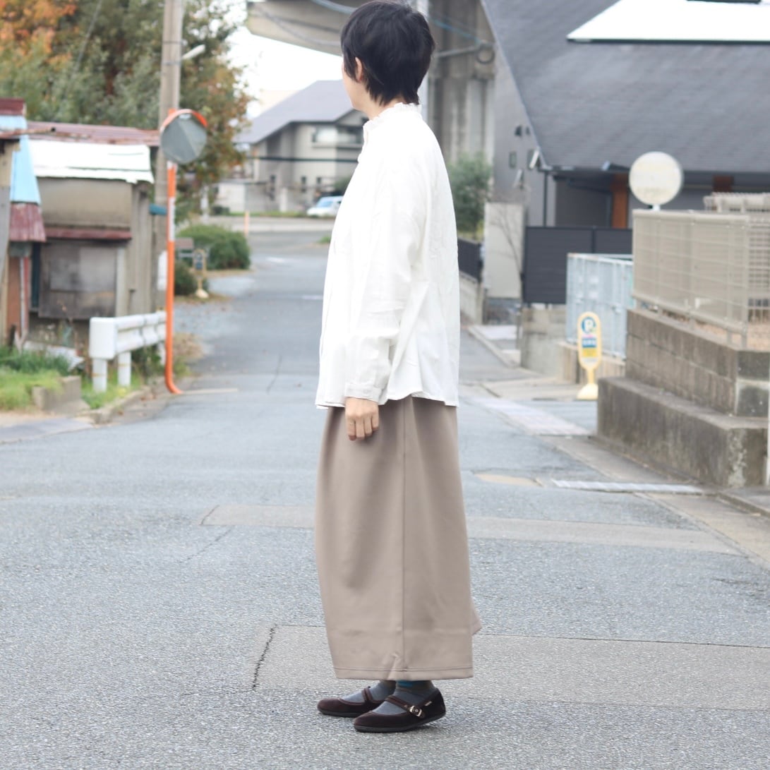 ポンチ生地はテロンとしたとろみのある生地です。落ち感があるため着痩せ効果や、やわらかな印象を与えます。