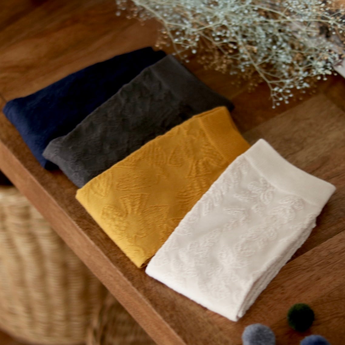 ※使用している糸の違いにより、デザイン毎に生地の厚みや、かかとからつま先の長さが多少異なる場合がございます。