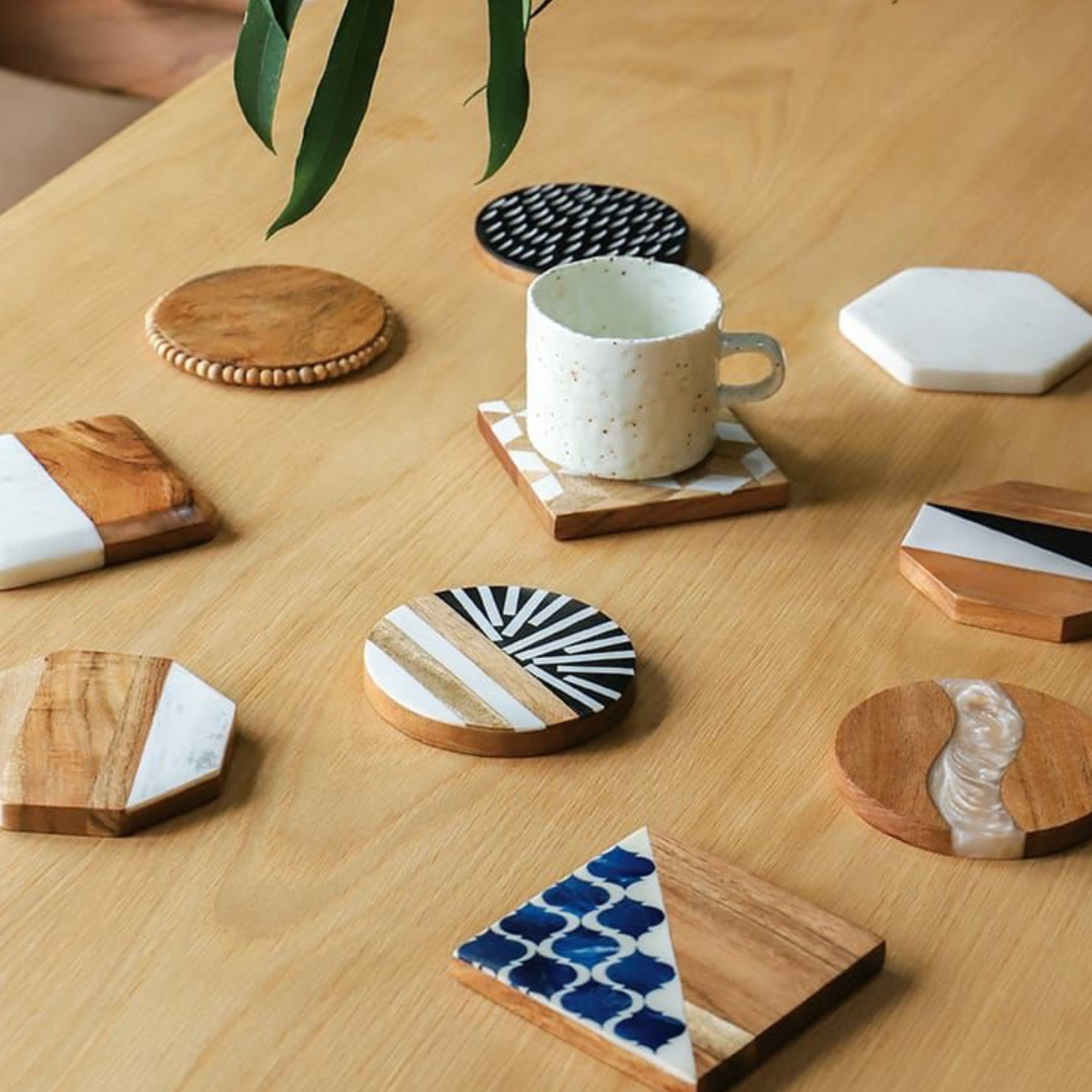 コースターは種類によって重量が異なります。大理石を使用している「ニラス」と「クークル」はとても重みがあります。ご購入の参考にされてください。