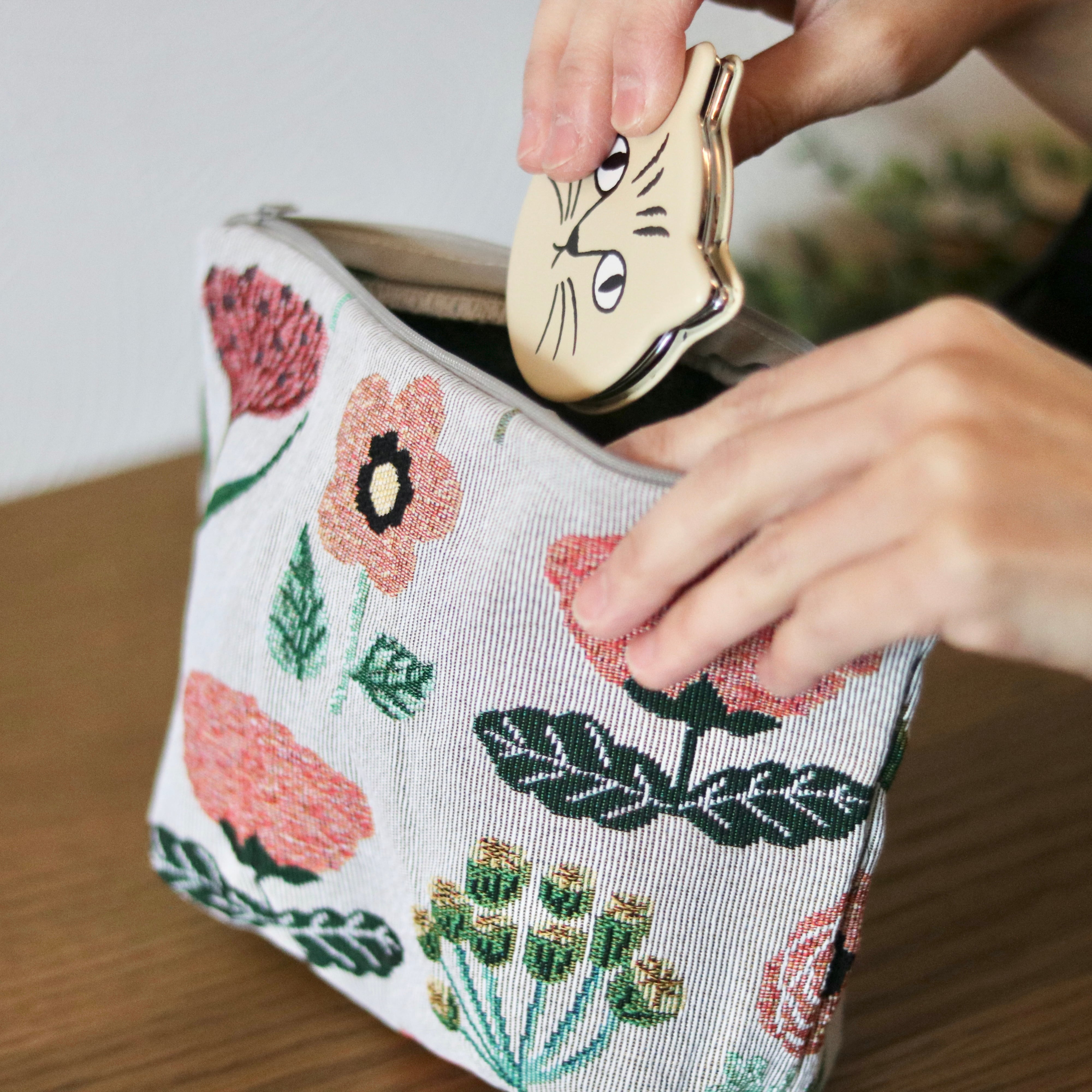 松尾ミユキさんの描く お花が織り込まれたゴブラン素材のポーチ