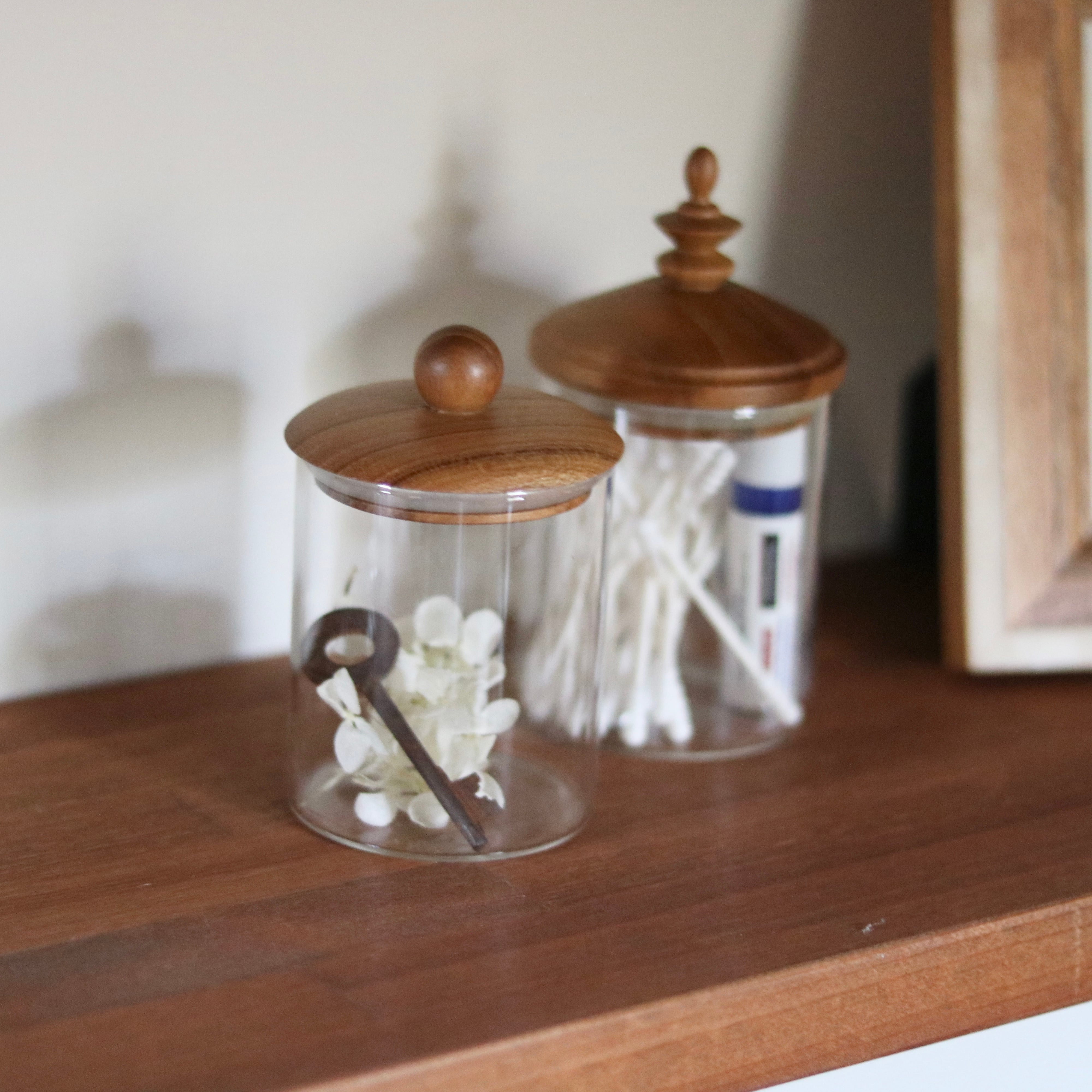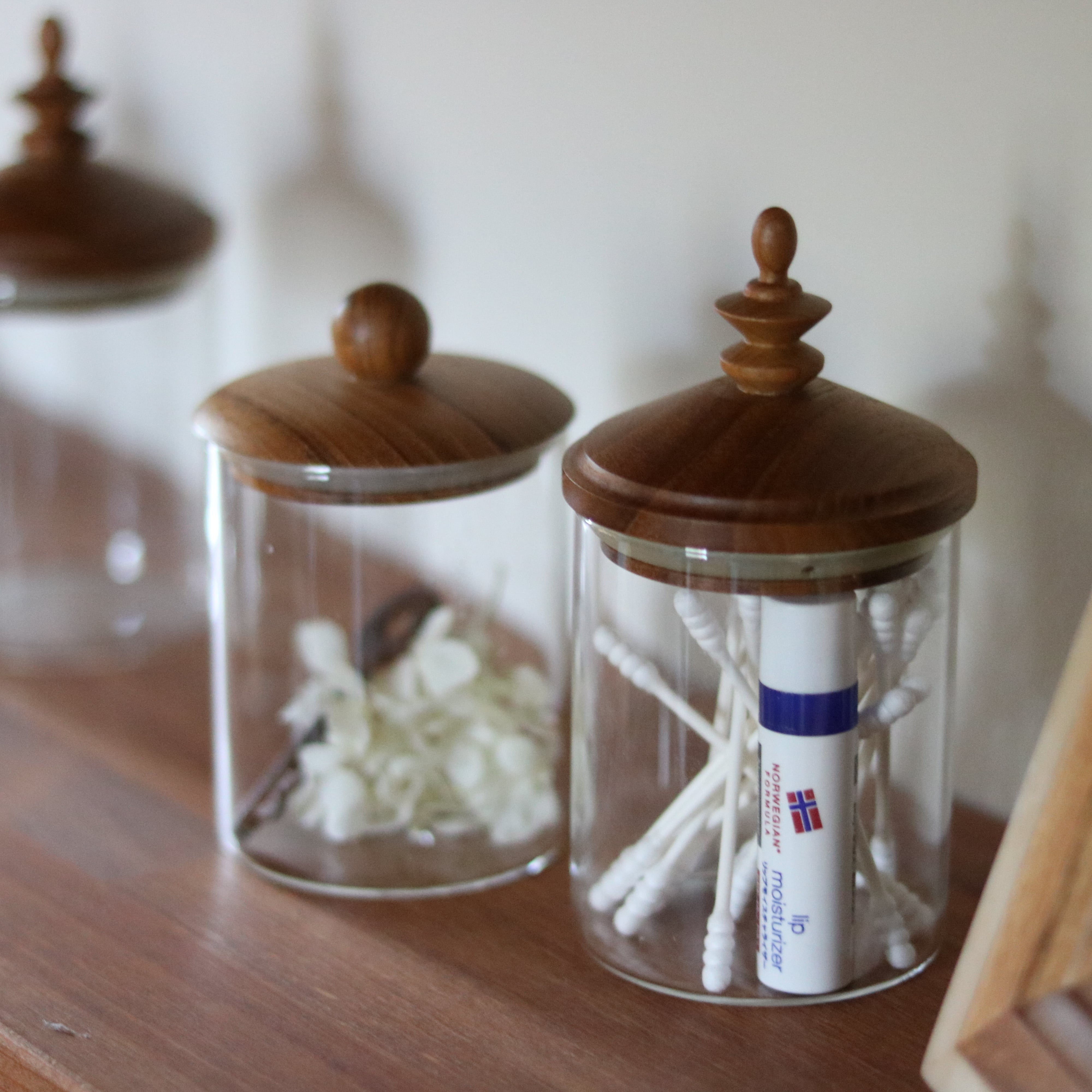 チークの蓋が優しい印象を与え、キャビネットや洗面台、ドレッサーまわりを上品に演出します。