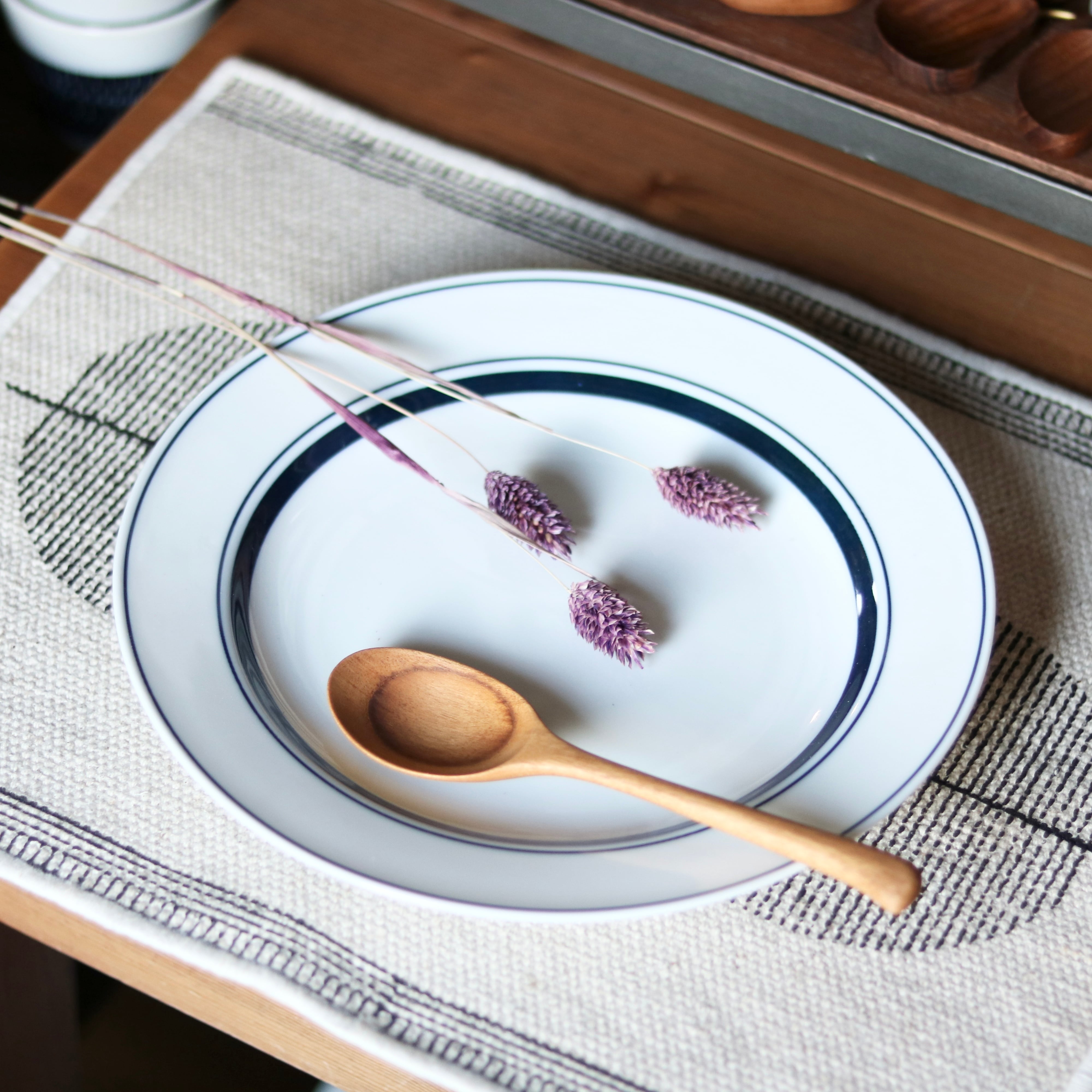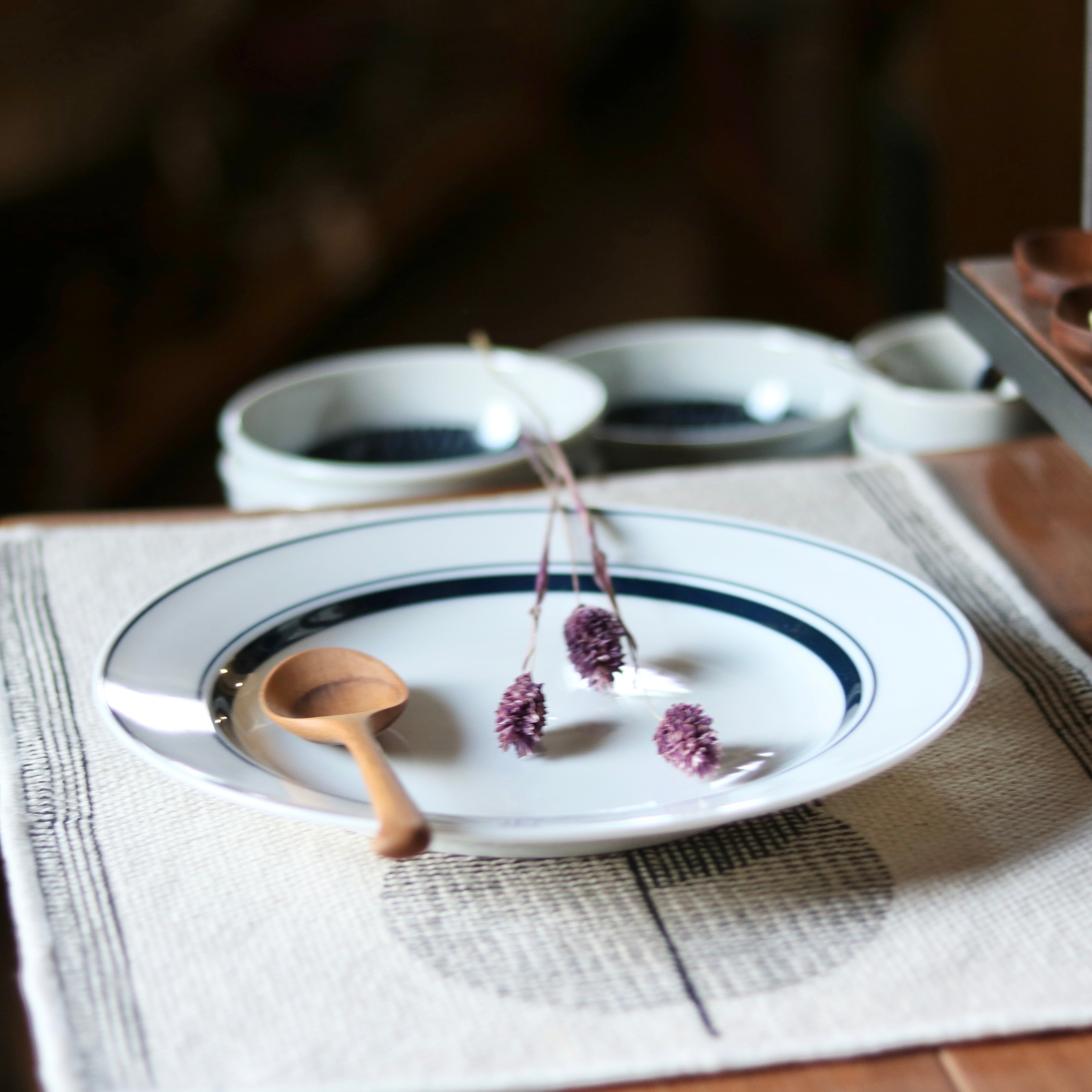 真っ白なお皿にブルーのラインが際立つ清潔な印象のシエル