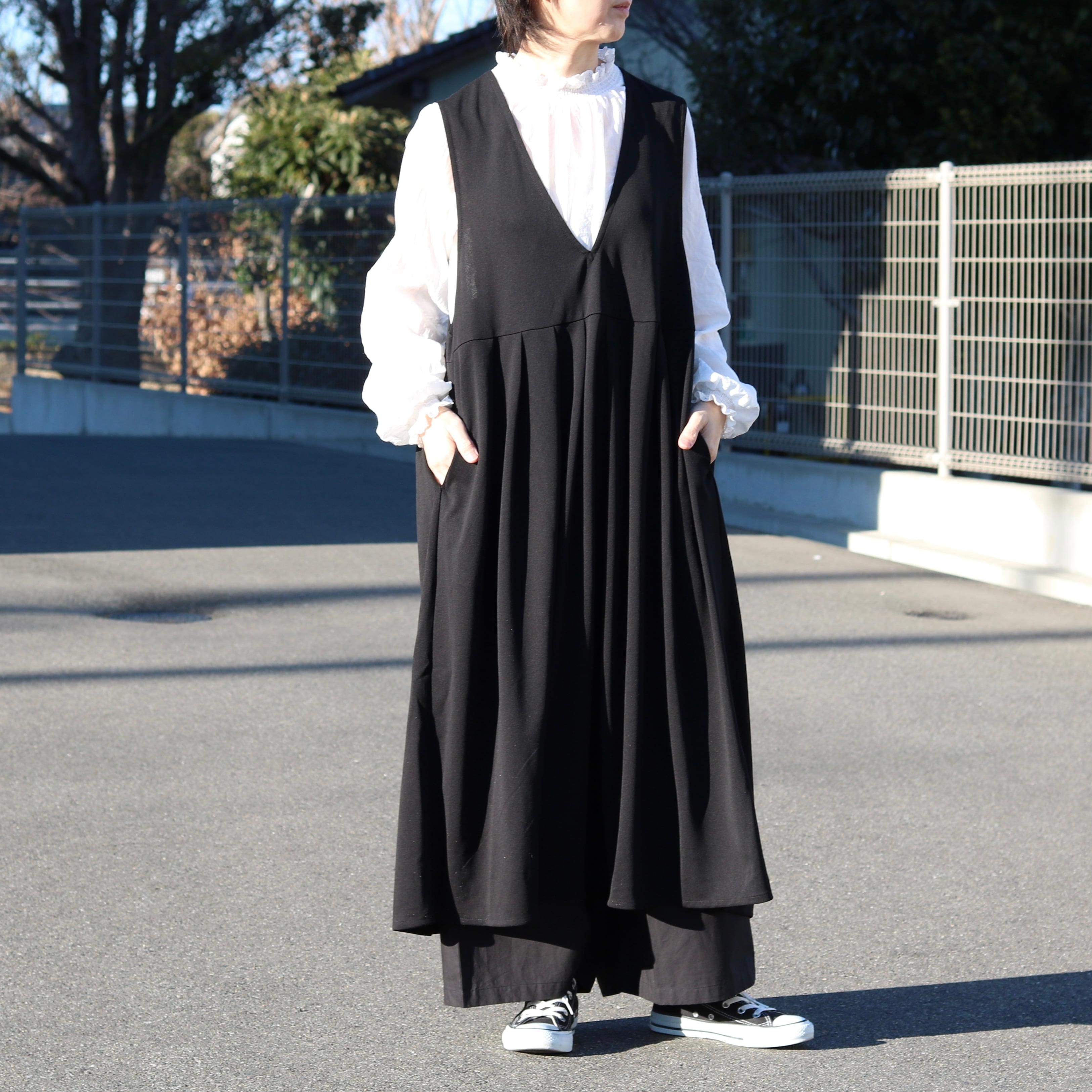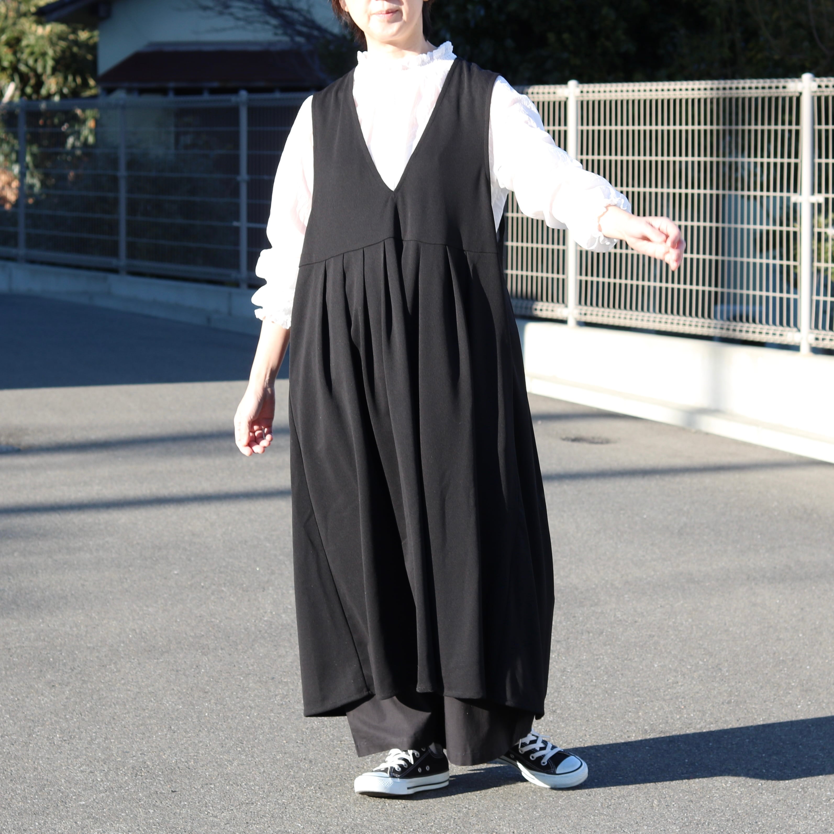 カットジョーゼット Vネックワンピース