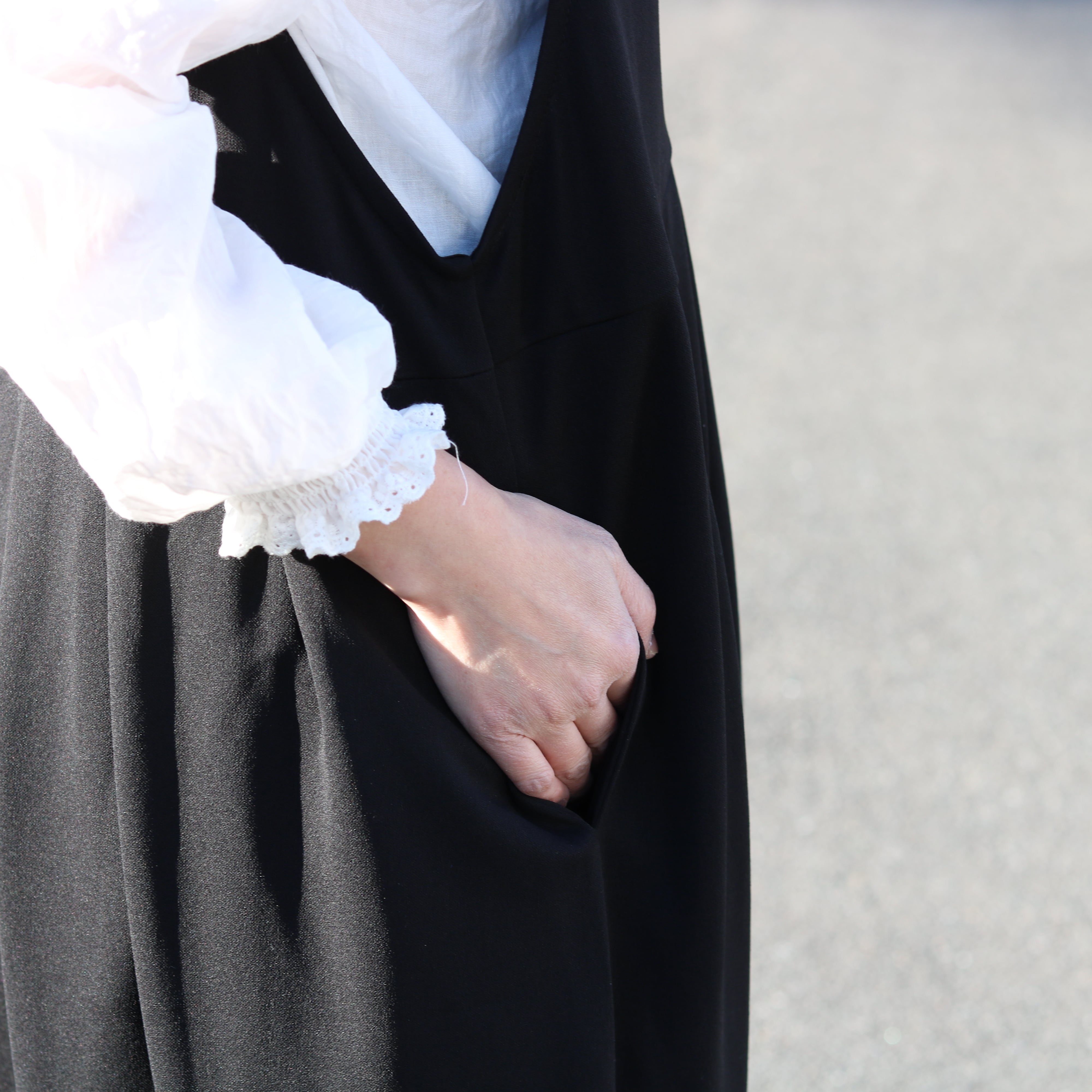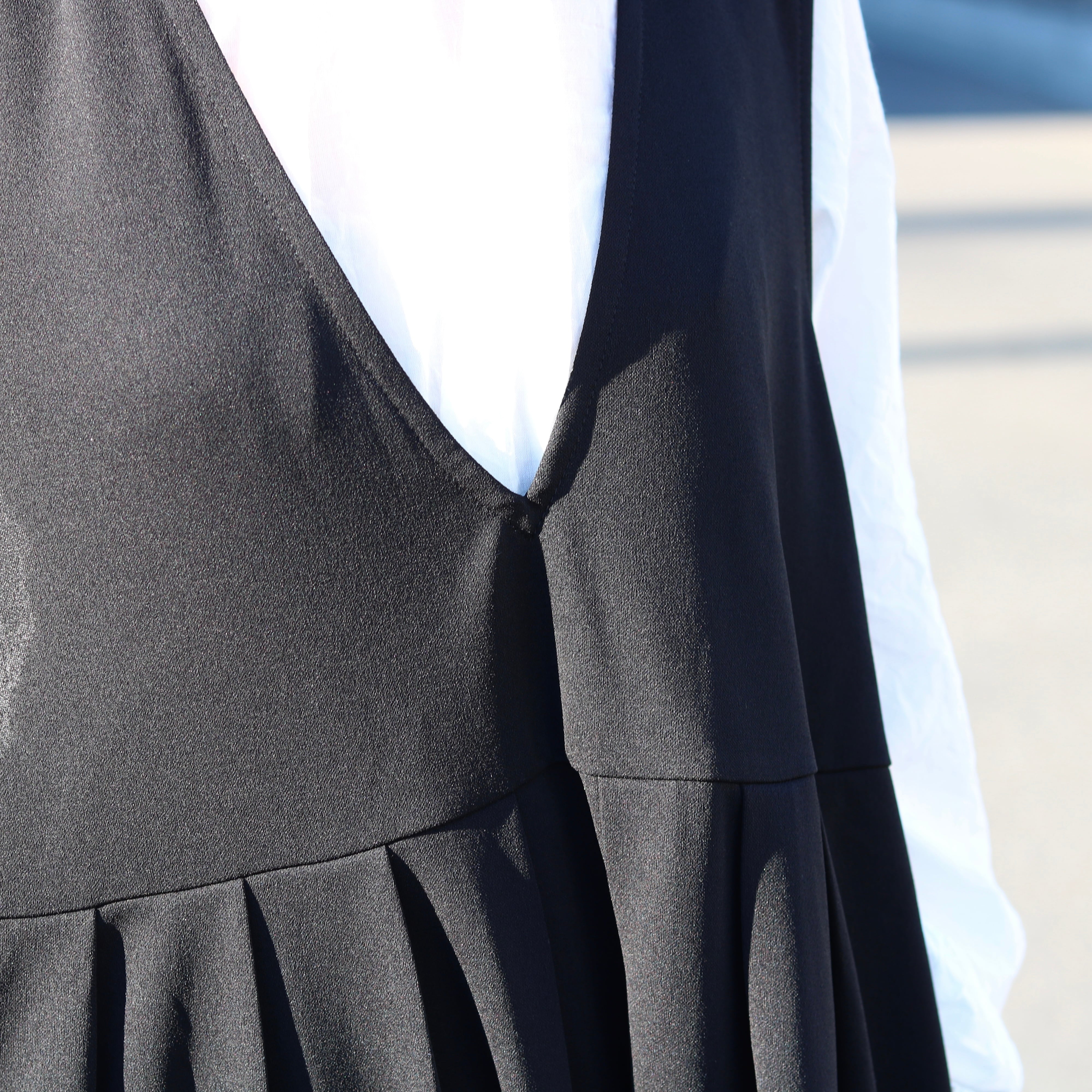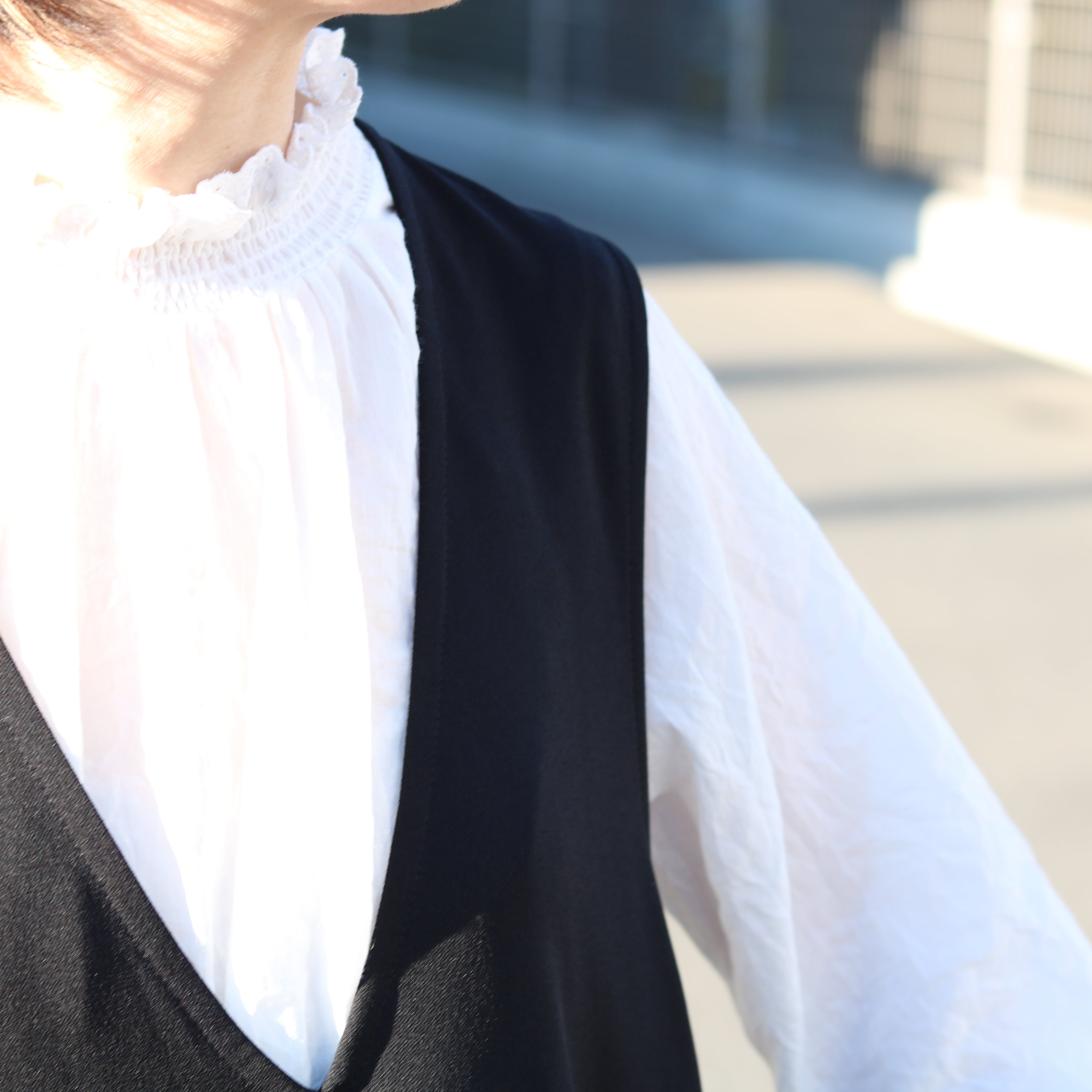 伸びが良い素材のカットジョーゼットは、深めのVネックで顔周りをスッキリ見せてくれます。
