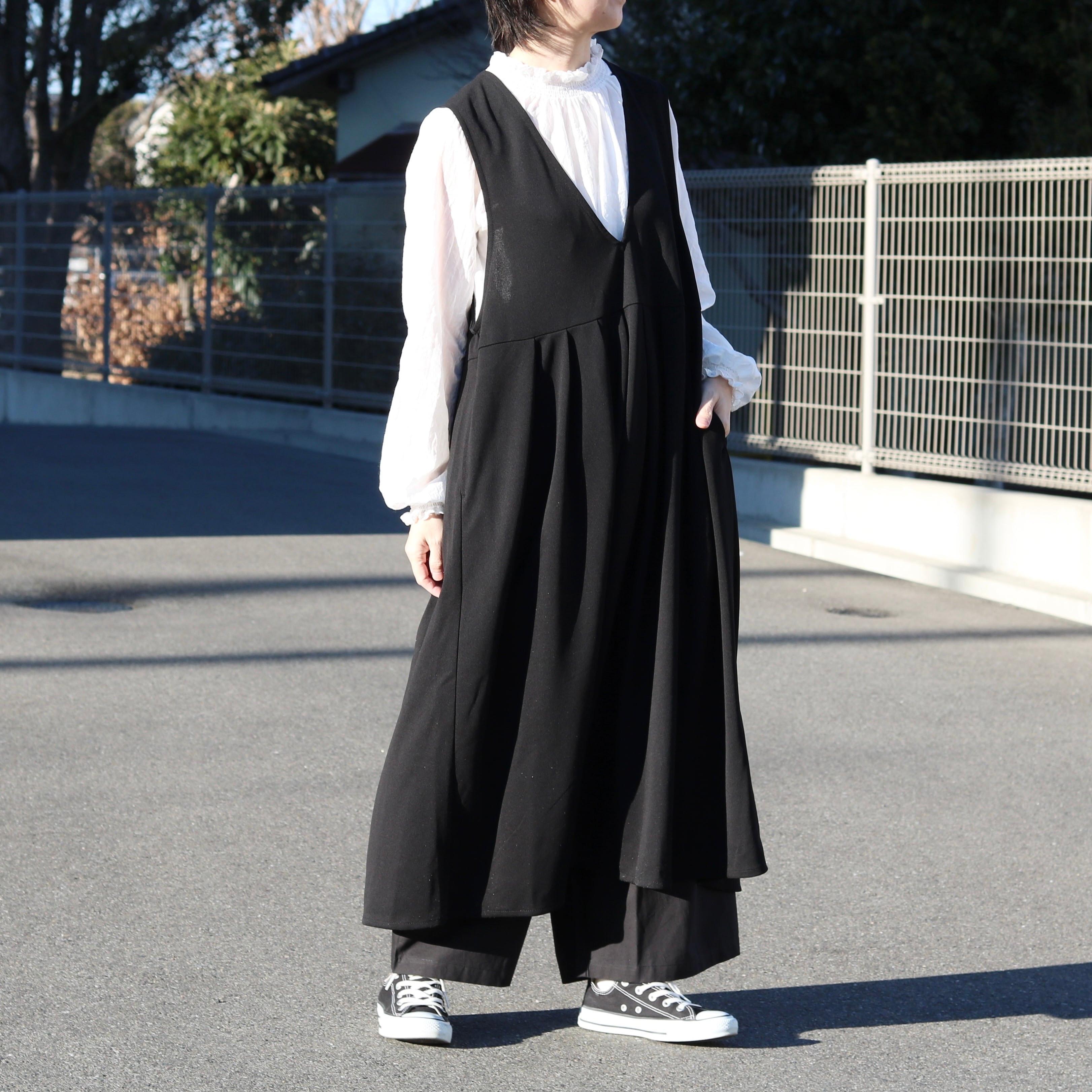 インナーには、シャツやブラウス、ニットやタートルネックなど、どんなアイテムにも合わせやすくコーディネートも楽しくなりそう。