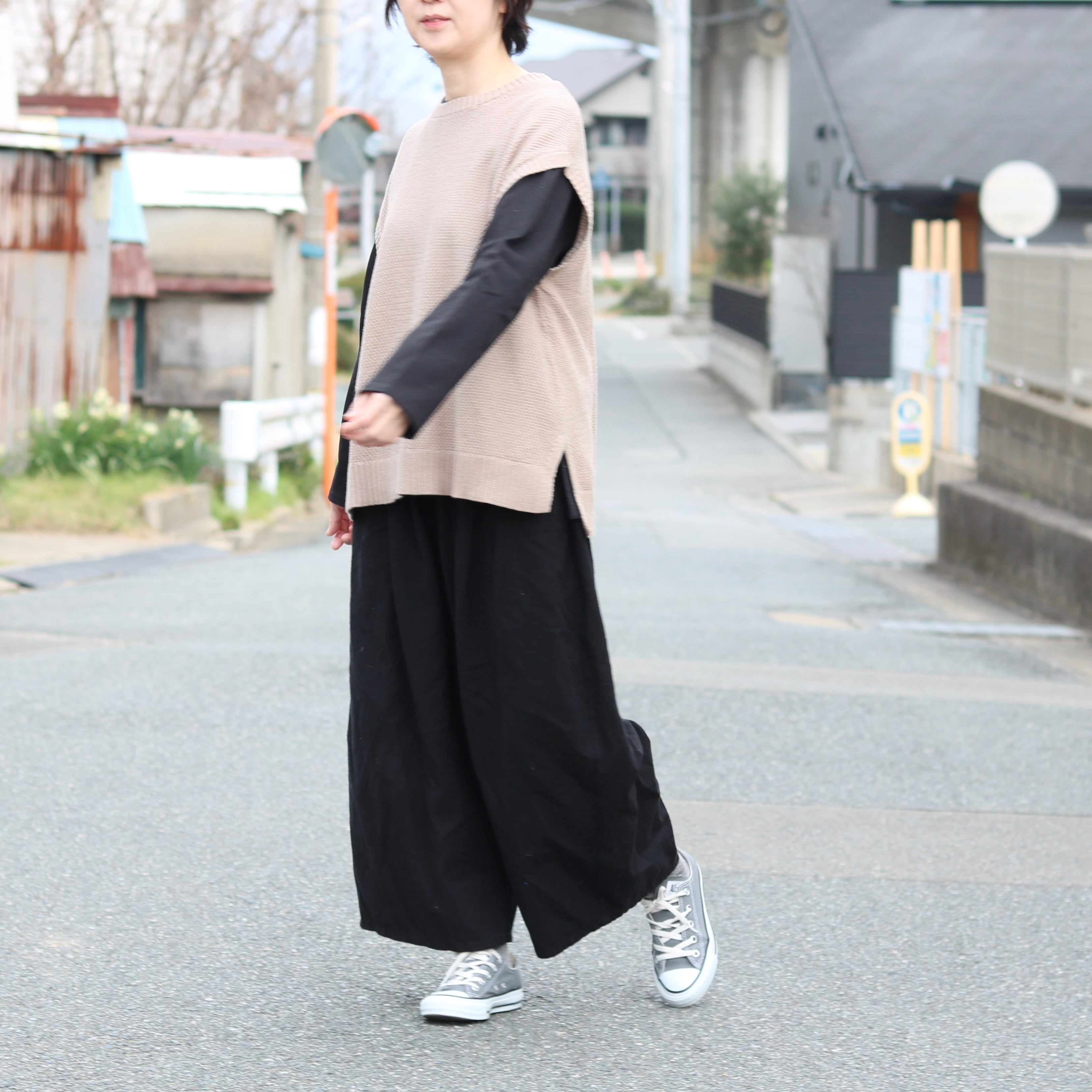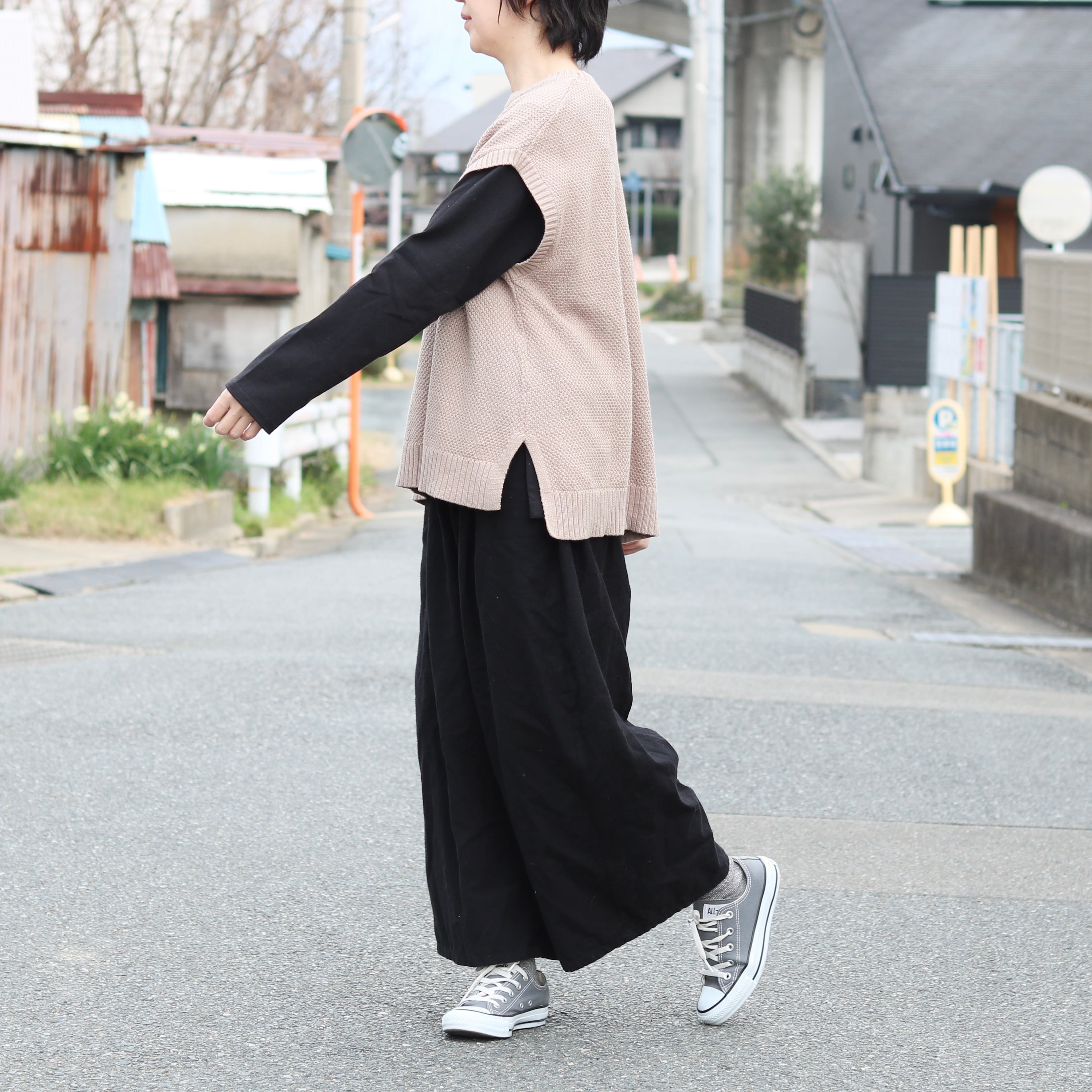 サイドにスリットが入っており、インナーとの重ね着も相性が良くコーディネートも合わせやすいです。