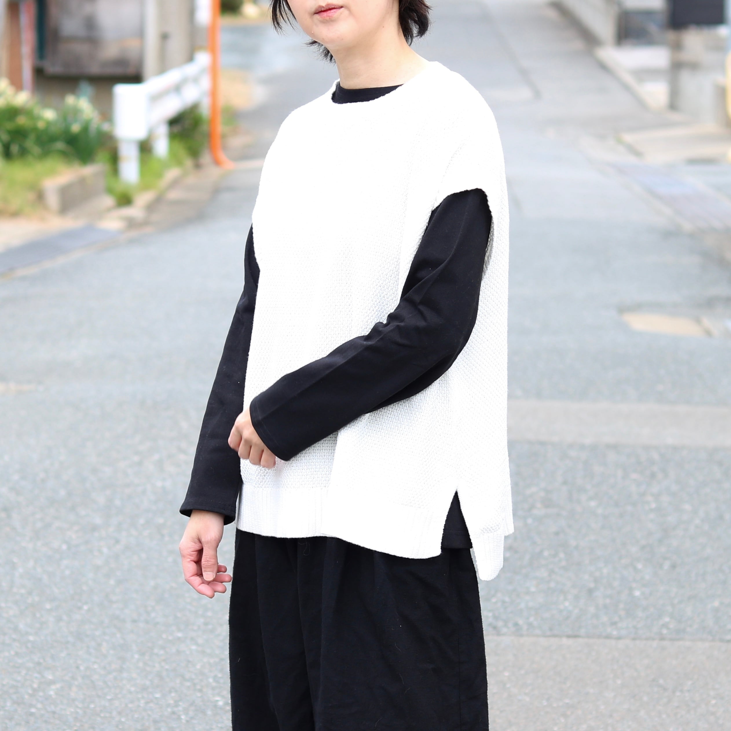 鹿の子編み特有の凸凹のある模様がかわいいベストです。