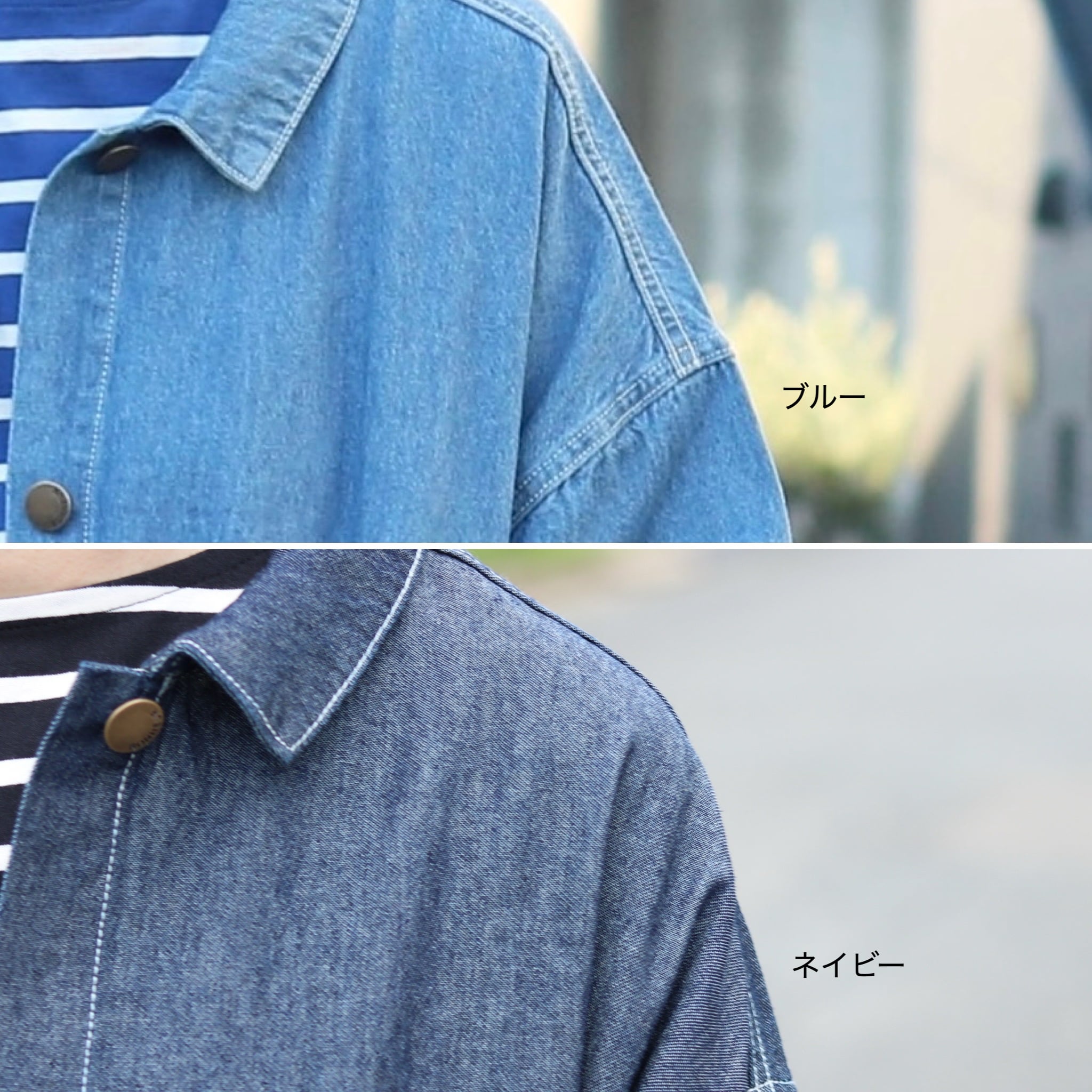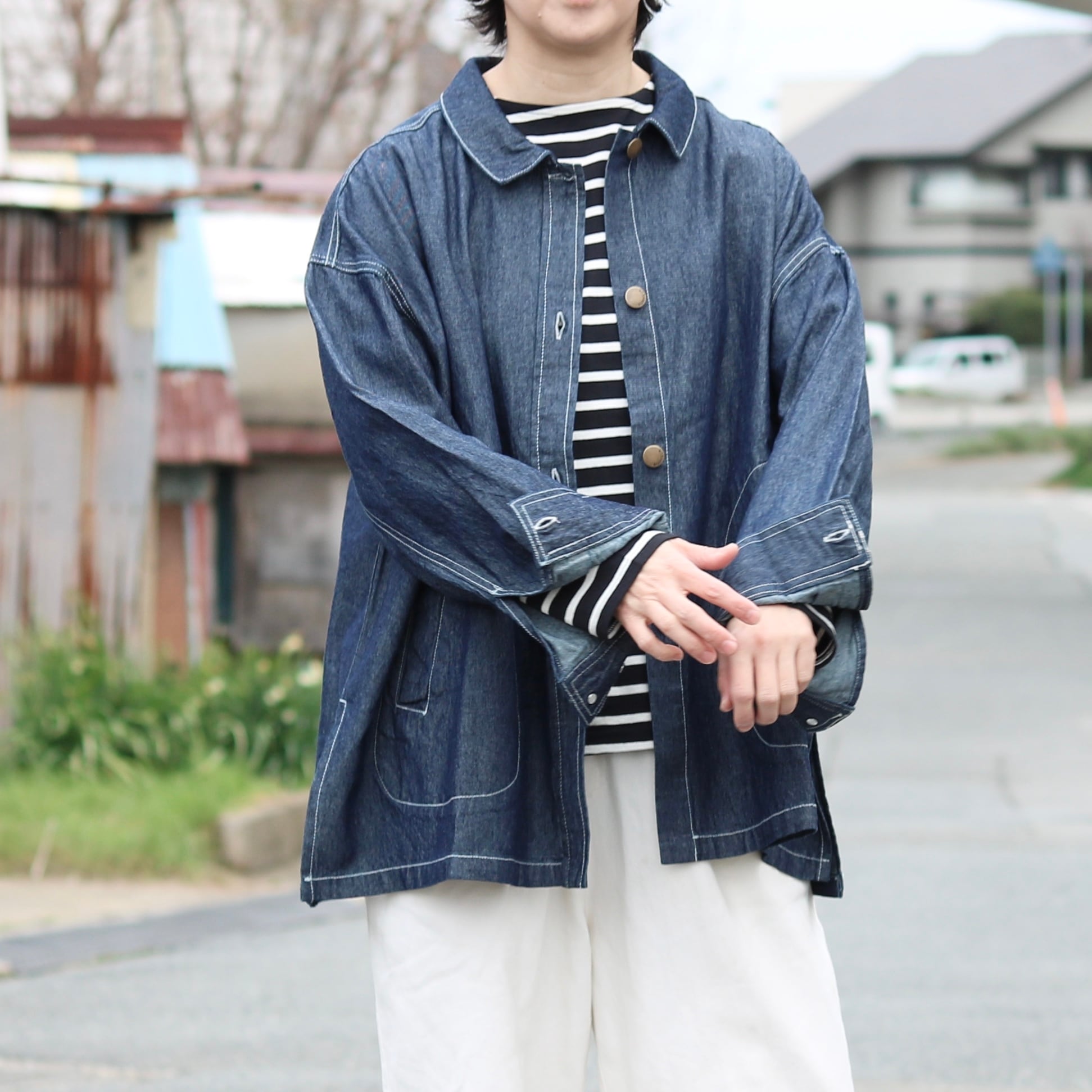 少し薄手の生地のコットンデニムジャケットは、ごわつかずにさらっと着用できます。
