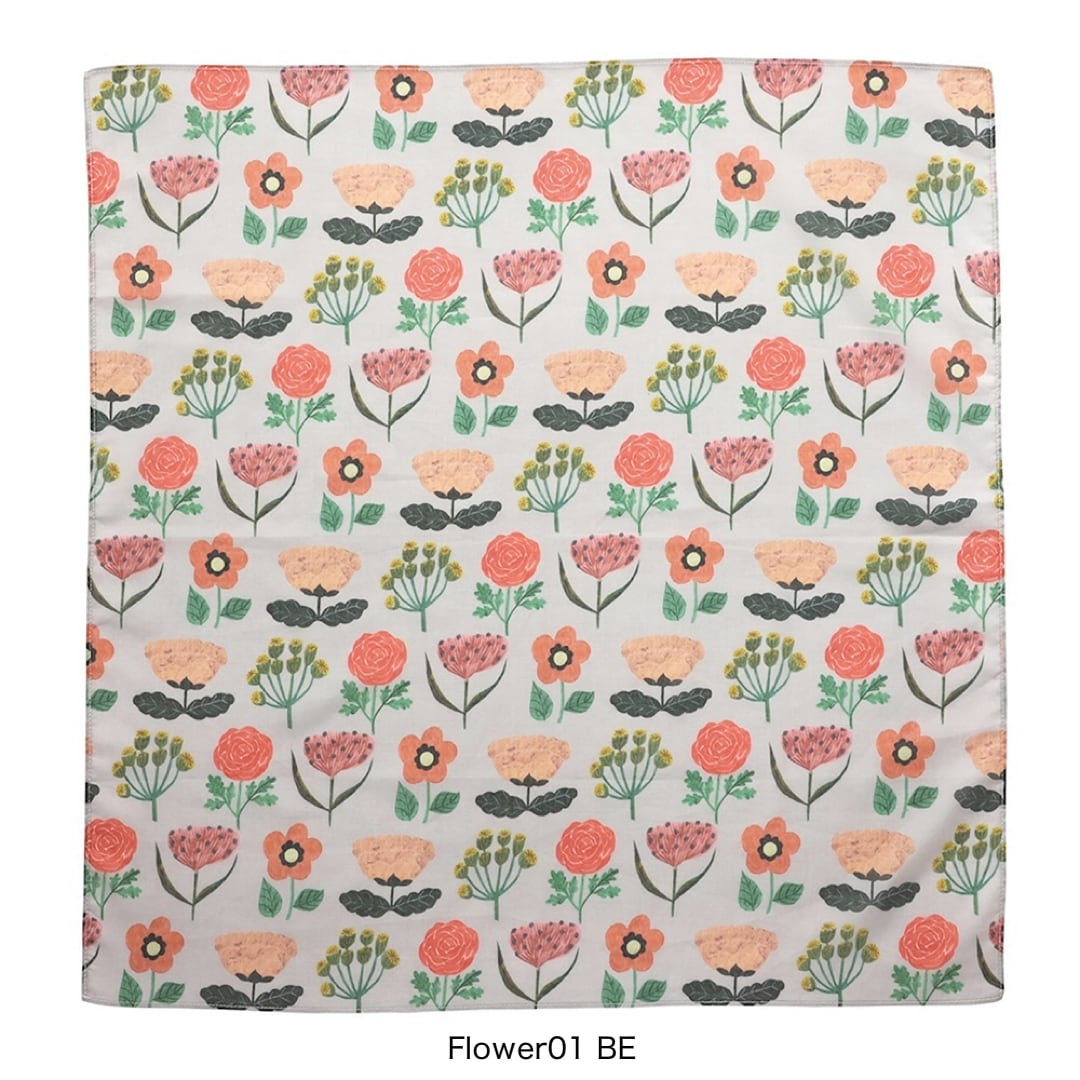 優しくあたたかなお花が並ぶ大判のハンカチです。