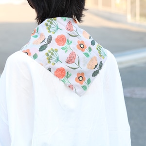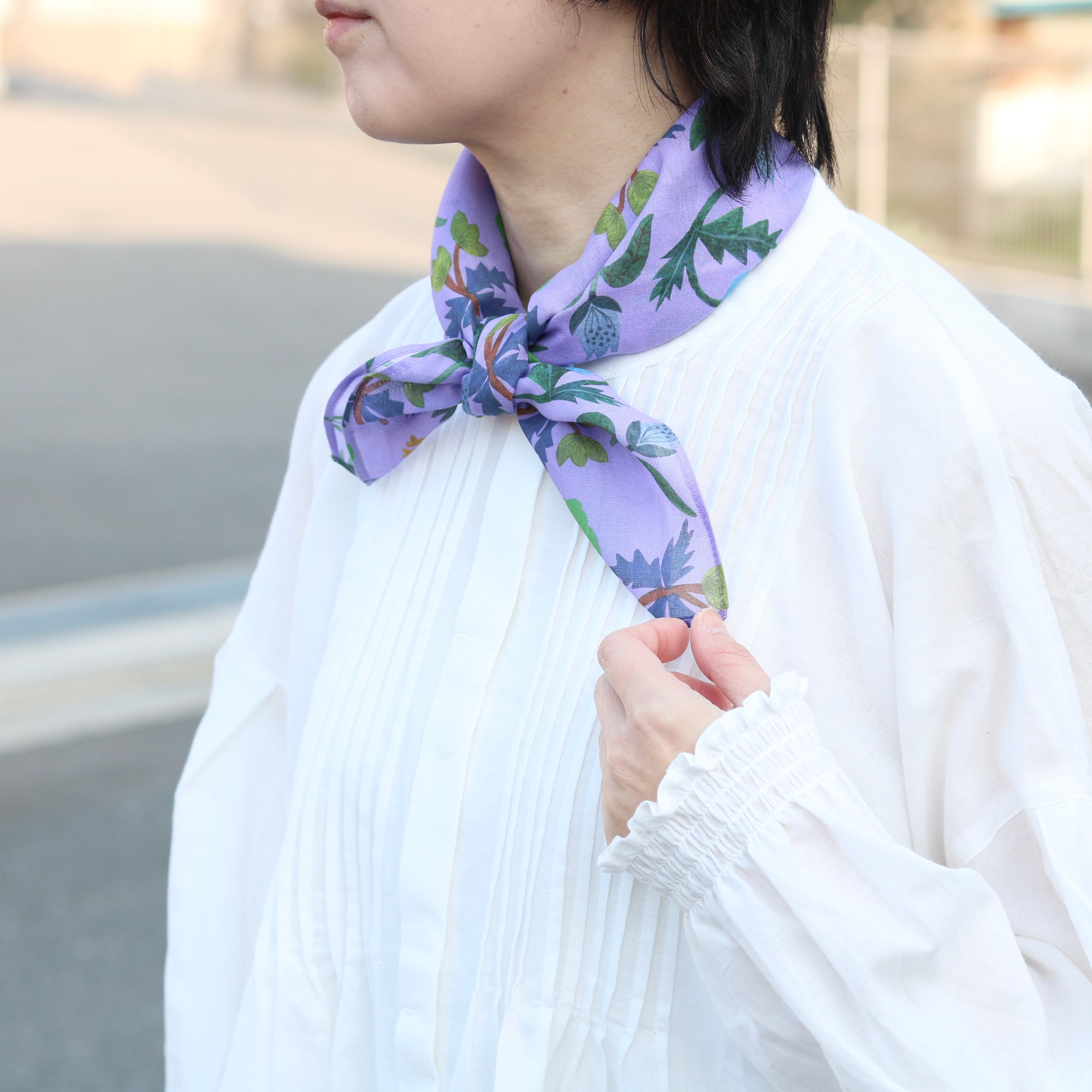 60×60cmのゆったりスカーフサイズですので、ハンカチとしてはもちろん、ミニスカーフ、お弁当包みやバッグの目隠しにしたり、ちょっとしたクロス代わりにも使えます。