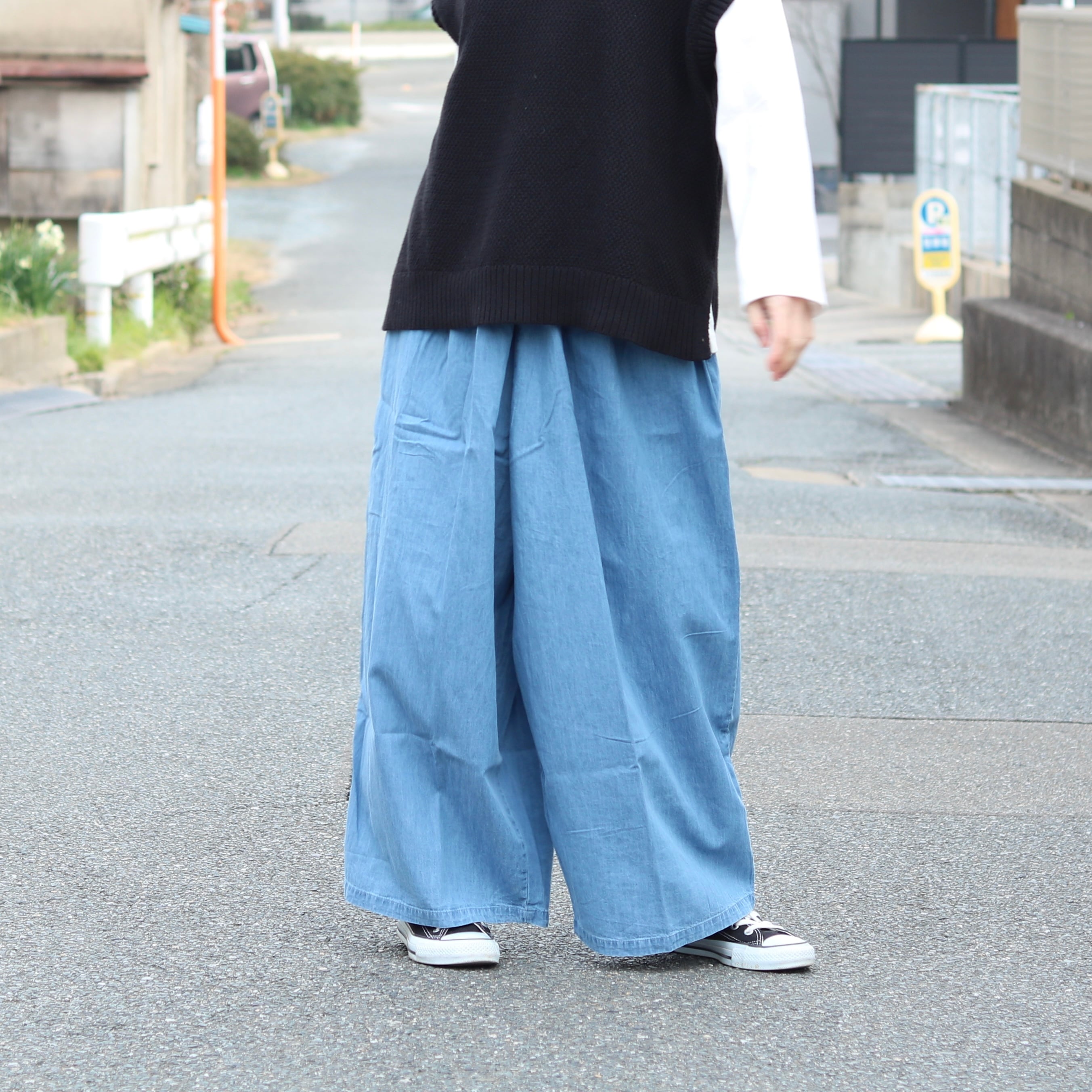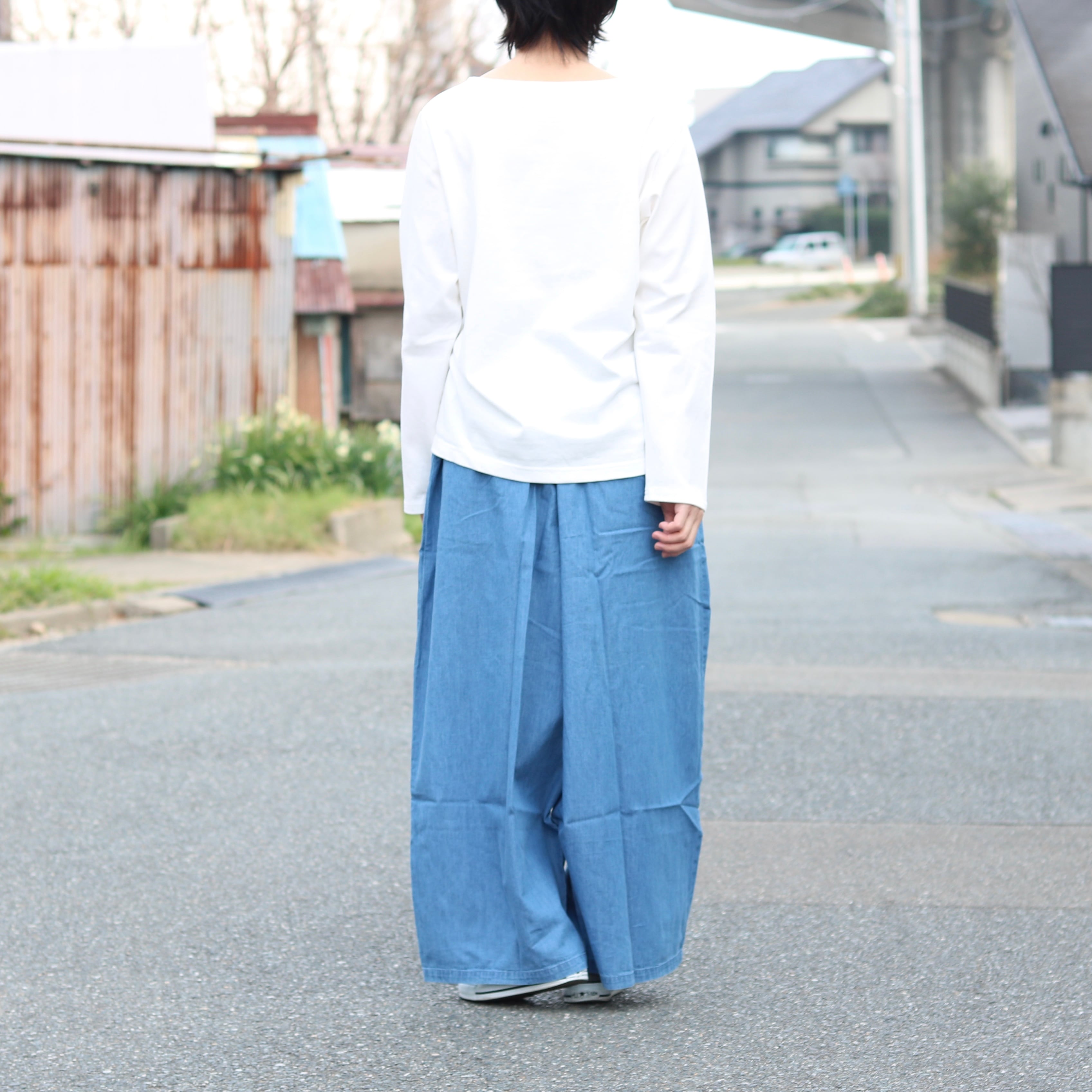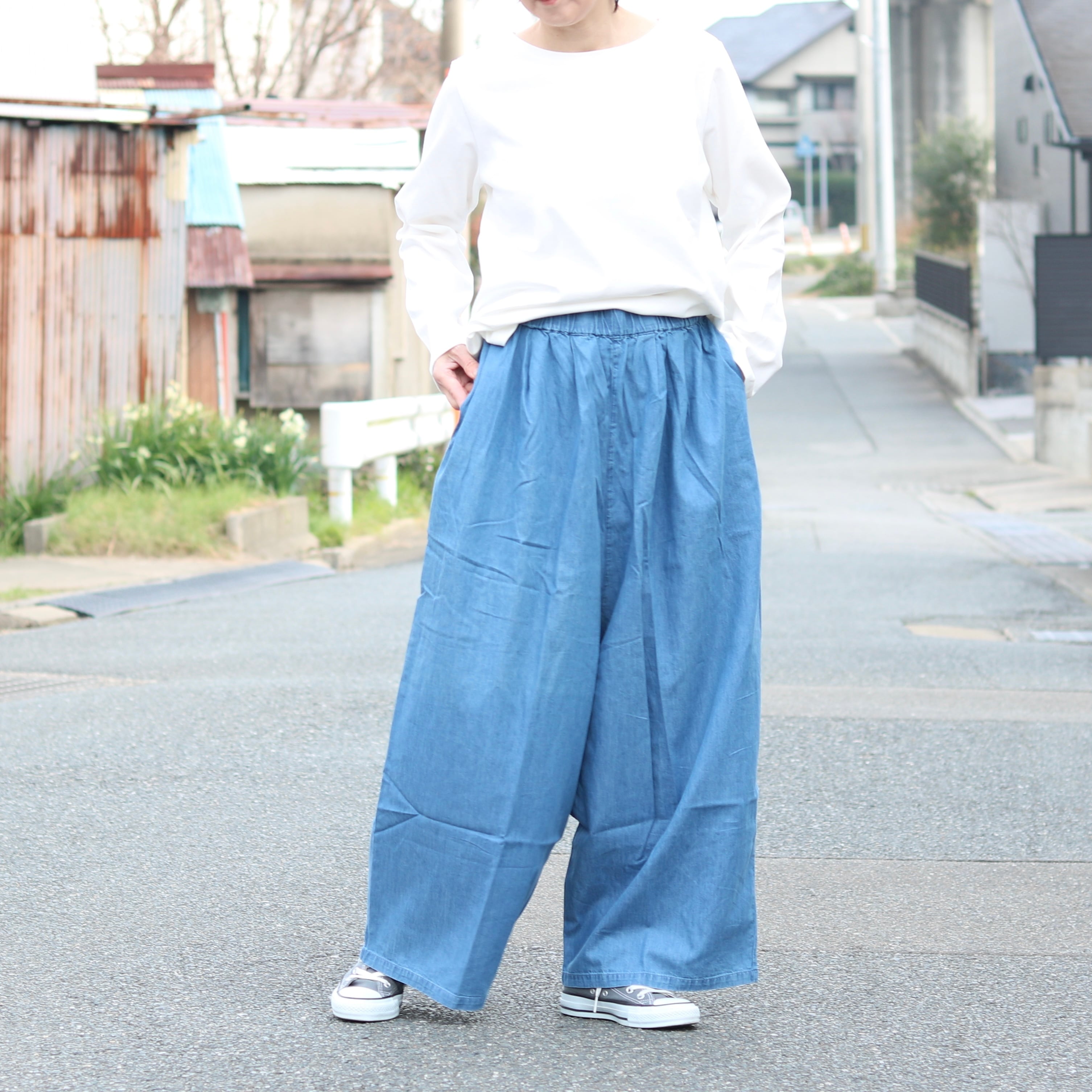 デニム タック ワイドパンツ