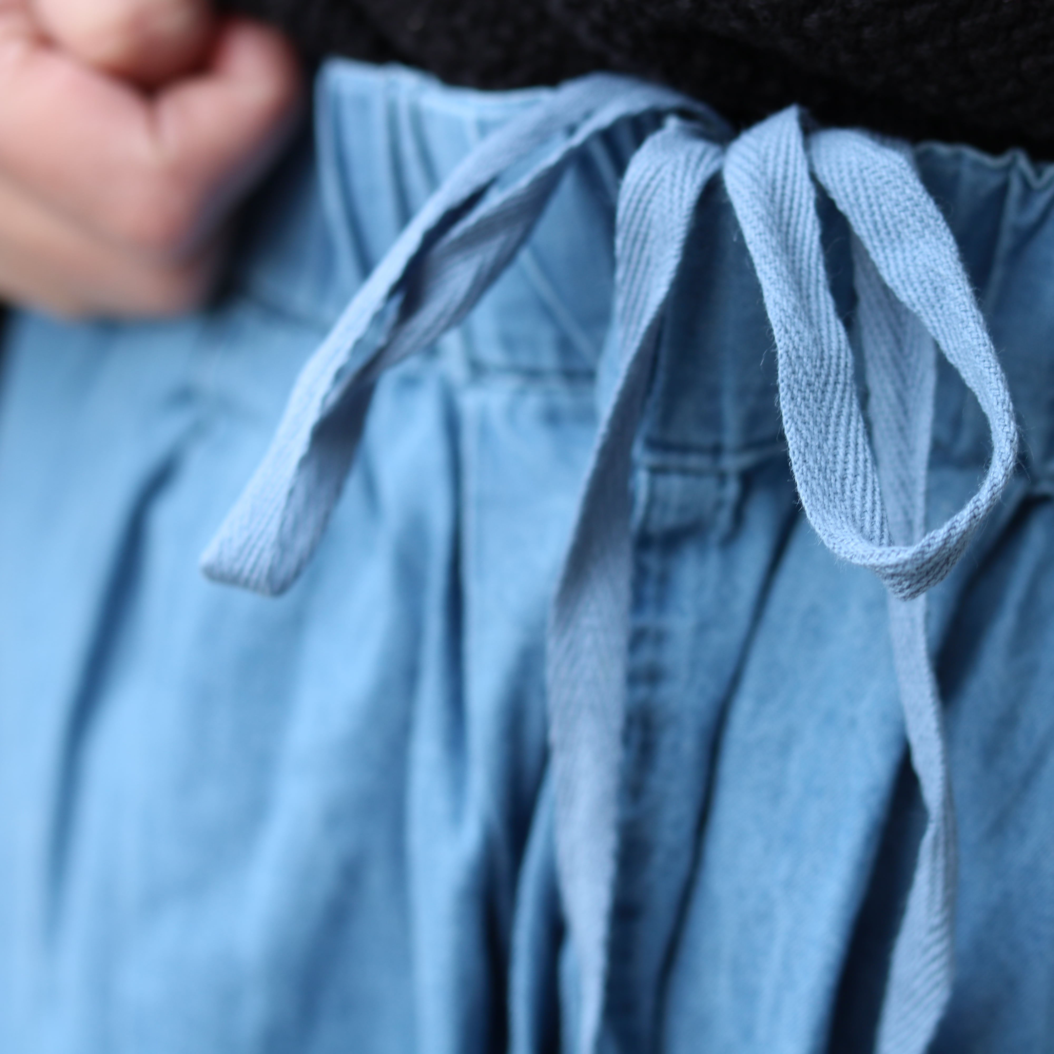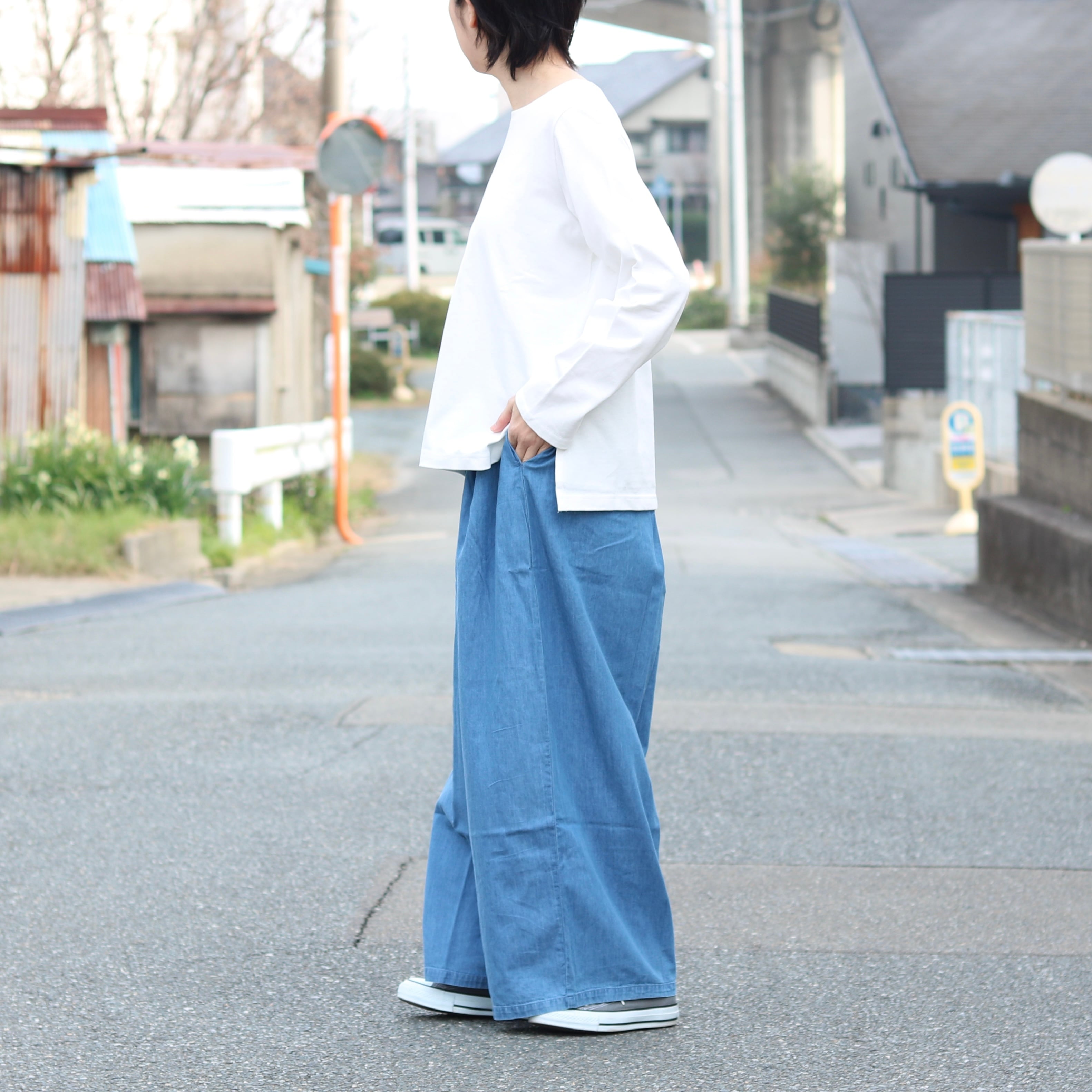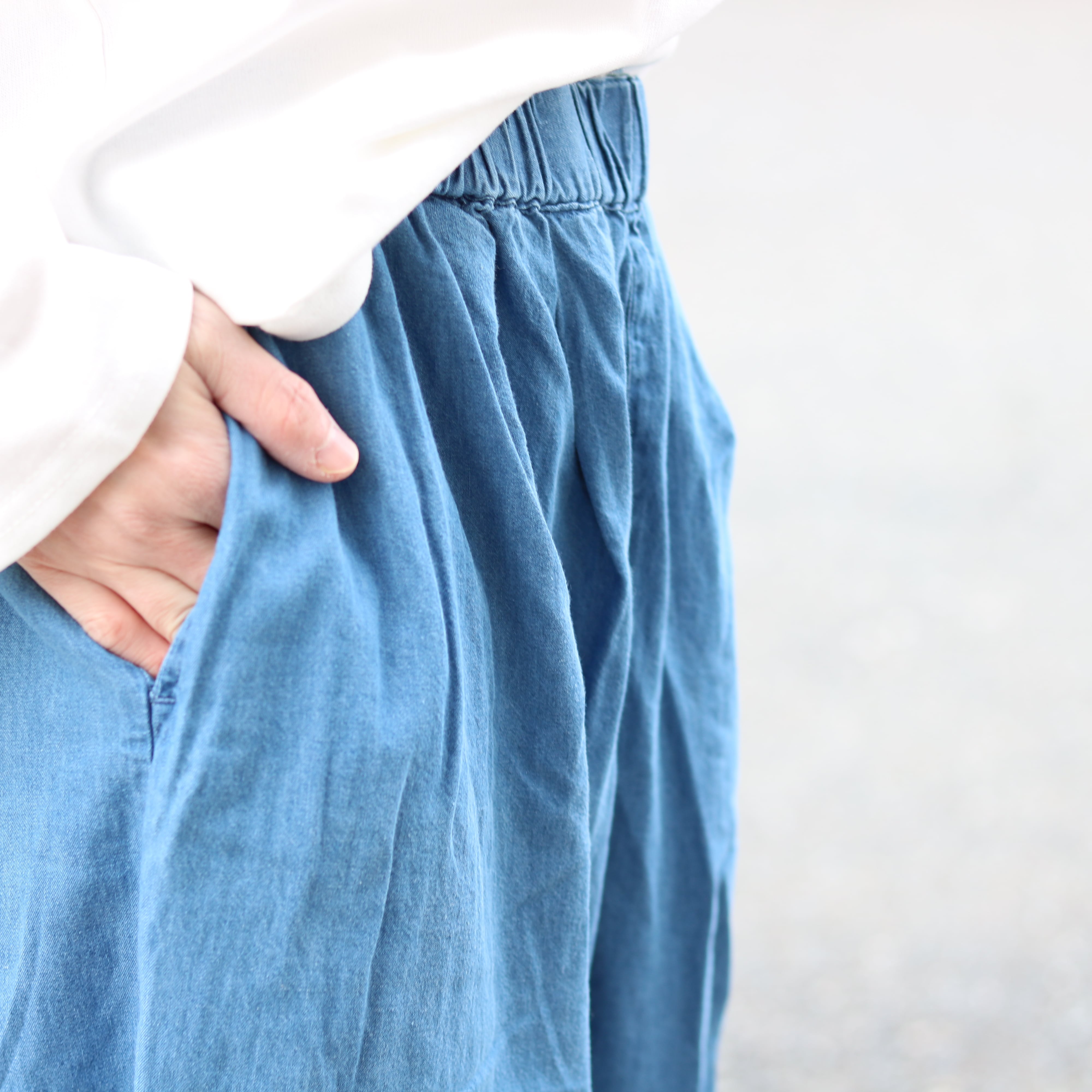 薄めのデニム生地がさらっと着られるワイドパンツ