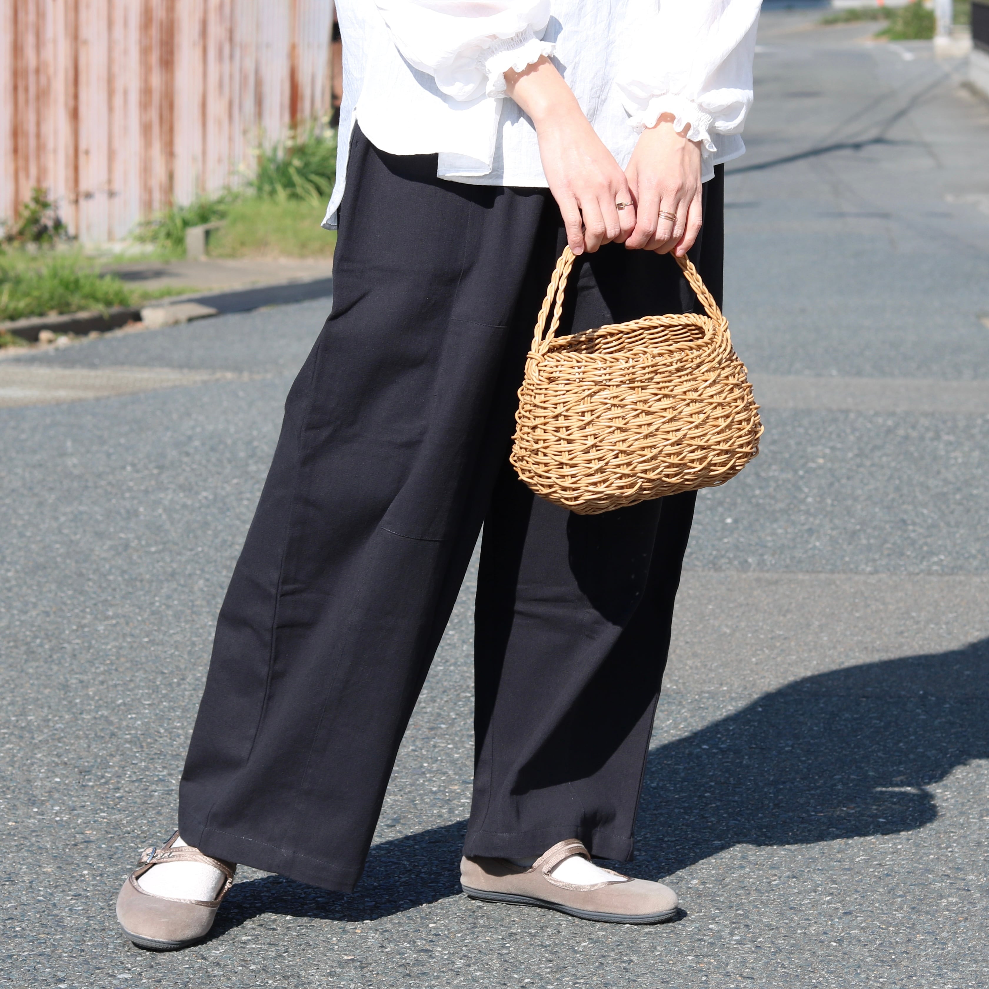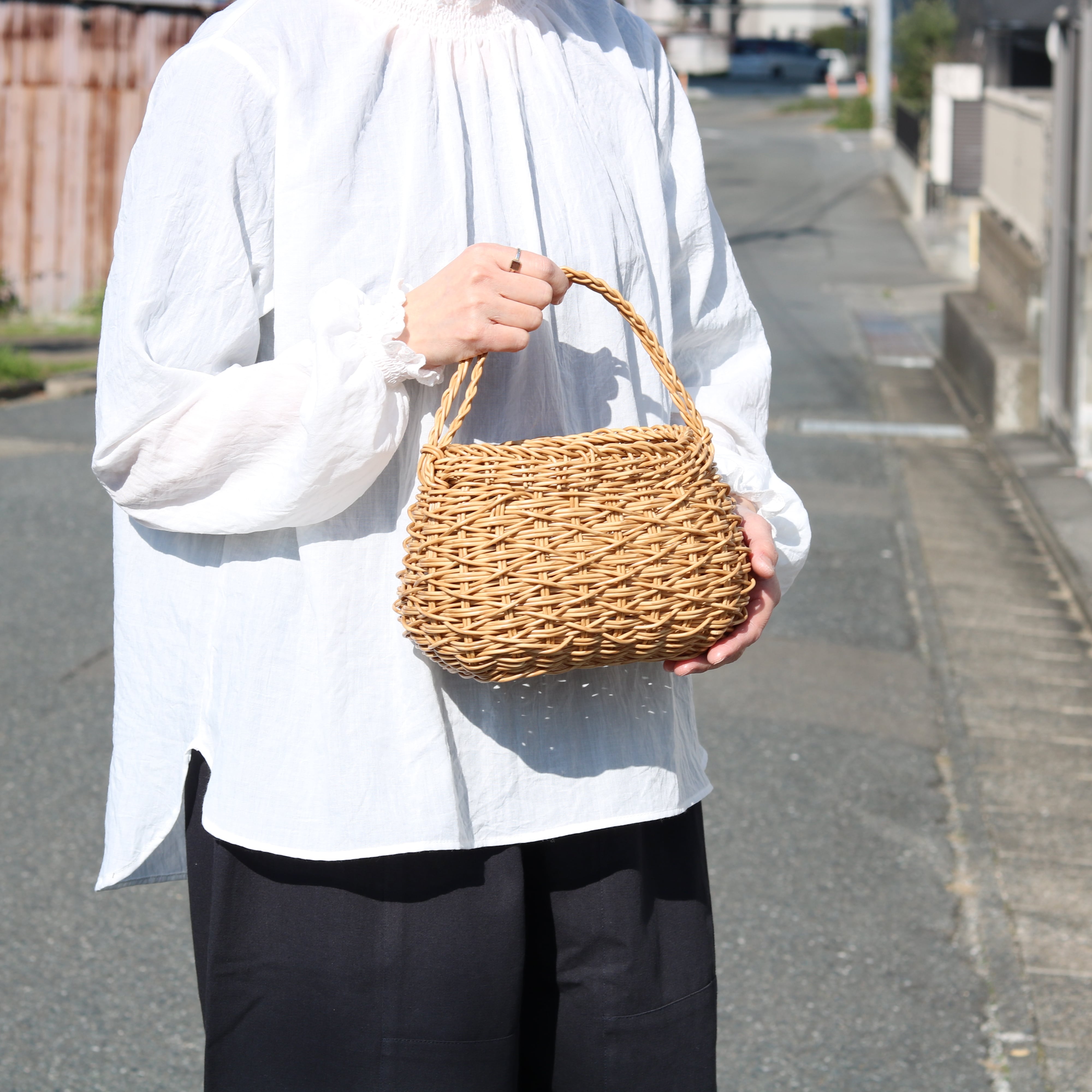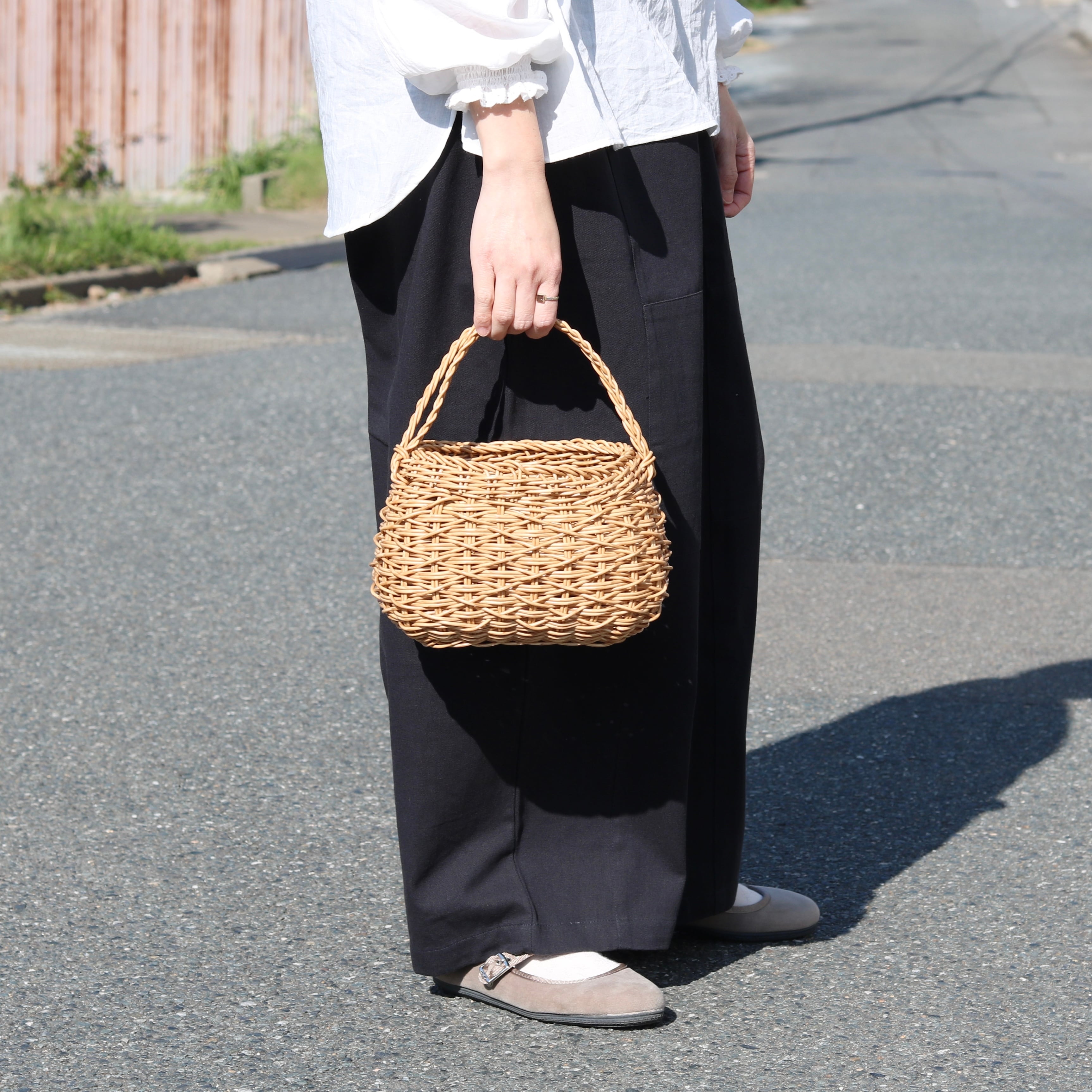 ハンドル部分もしっかりと編み込まれているため、丈夫な作りでとても軽く使いやすいバッグです。