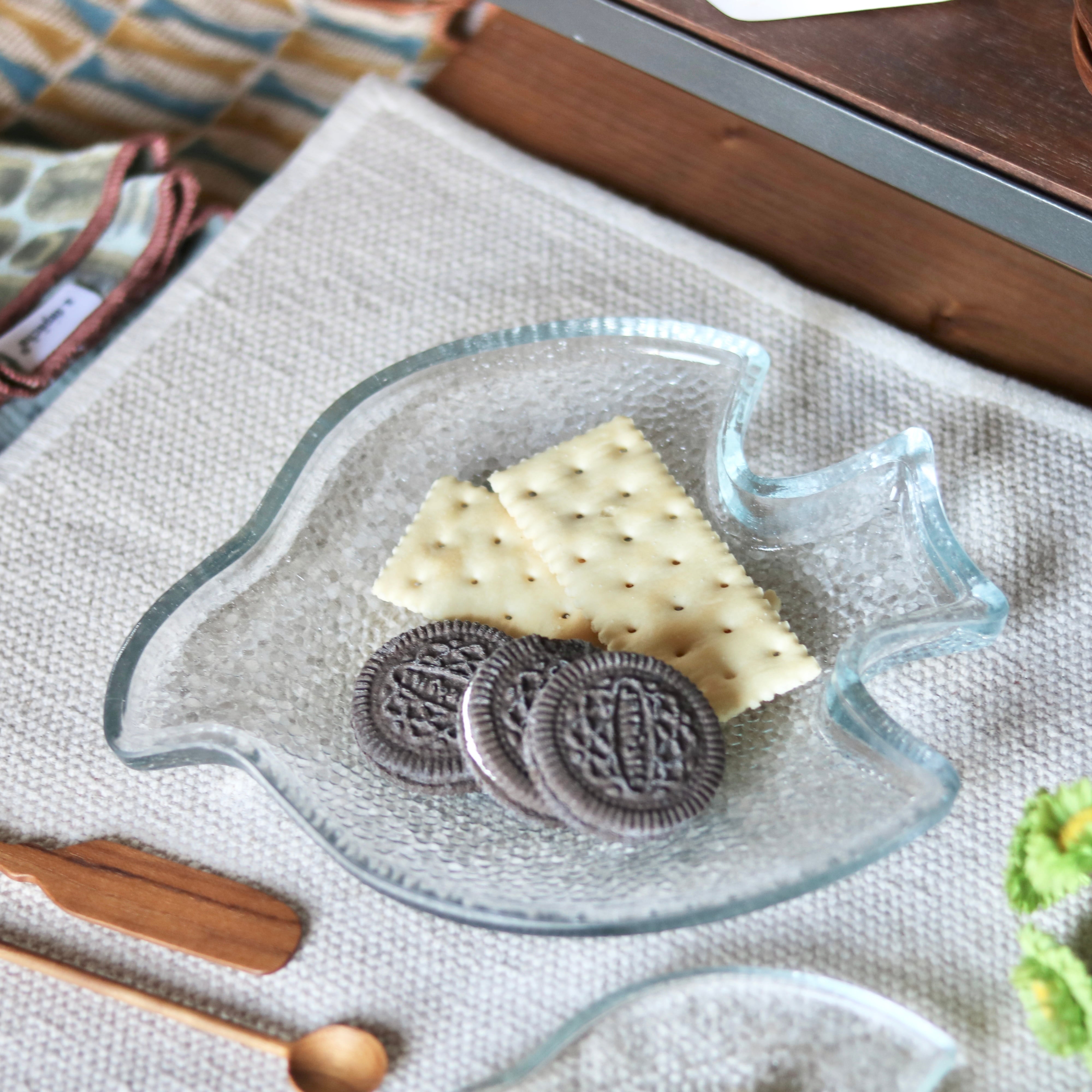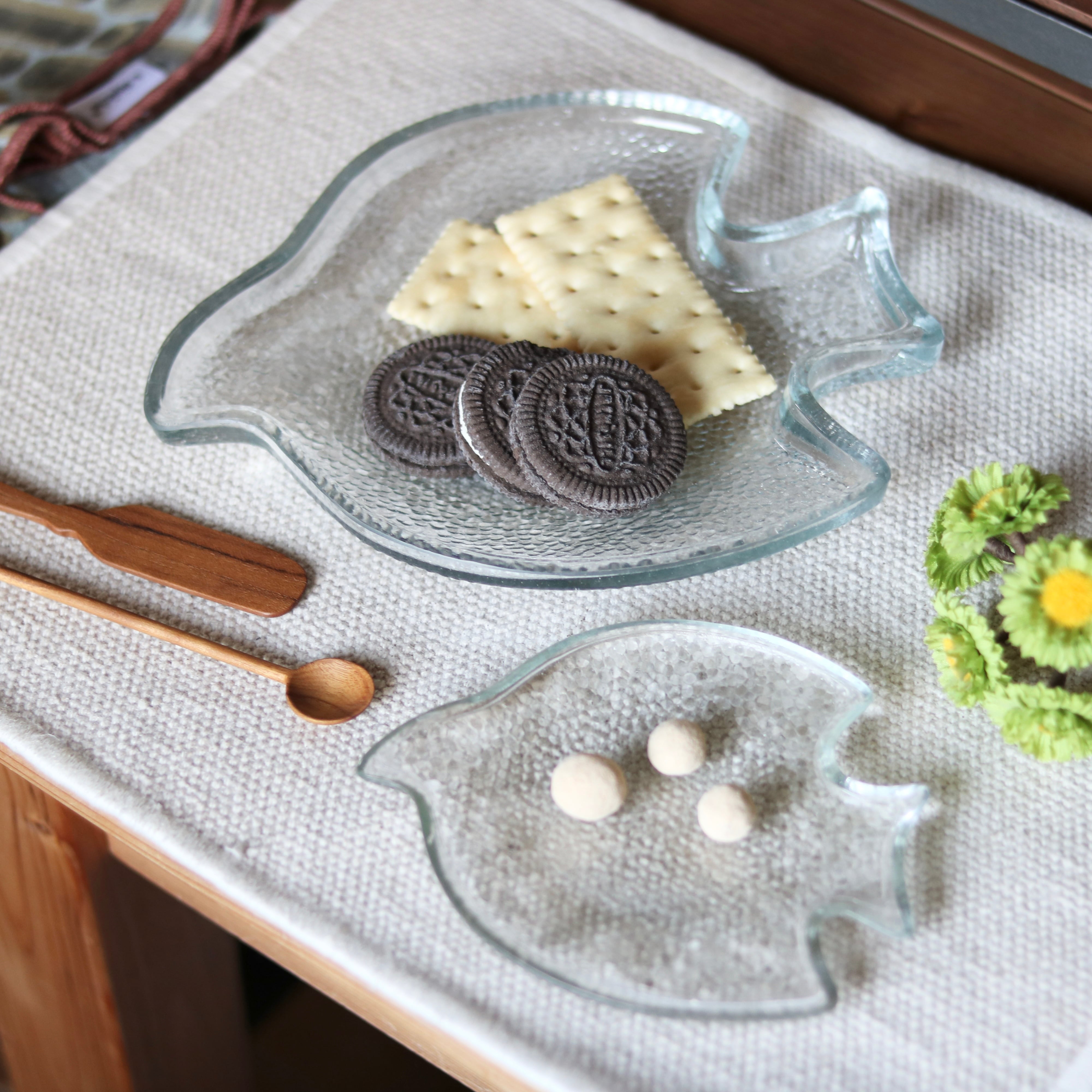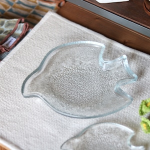 食器としてはもちろん、小物を置く小さなトレイとしても。玄関先やキャビネット、ベッドサイドなどに置くだけで、さりげなく癒しの空間が生まれます。(ガラス製品です。鍵や固いものを置く場合は、割れやキズ、破損の原因になりますのでご注意ください。)