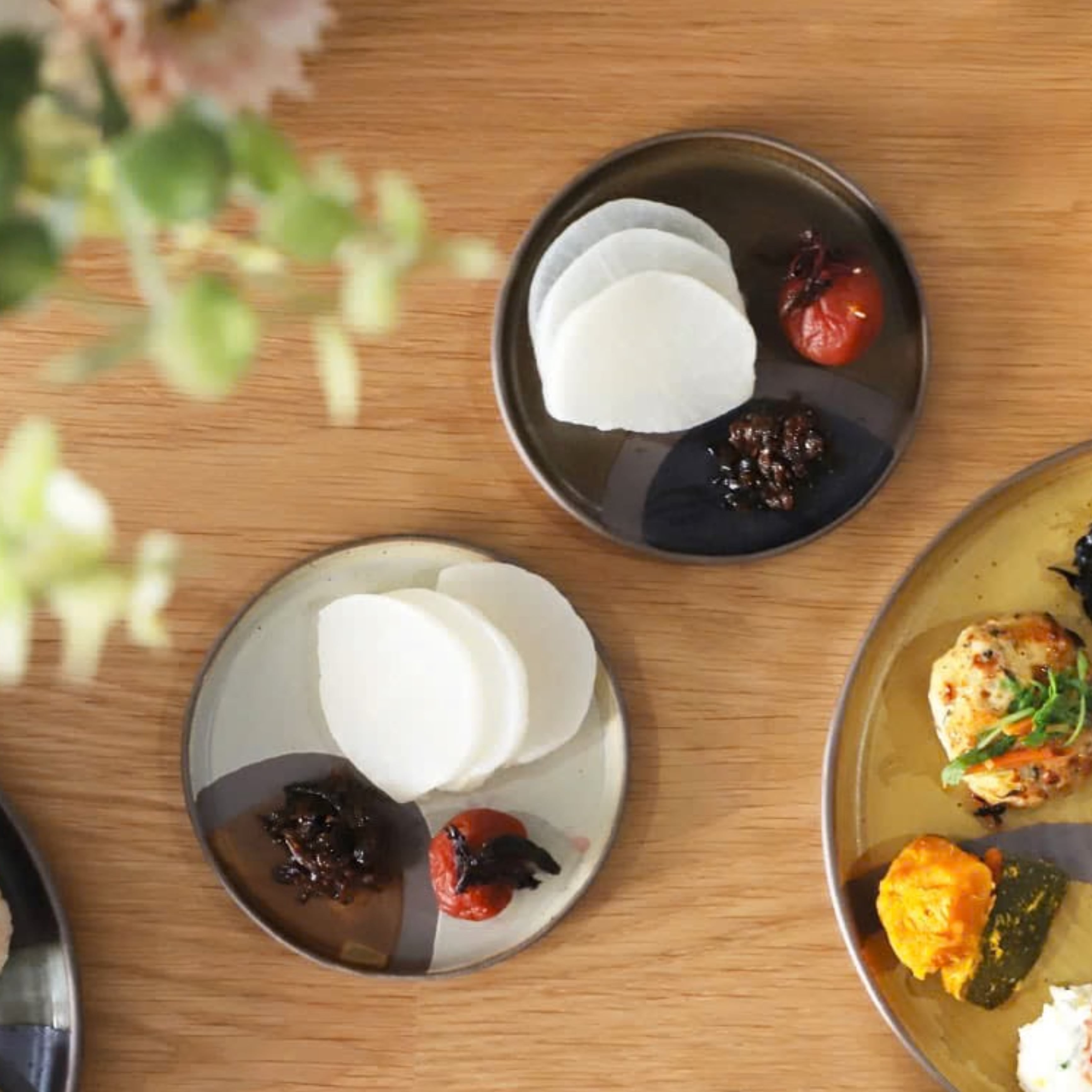 ヤングプレートはシンプルで平らな形状なのでお惣菜やおつまみの盛り付けに大活躍。
