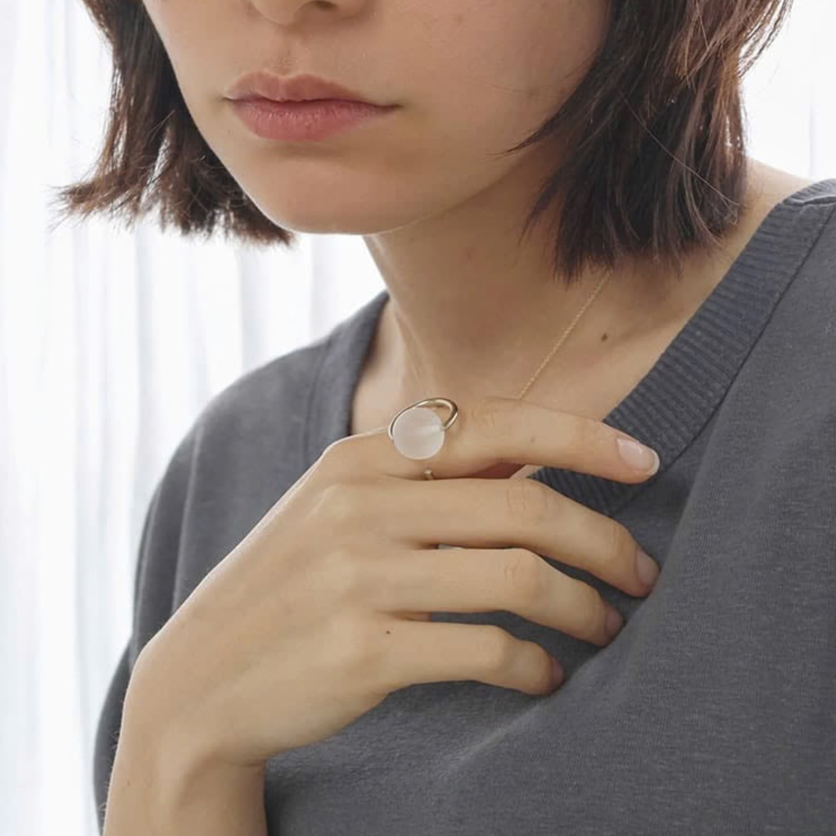 手元で揺らぐすりガラスの光が繊細で美しいリング。