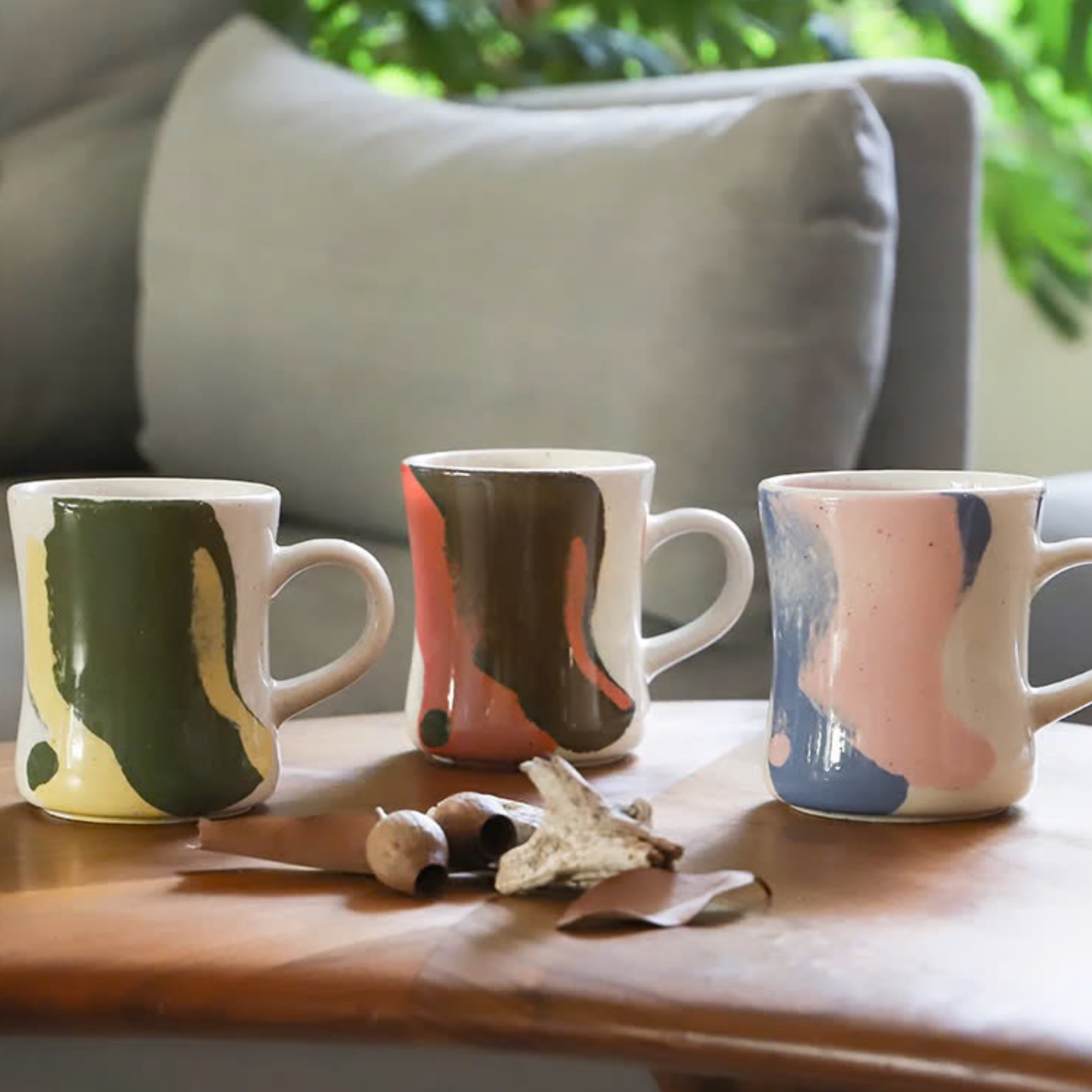 緩やかでやさしいシルエットと色が重なり合うアートマグのMサイズは1杯で容量たっぷり。