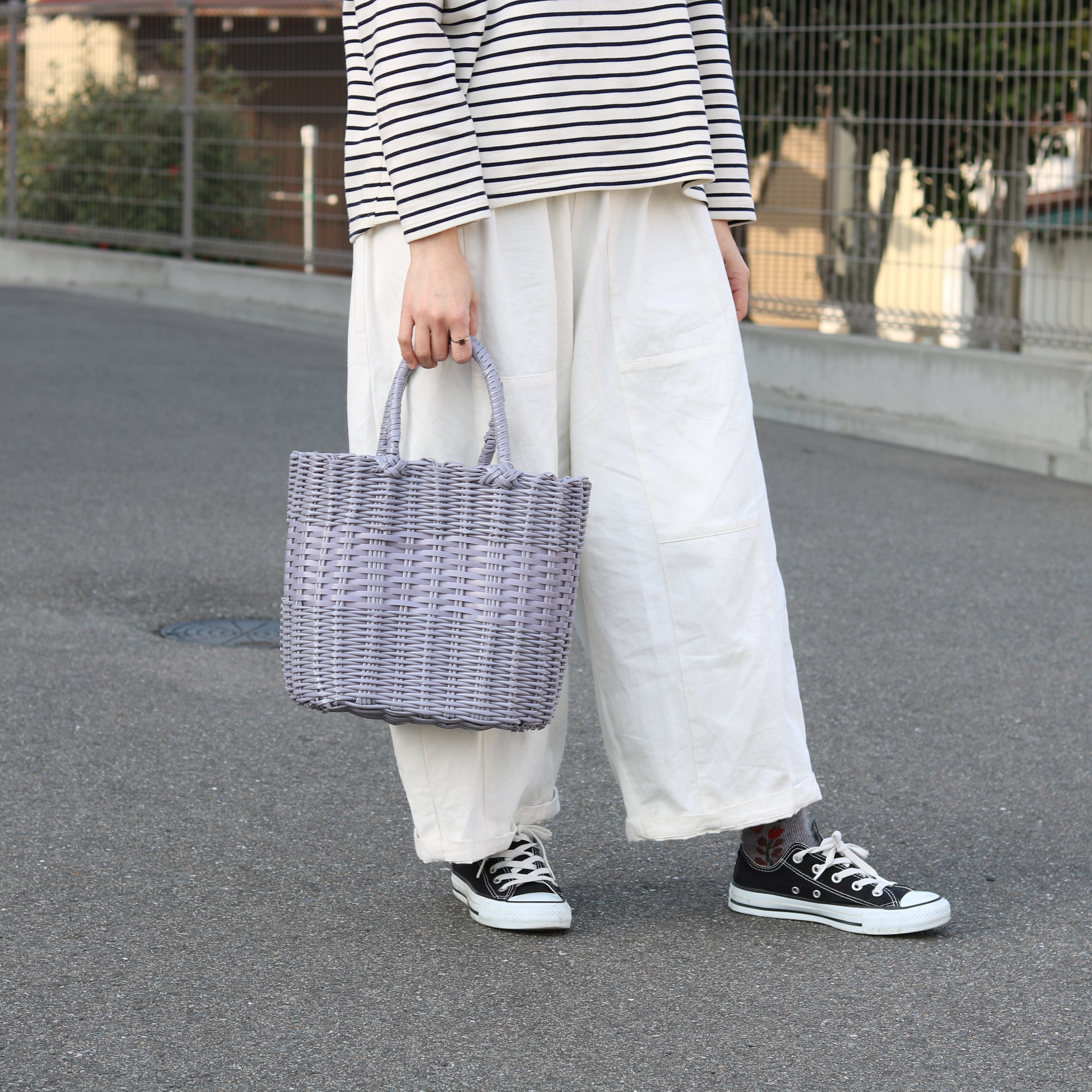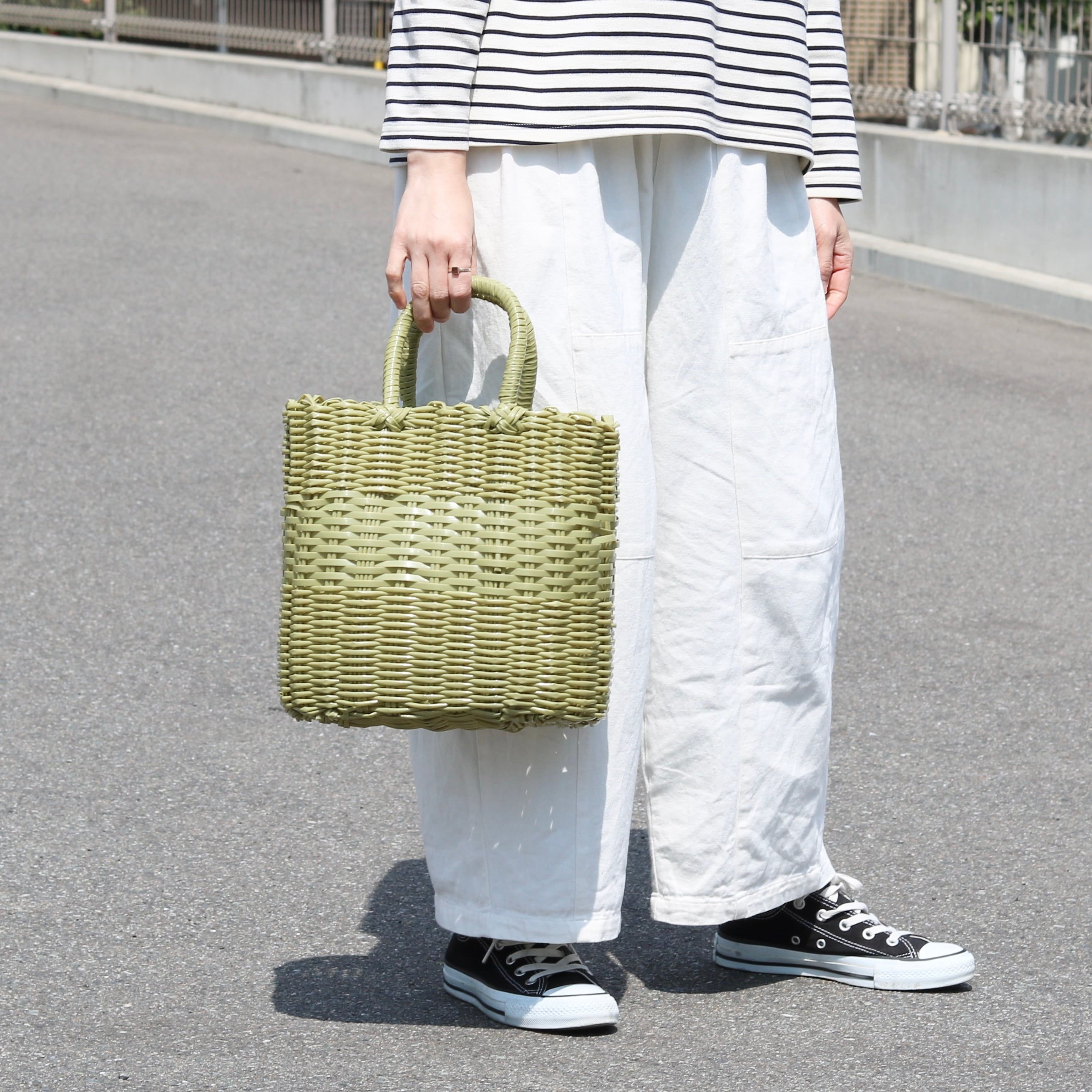 手編み製品の為、編み終わりに段差が生じるものもあります。洋服への引っ掛けにはご注意ください。また、テープの繋ぎ目からほつれる可能性があります。お取り扱いには十分ご注意ください。火のそばに置かないでください。鋭利なものを入れたり、強い衝撃や摩擦、過度の重量を加えると破損の原因となりますのでおやめください。