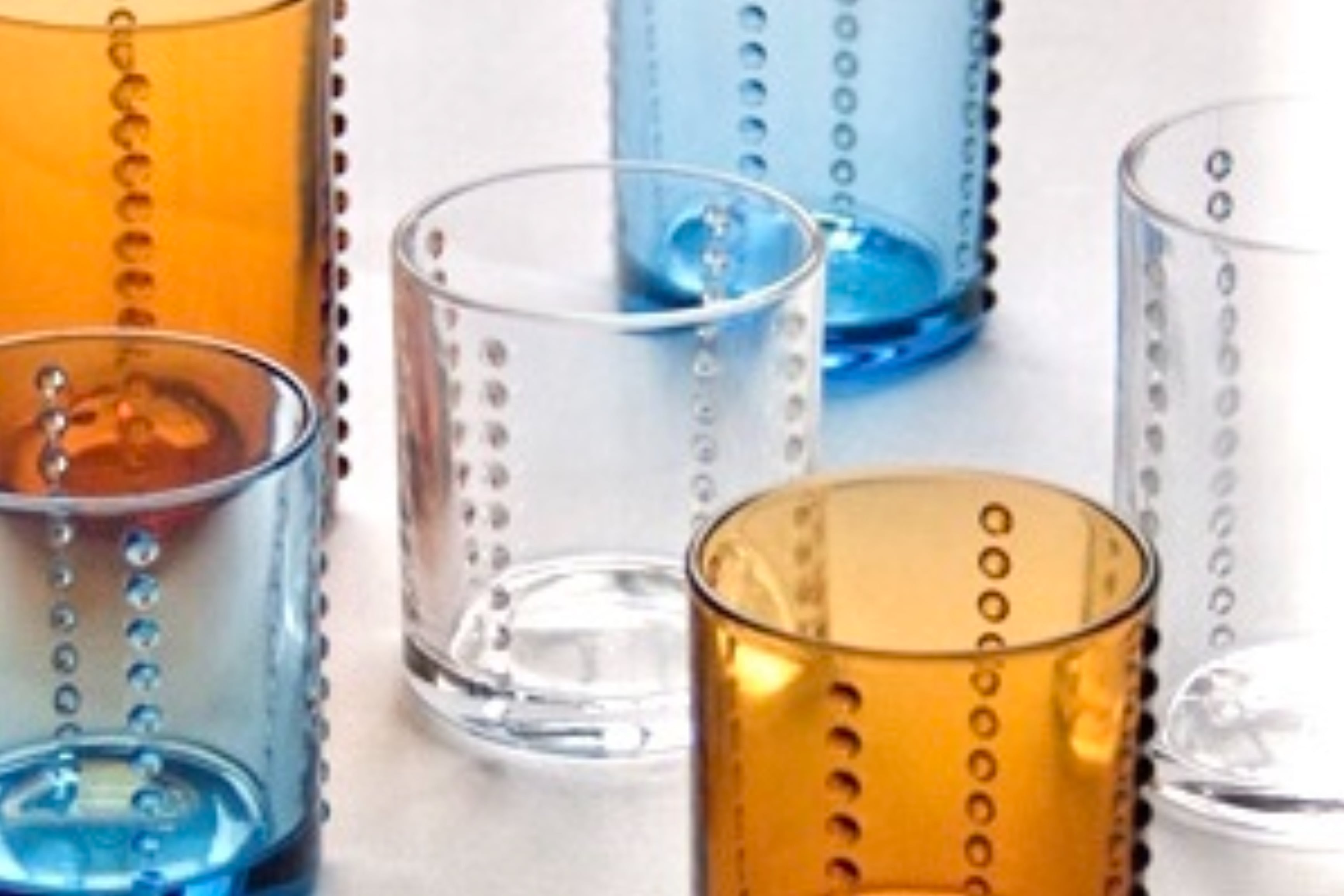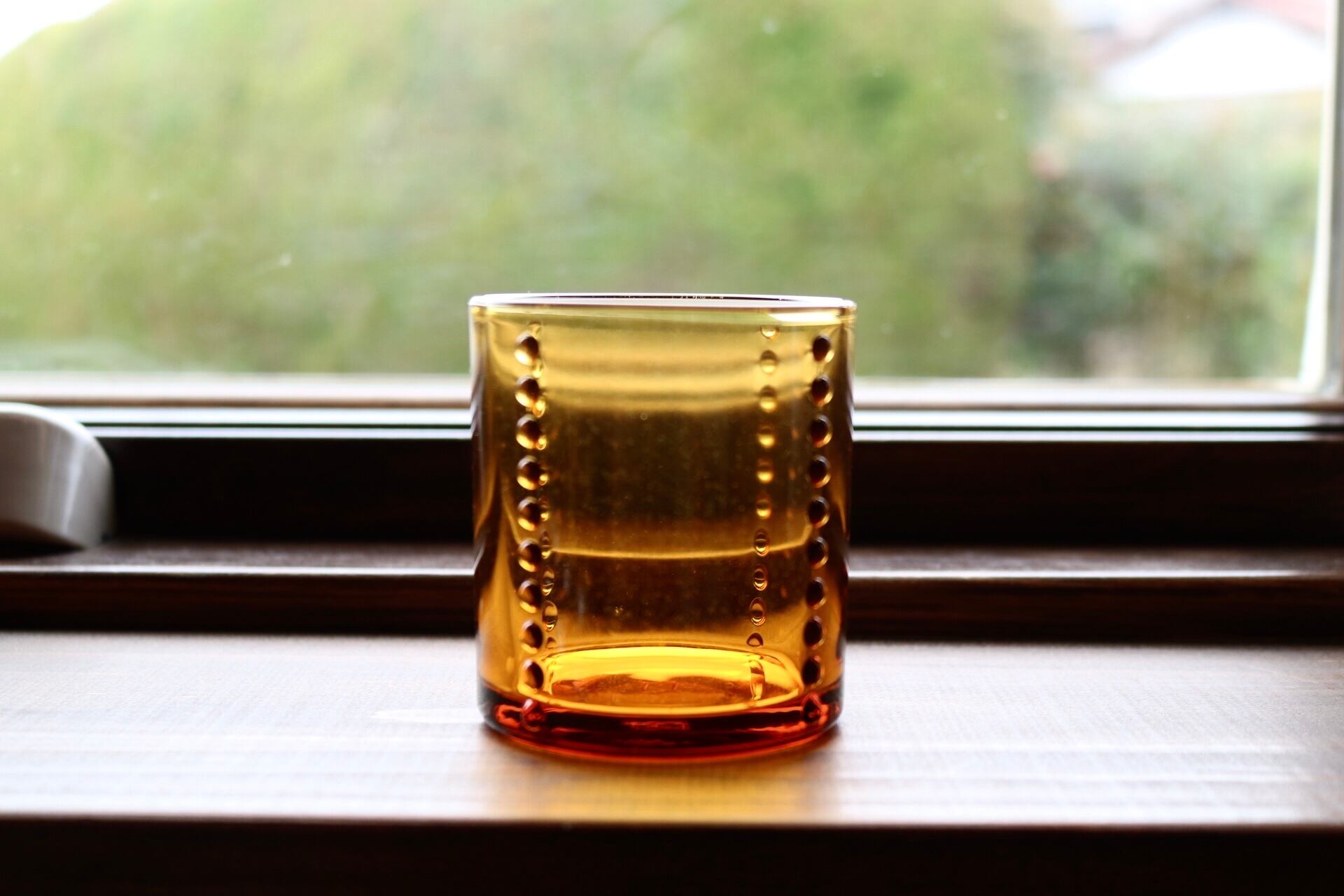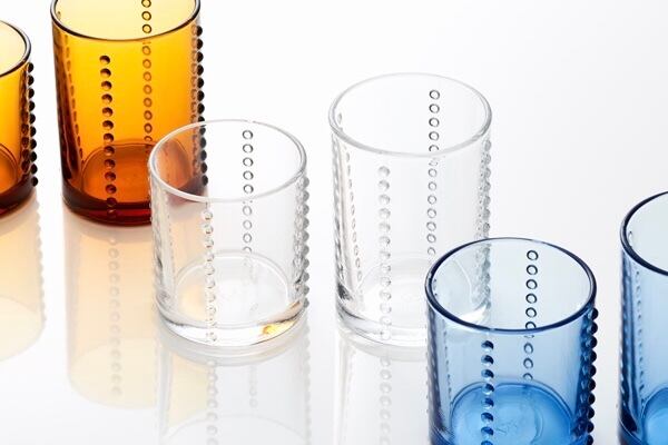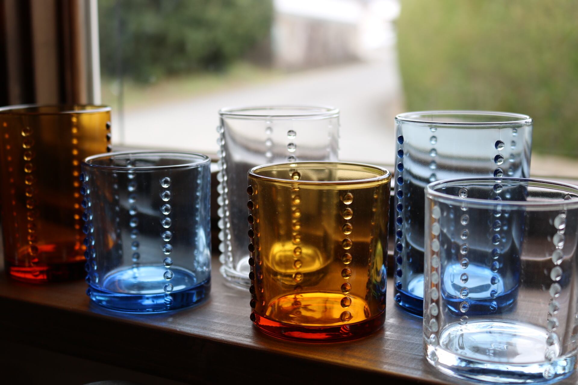 1966年に柳宗理がデザインしたグラスを廣田硝子が復刻。一列に並んだつぶは、滑り止めの役割と共にデザインの特徴にもなっています。底には、柳宗理デザインの証【Y】の刻印。