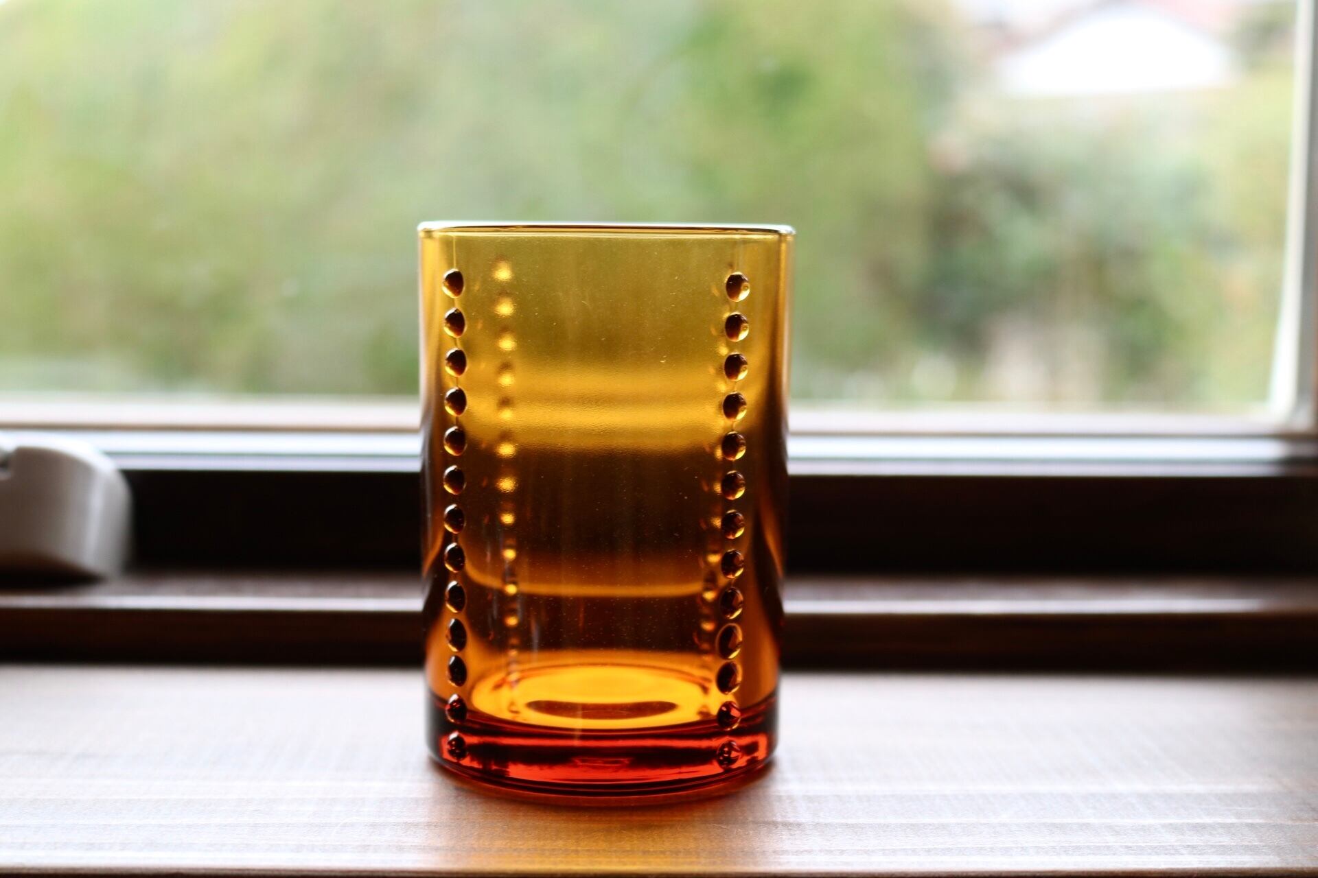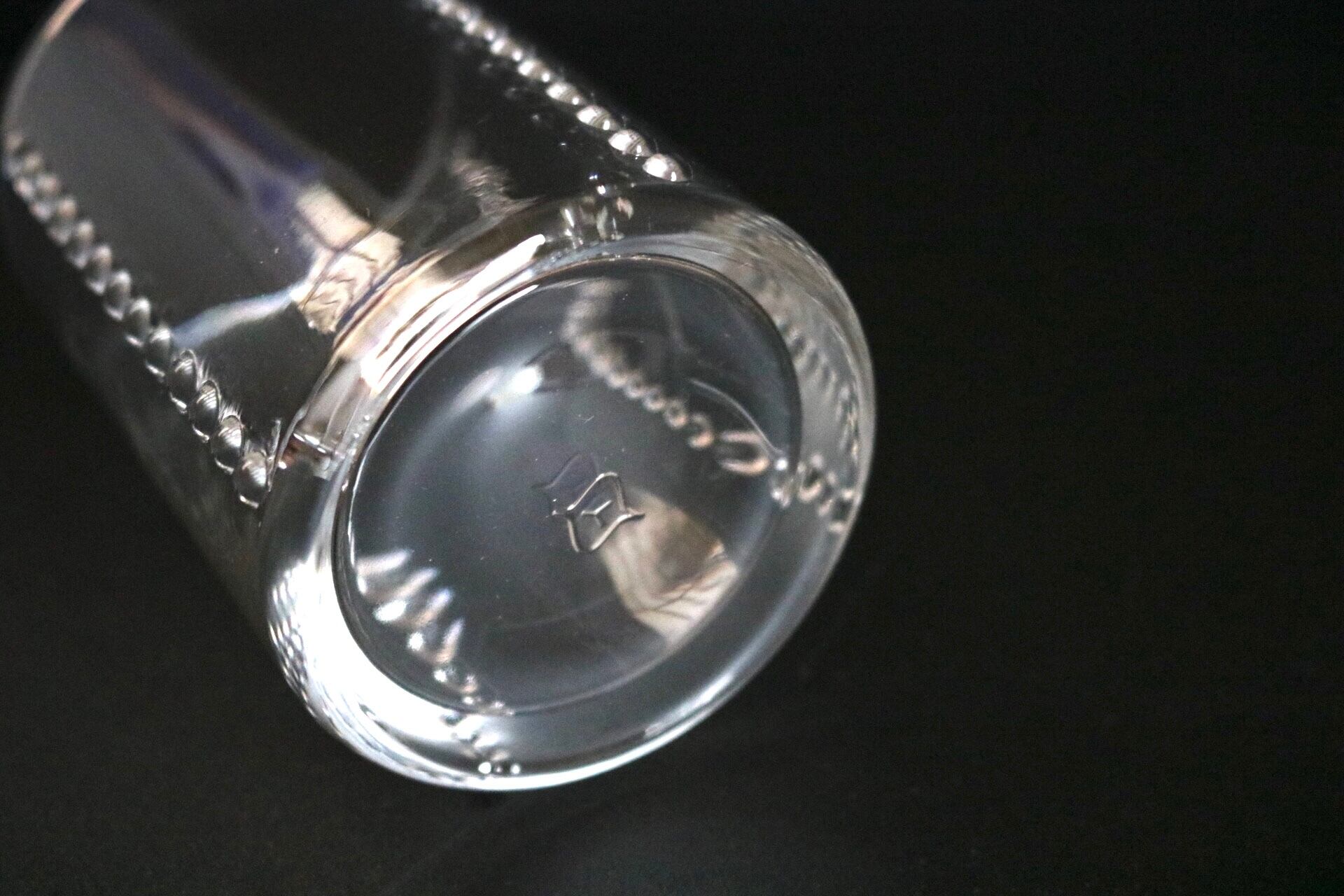 1966年に柳宗理がデザインしたグラスを廣田硝子が復刻。一列に並んだつぶは、滑り止めの役割と共にデザインの特徴にもなっています。底には、柳宗理デザインの証【Y】の刻印。